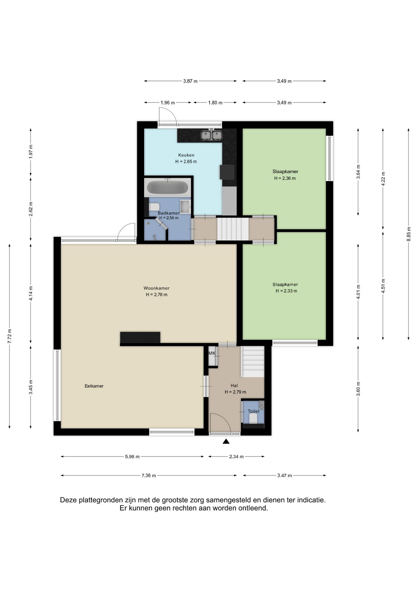 Alle door ons kantoor verstrekte informatie omtrent onroerende zaken, moet beschouwd worden als een uitnodiging om in onderhandeling te treden, en is geheel vrijblijvend! Alle vermelde maten en afmetingen zijn slechts bij benadering. Aan deze beperkte info kunnen geen rechten worden ontleend. Indien in enige documentatie of op enige website informatie staat die niet overeen komt met de werkelijkheid, dan geldt de feitelijke situatie waarin de woning zich bevindt, zoals koper deze tijdens de bezichtiging heeft kunnen waarnemen, en wordt de woning in deze feitelijke situatie/staat verkocht. Een (eventueel) bijgevoegde plattegrond dient uitsluitend als globale indicatie/visualisatie. Hieraan kunnen uitdrukkelijk geen rechten worden ontleend.
