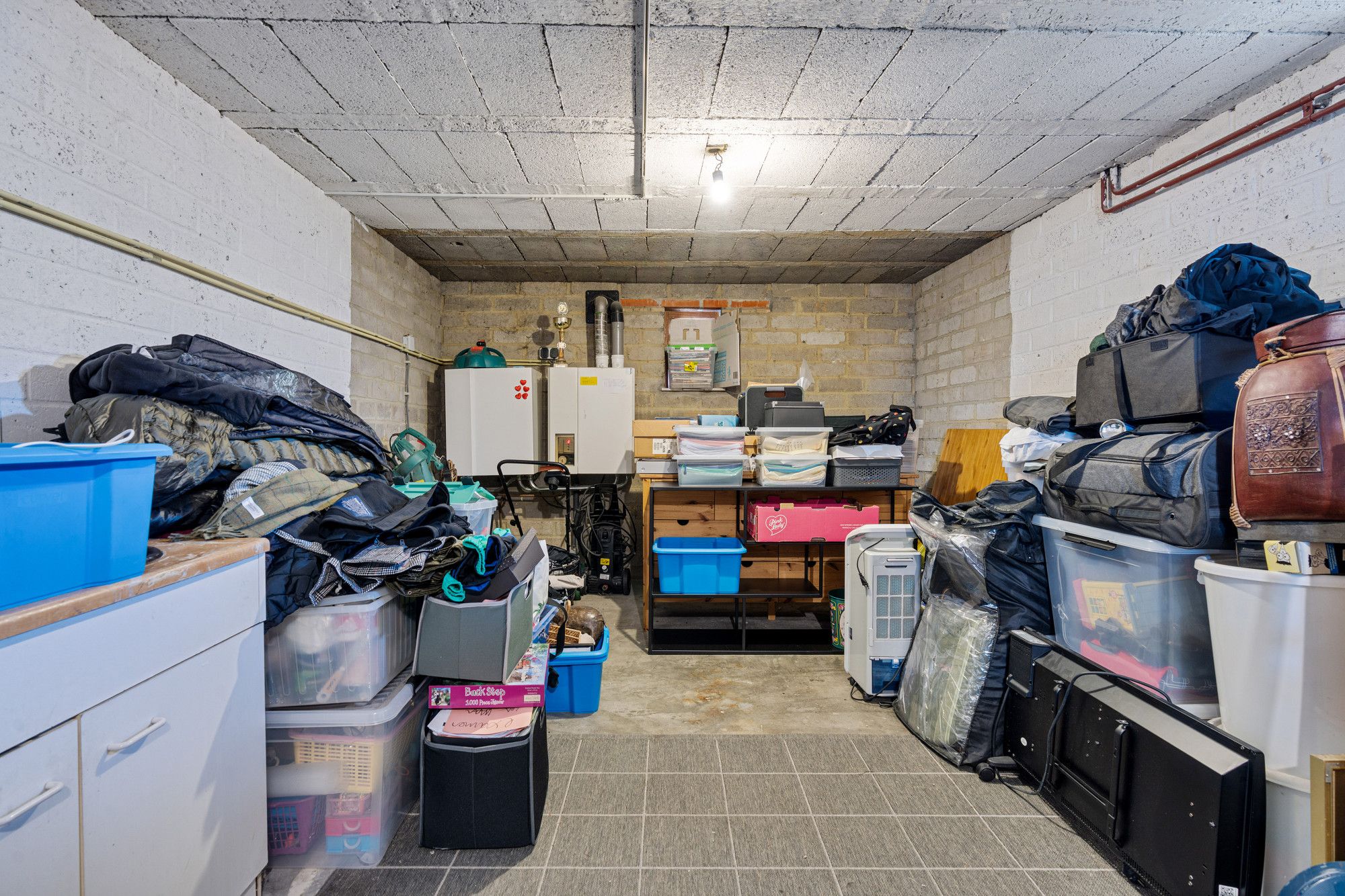 De woning beschikt over een praktische kelderruimte met meerdere functies. Hier bevinden zich de aansluitpunten voor wasmachine en droger, een diepvriesaansluiting en de opstelling van de cv-ketel. De inpandige garage is bereikbaar via een kantelpoort en biedt plaats voor één auto. Perfect voor wie houdt van extra opslagruimte of een hobbyruimte aan huis.