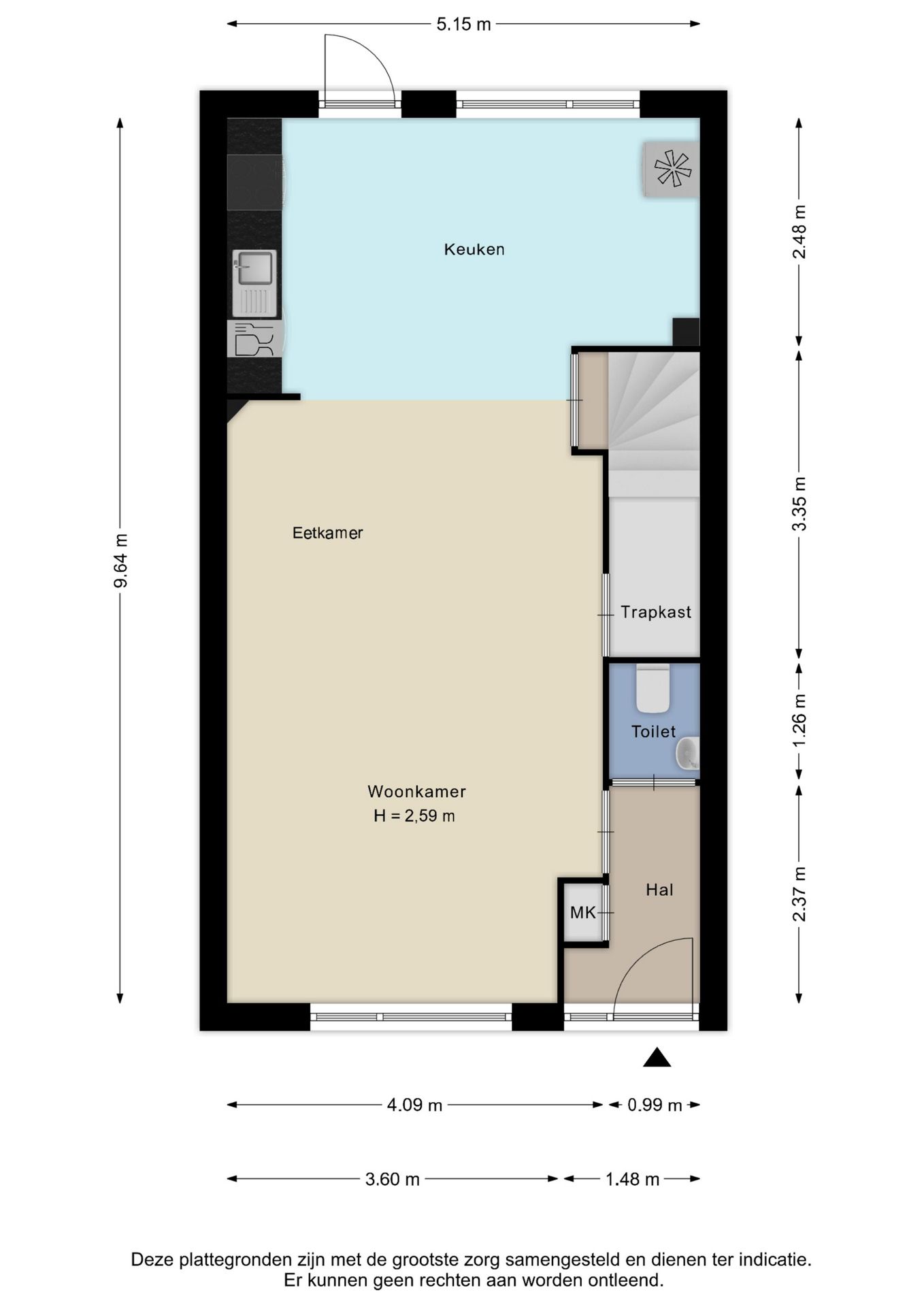 Alle door ons kantoor verstrekte informatie omtrent onroerende zaken, moet beschouwd worden als een uitnodiging om in onderhandeling te treden, en is geheel vrijblijvend! Alle vermelde maten en afmetingen zijn slechts bij benadering. Aan deze beperkte info kunnen geen rechten worden ontleend. Indien in enige documentatie of op enige website informatie staat die niet overeen komt met de werkelijkheid, dan geldt de feitelijke situatie waarin de woning zich bevindt, zoals koper deze tijdens de bezichtiging heeft kunnen waarnemen, en wordt de woning in deze feitelijke situatie/staat verkocht. Een (eventueel) bijgevoegde plattegrond dient uitsluitend als globale indicatie/visualisatie. Hieraan kunnen uitdrukkelijk geen rechten worden ontleend.