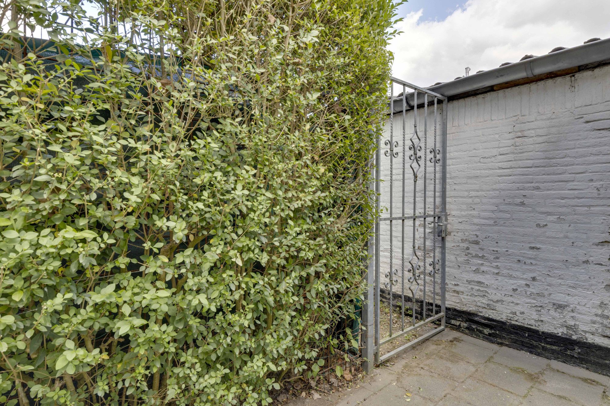 Serre met toegang tot omsloten tuin met achteringang en toegang tot gehuurde garage.