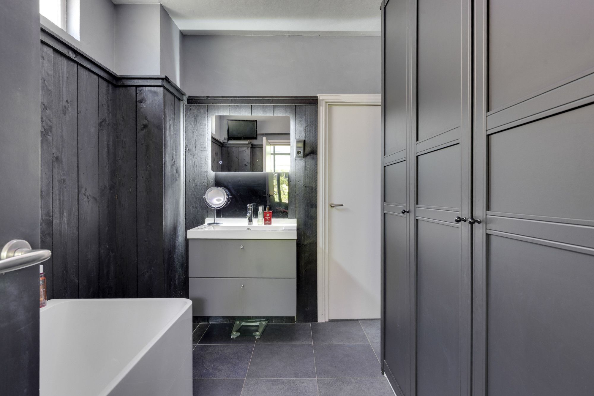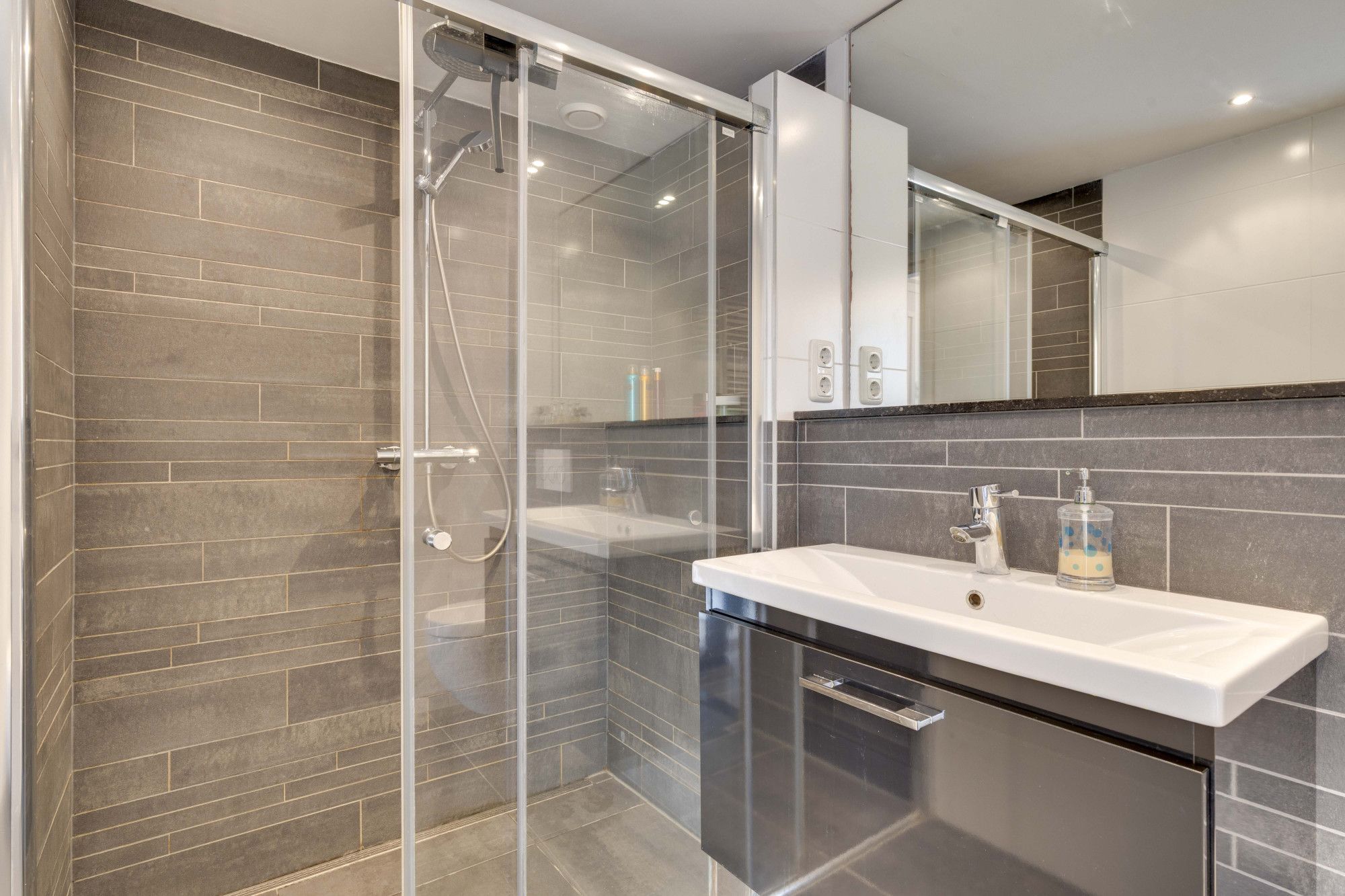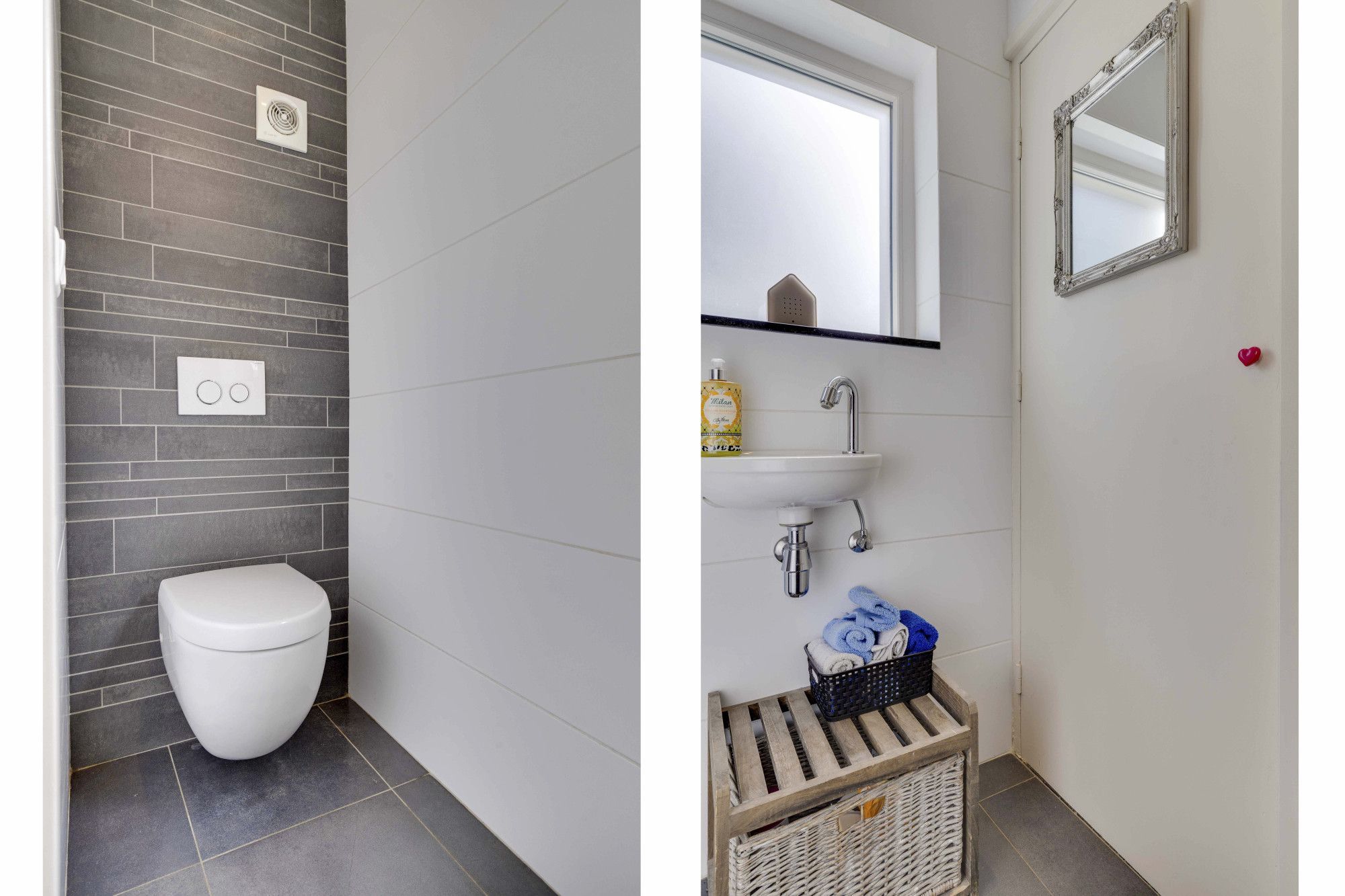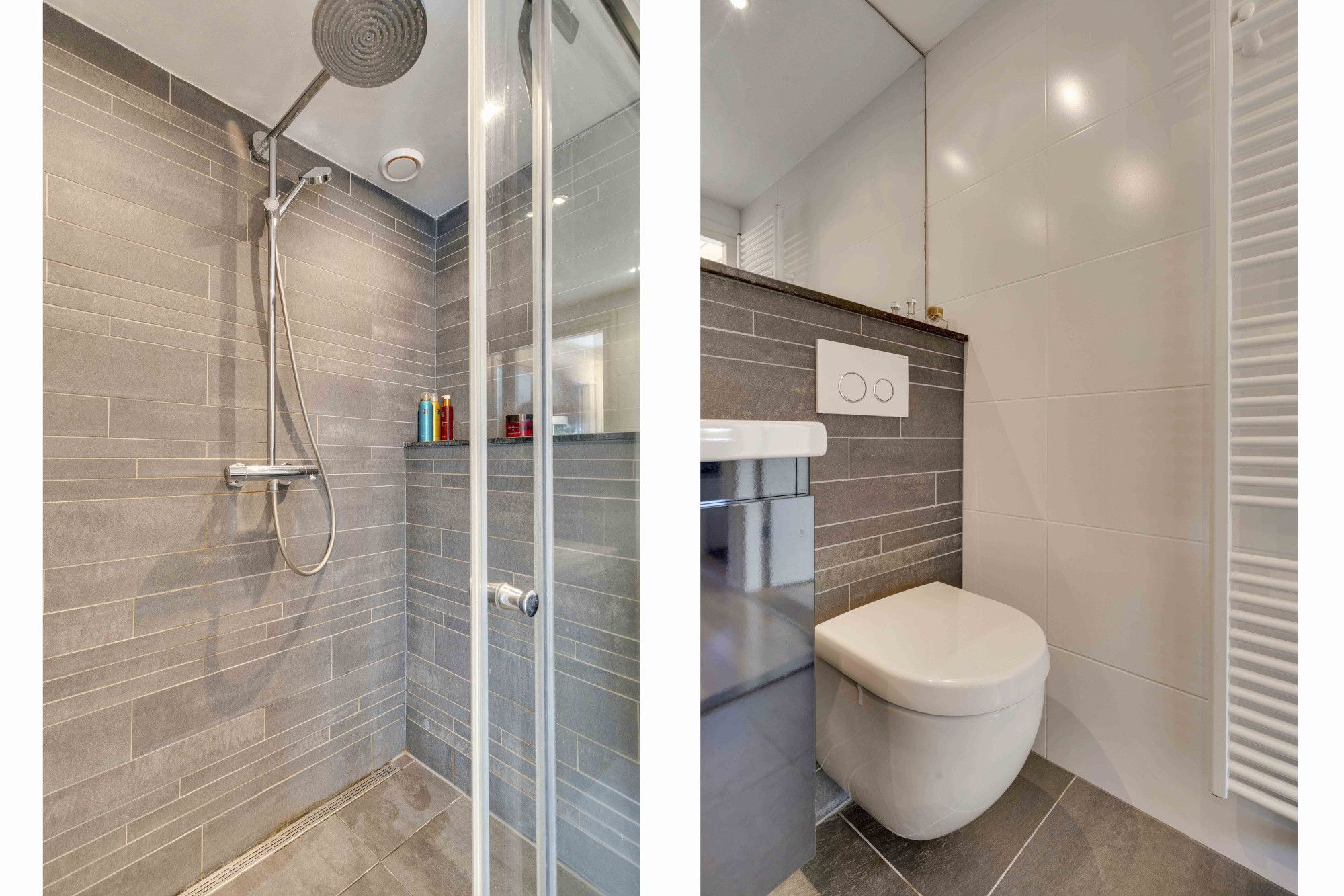 Tweede badkamer met inloopdouche, tweede toilet, vaste wastafel met meubel en designradiator.