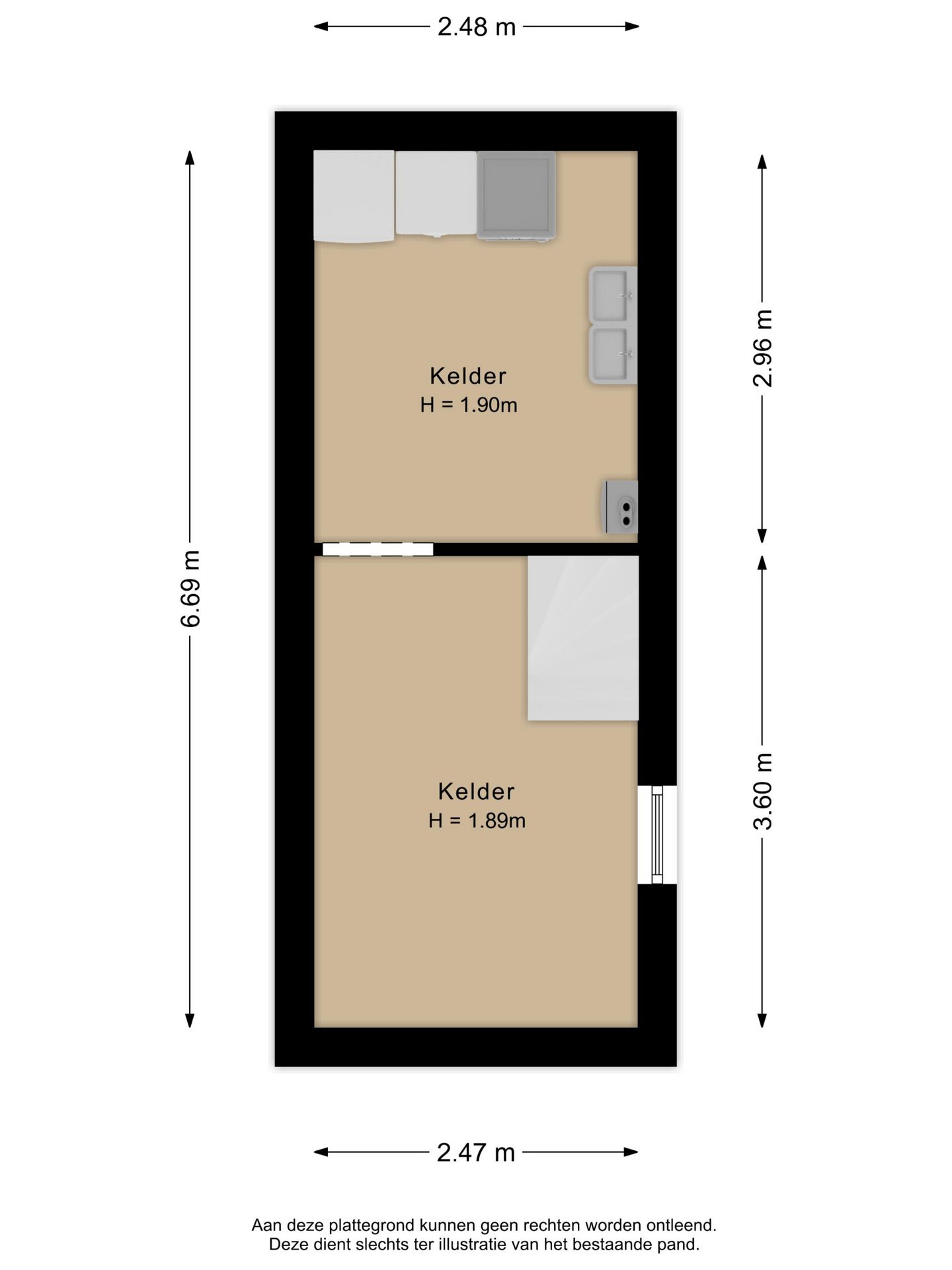 Twee betegelde kelderruimtes, ideaal als voorraad- of hobbyruimte. Tevens bevinden zich hier de witgoedaansluitingen en de recent geplaatste CV-installatie (Nefit Comfortline HR, bouwjaar 2025, eigendom).
