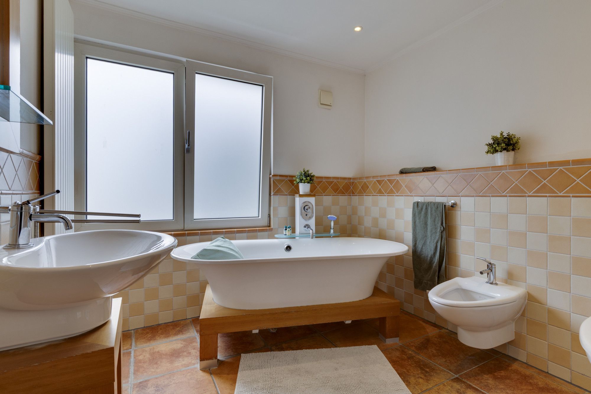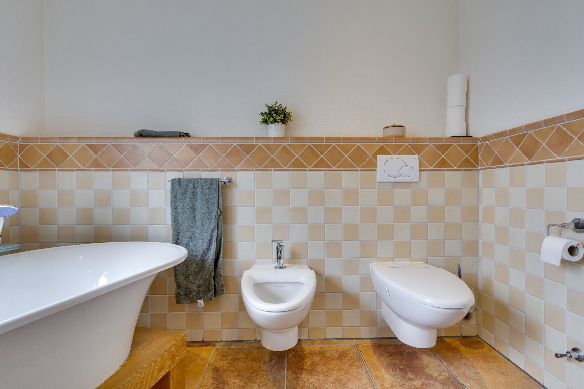 Badkamer 2: vloerverwarming, vrijstaand ligbad, toilet en bidet.