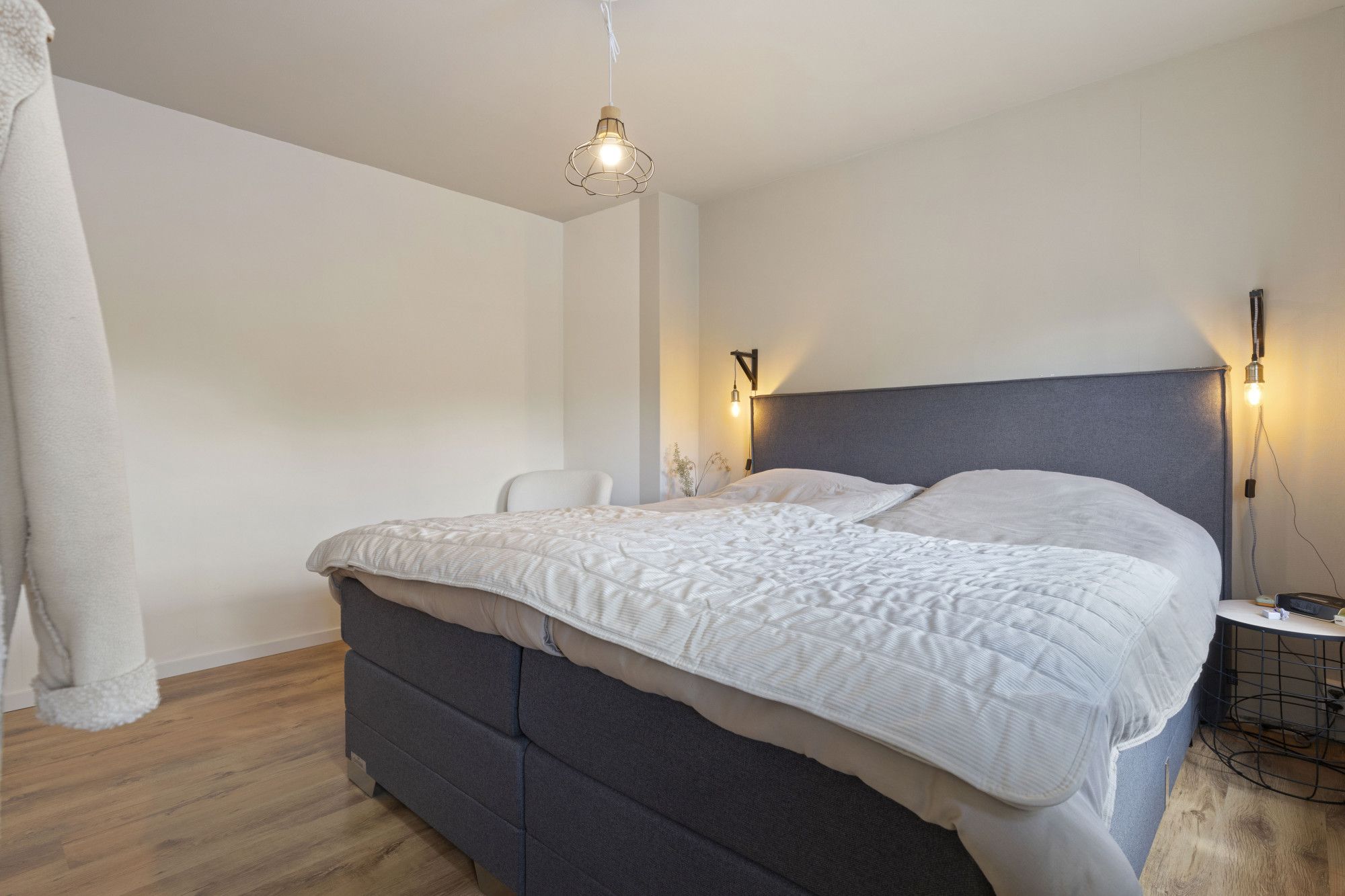 De moderne badkamer beschikt over een inloopdouche, wastafelmeubel en tweede toilet.