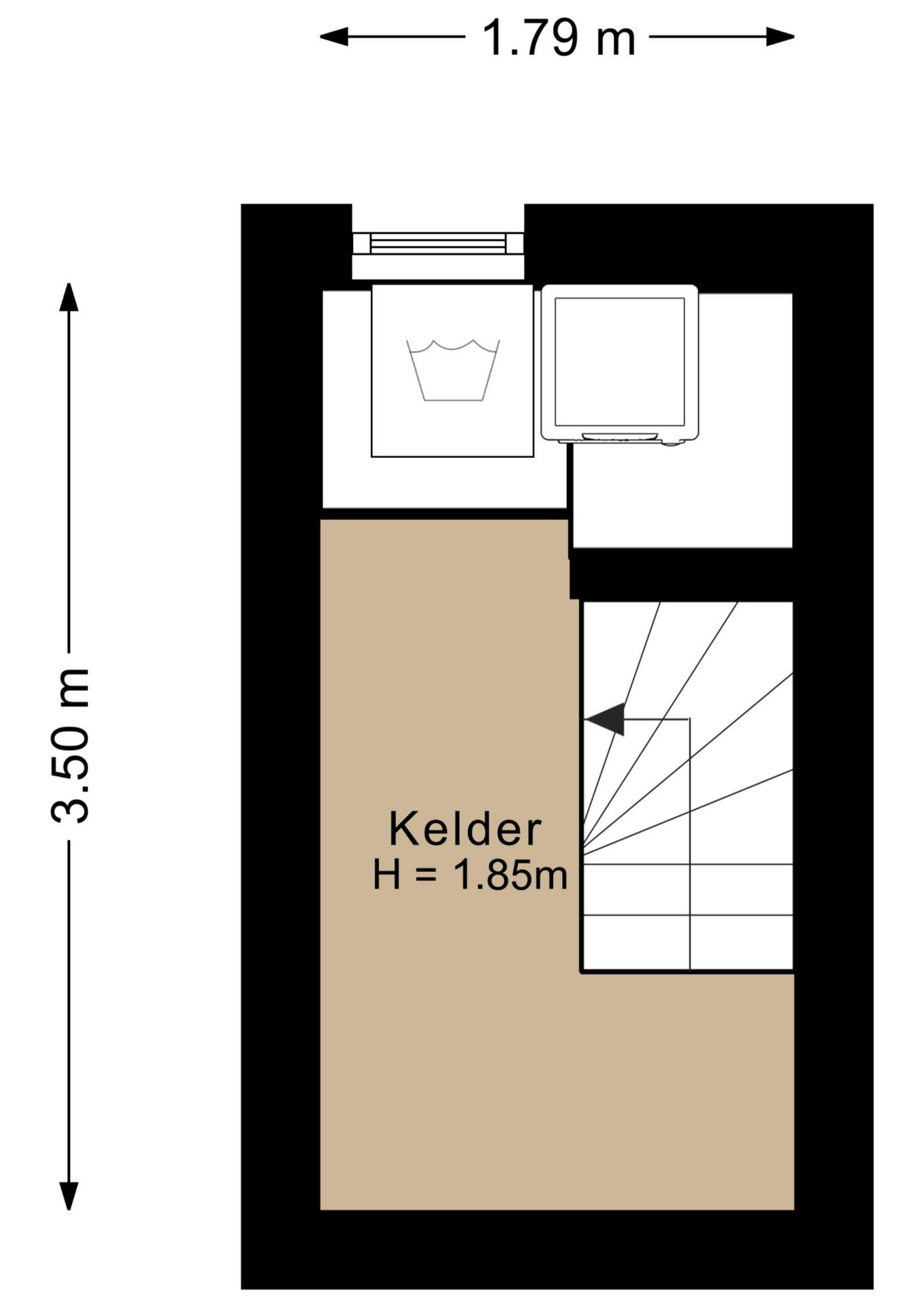 Praktische provisiekelder met volop opslagmogelijkheden en aansluiting voor de wasmachine.