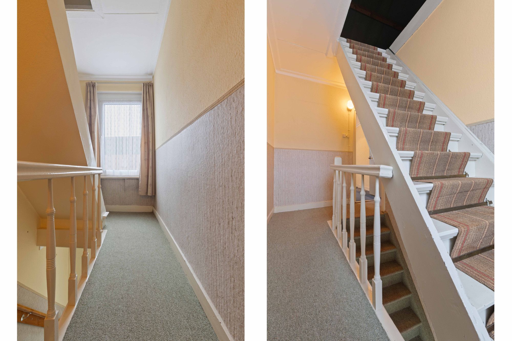 Entree/hal met toegang tot de opgang verdieping, meterkast, woonkamer en keuken.