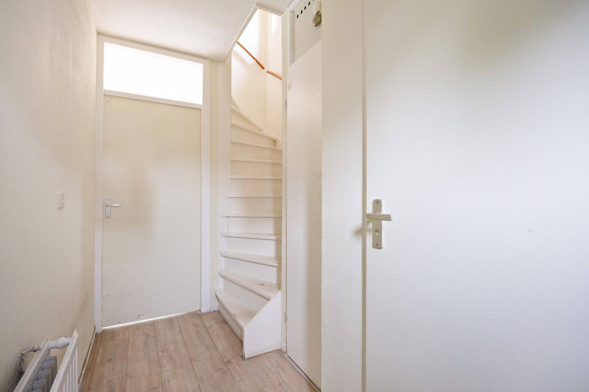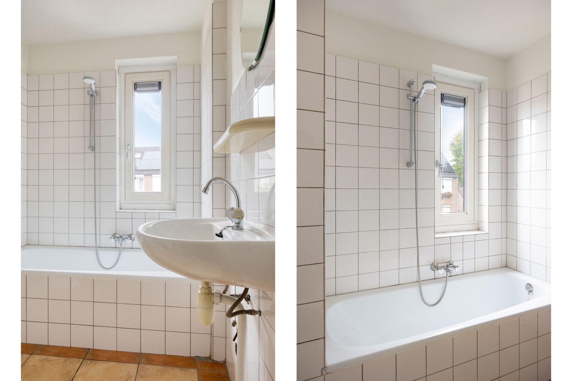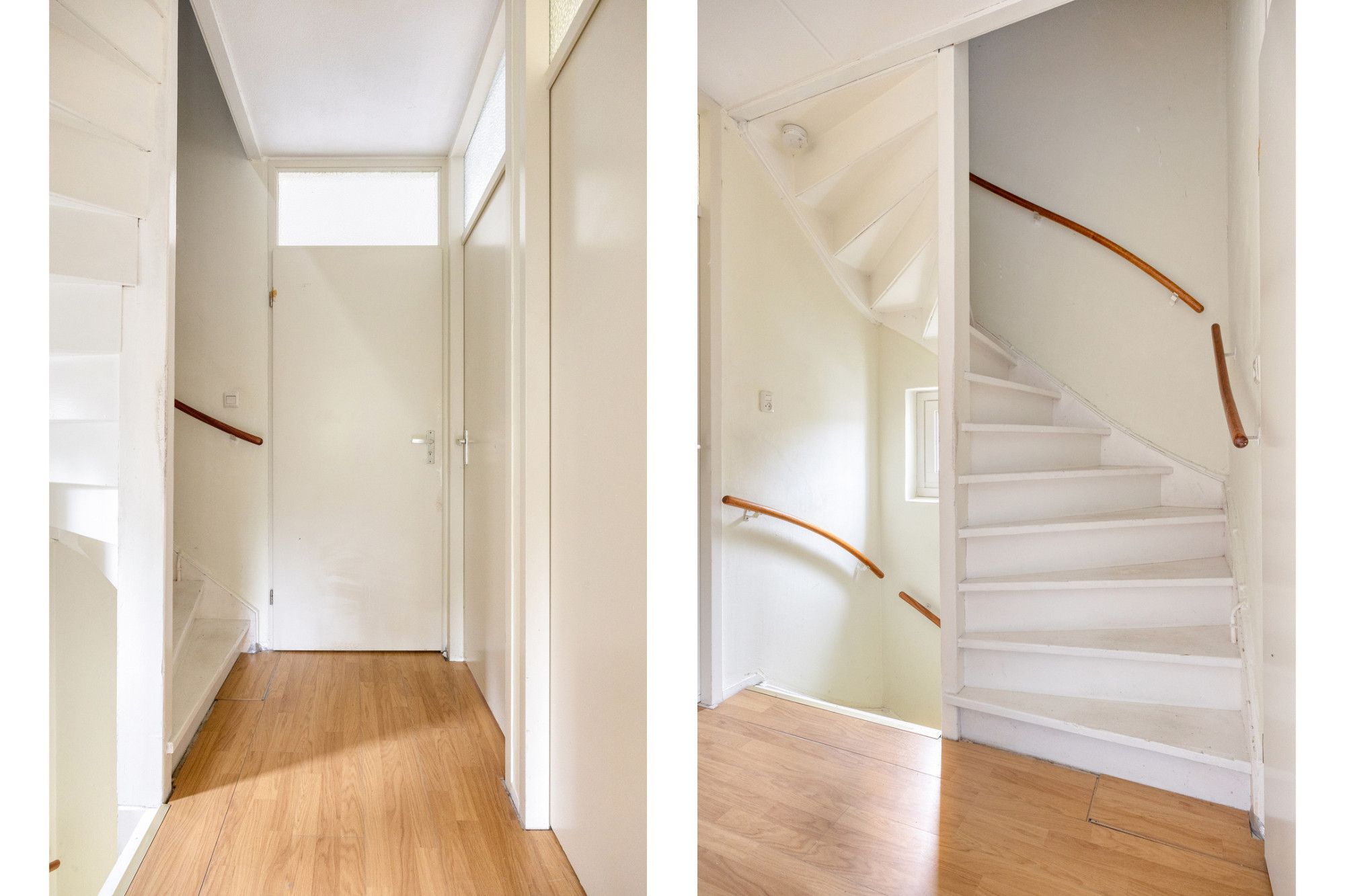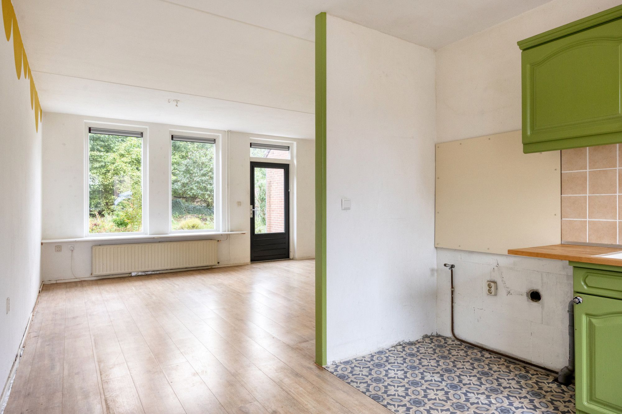 De woning is voorzien van energielabel B en biedt een goede basis om geheel naar eigen wens te moderniseren. De lichte woonkamer heeft grote raampartijen en een directe verbinding met de tuin. De keuken bevindt zich aan de voorzijde van de woning en is uitgevoerd met groene kastfronten, een houten werkblad en lichte wandtegels. De badkamer beschikt over een ligbad met douche, wastafel en raam voor natuurlijke ventilatie.