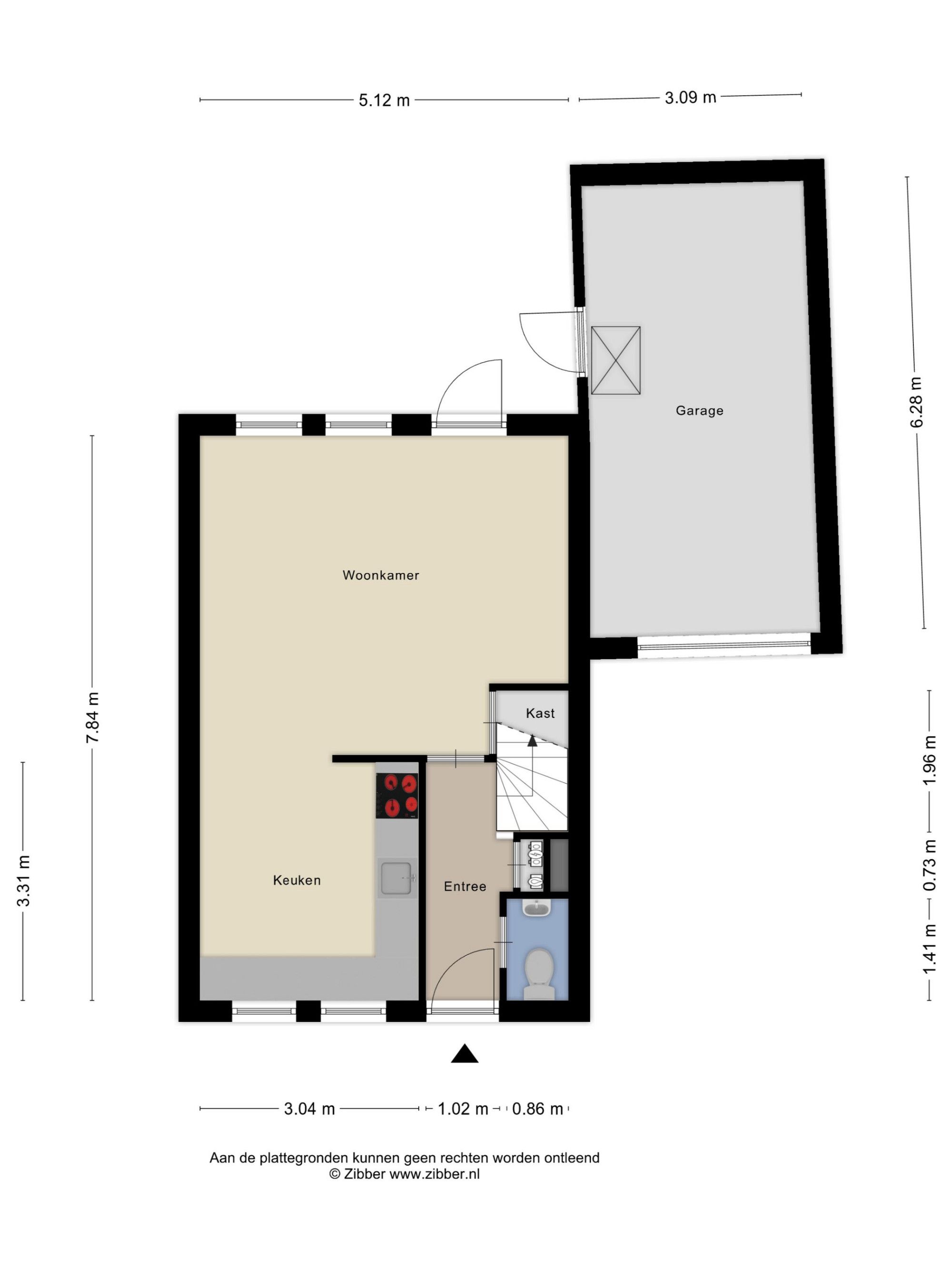 Entree met hal, meterkast en toilet. Toegang tot de woonkamer met grote raampartijen en deur naar de achtertuin. Halfopen keuken aan de voorzijde met groene keukenopstelling, houten werkblad en betegelde achterwand. Vanuit de woonkamer toegang tot de trap naar de eerste verdieping.