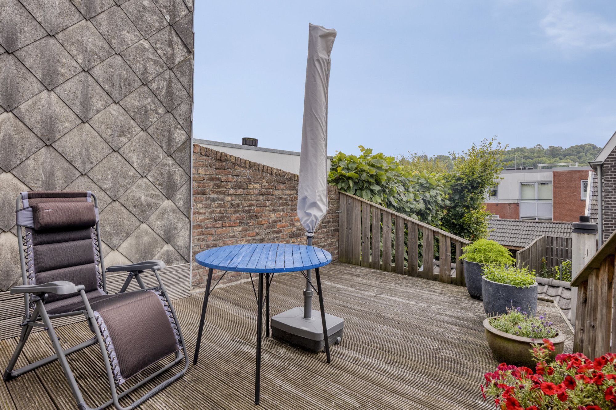 Middels de vaste trap bereikt u de overloop met airco. Deze biedt toegang tot een tweetal slaapkamers en het dakterras. Slaapkamer 1 van ca. 11 m² en slaapkamer 2 van ca. 13 m² zijn net zoals de overloop voorzien van een laminaatvloer. Het op het Zuidoosten gelegen dakterras van ca. 14 m² biedt veel privacy en een plek om te genieten van de zon en omgeving.