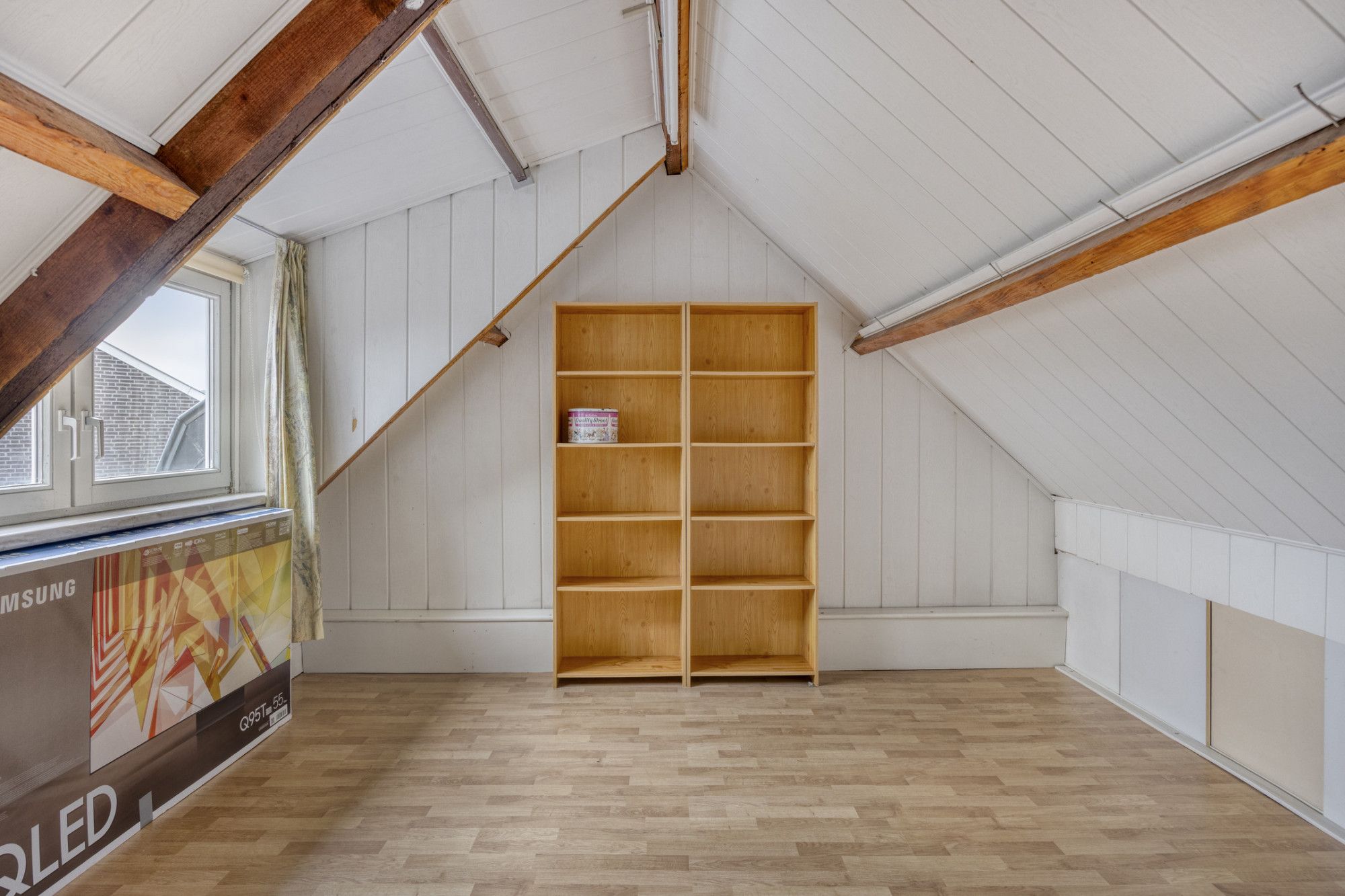 Middels een vaste trap bereikt u de overloop, alwaar de cv-installatie geplaats is en er toegang is tot slaapkamer 3. Slaapkamer 3 van ca. 8 m² is voorzien van een dakkapel en een laminaatvloer.