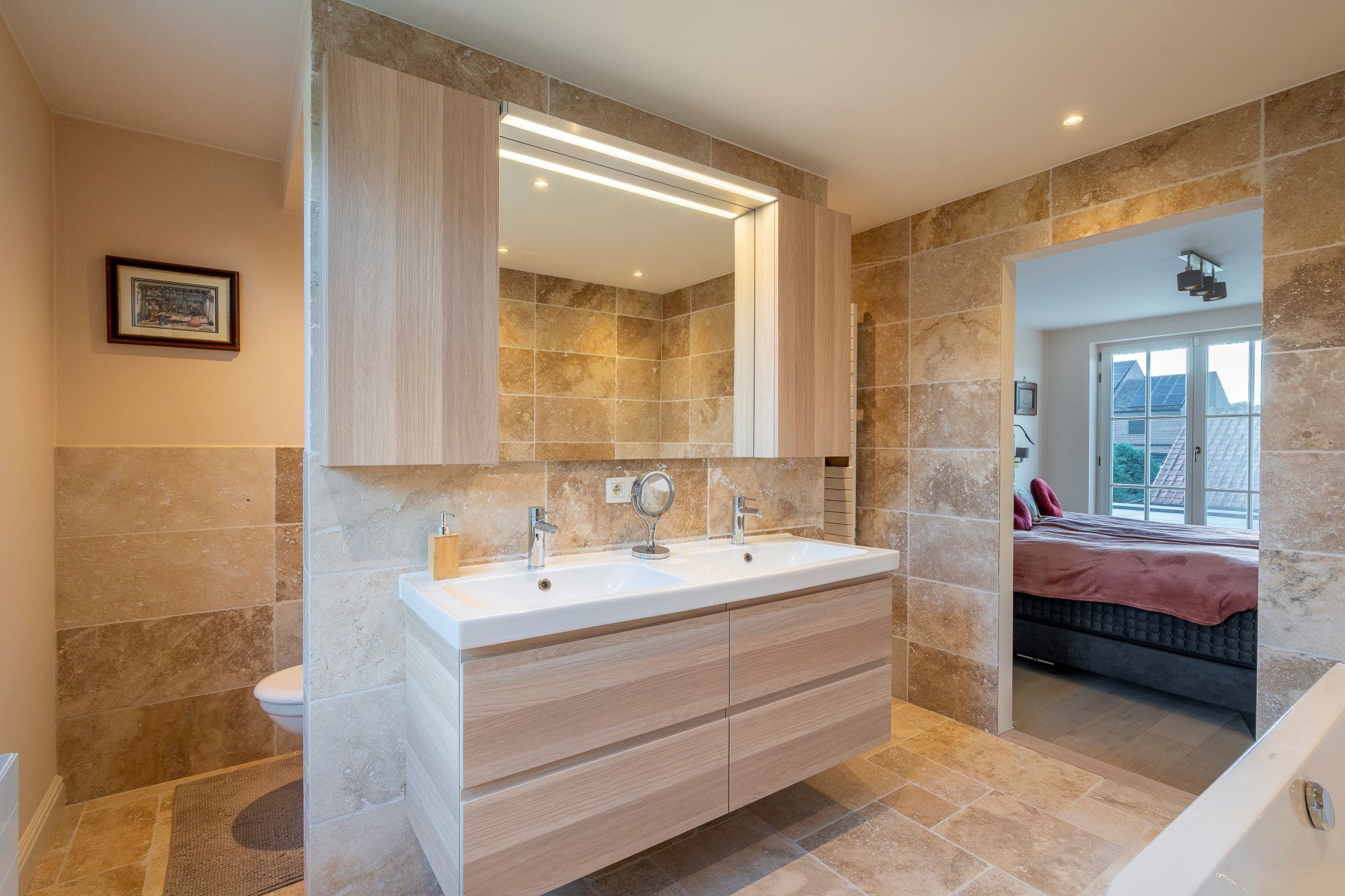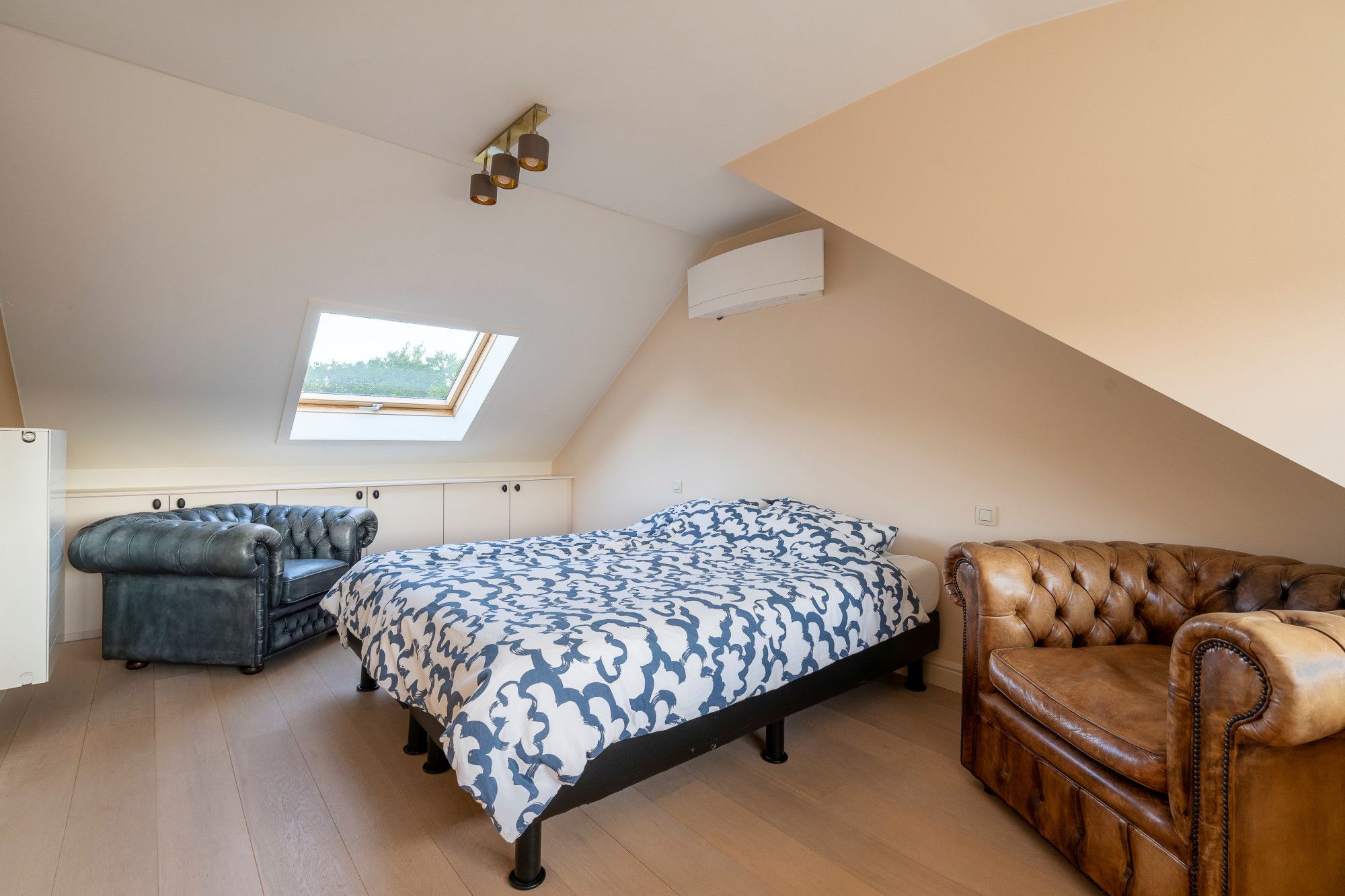 There is no shortage of storage space: the home features a small cellar, a double garage with attic storage, a covered terrace, and a low-maintenance garden with an automatic irrigation system. The garden is fully fenced and offers maximum privacy.