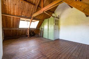 Met de vaste trap komen we op de zolder. Een zolder met dakkapel aan de voorzijde. Hier kan zonder al te veel werk een ruime slaapkamer van worden gemaakt. Eventueel met een scheidingswand, waardoor nog voldoende ruimte overblijft voor was- en/of bergruimte.