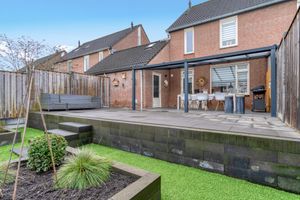 De achtertuin, vernieuwd in 2020, is een echte eyecatcher. De tuin is opgedeeld in twee niveaus en beschikt over een prachtige overkapping, onderhoudsvriendelijk kunstgras en een sfeervol vrijstaand prieeltje. Meerdere elektrische punten maken het gebruik van verlichting of andere apparaten eenvoudig.