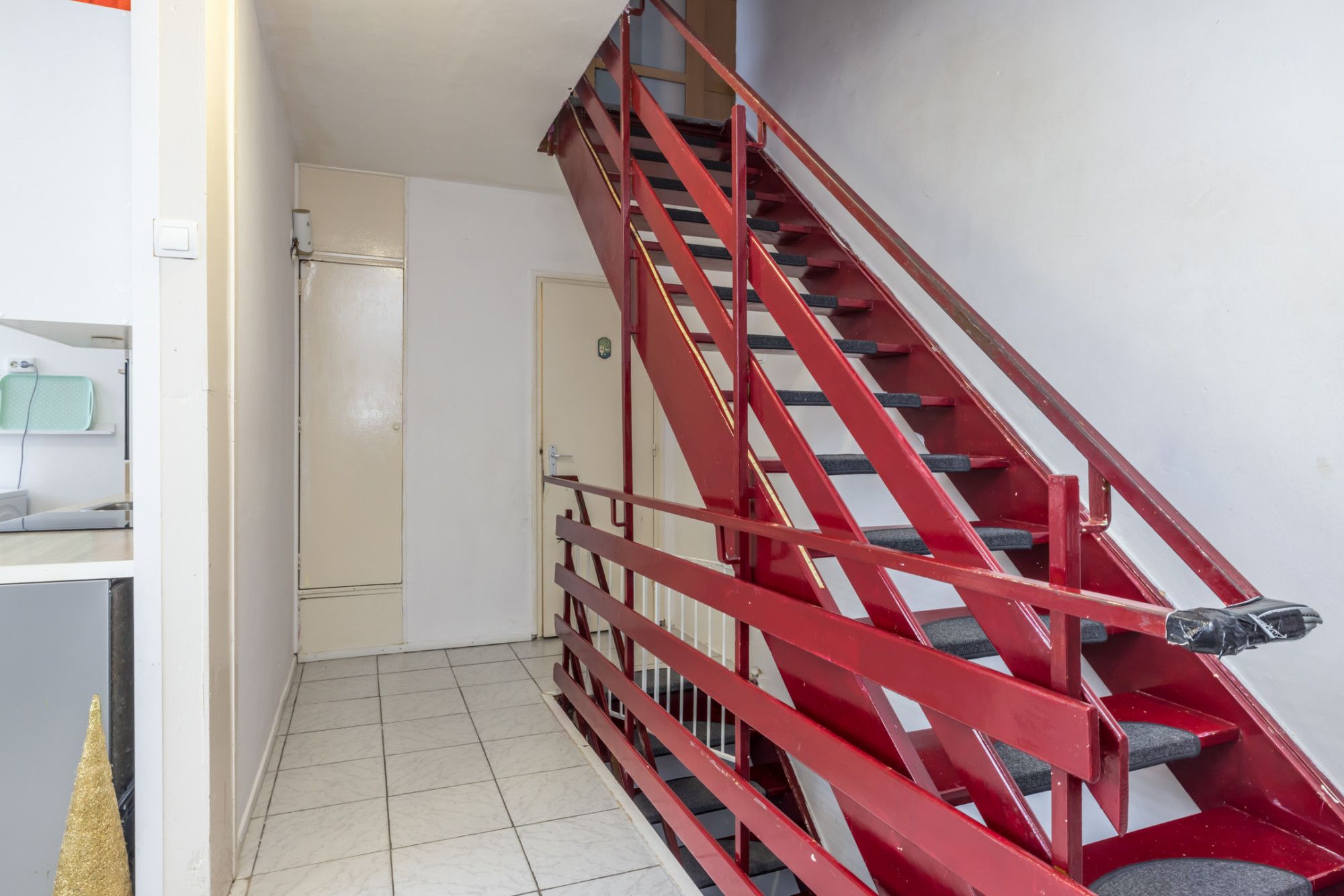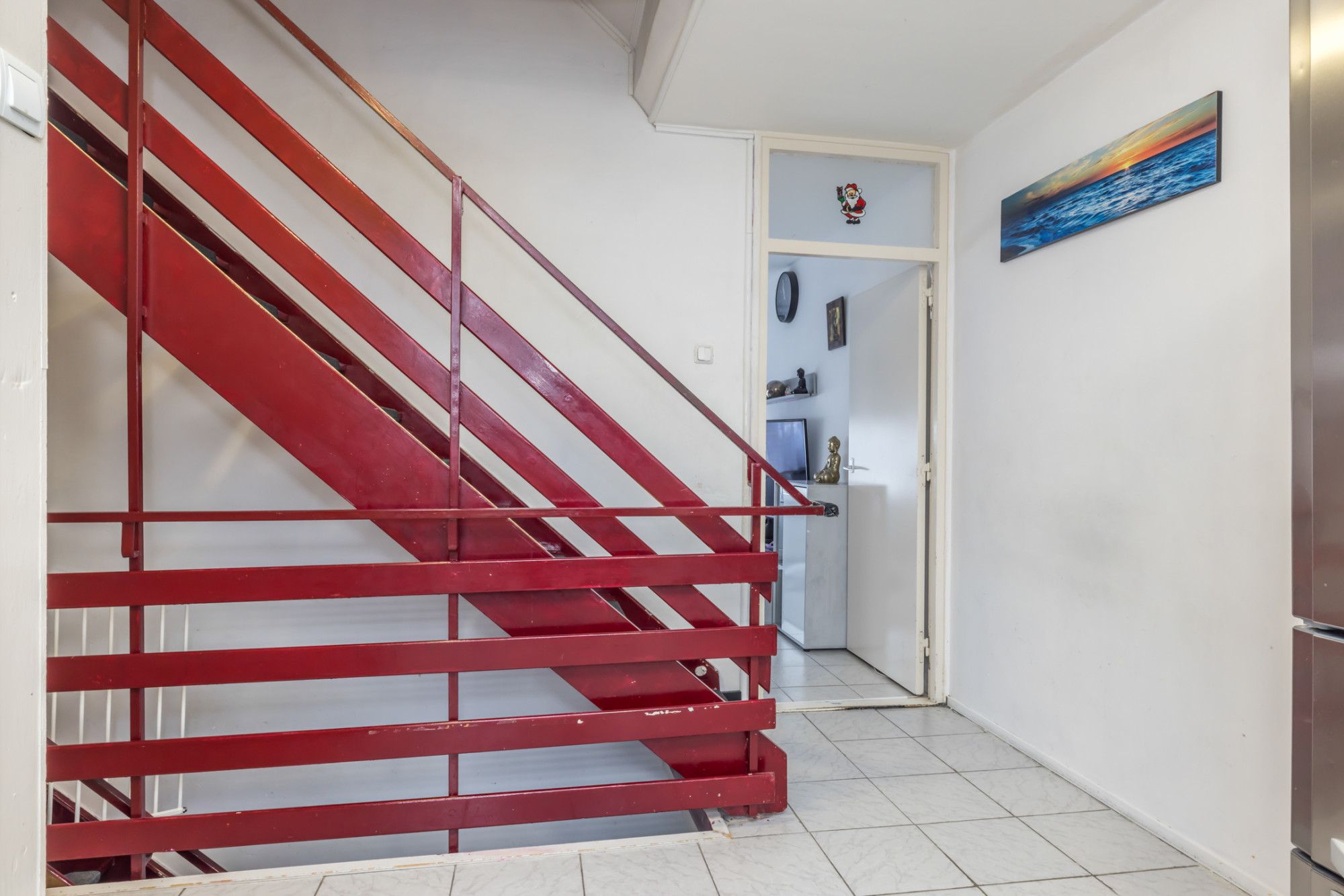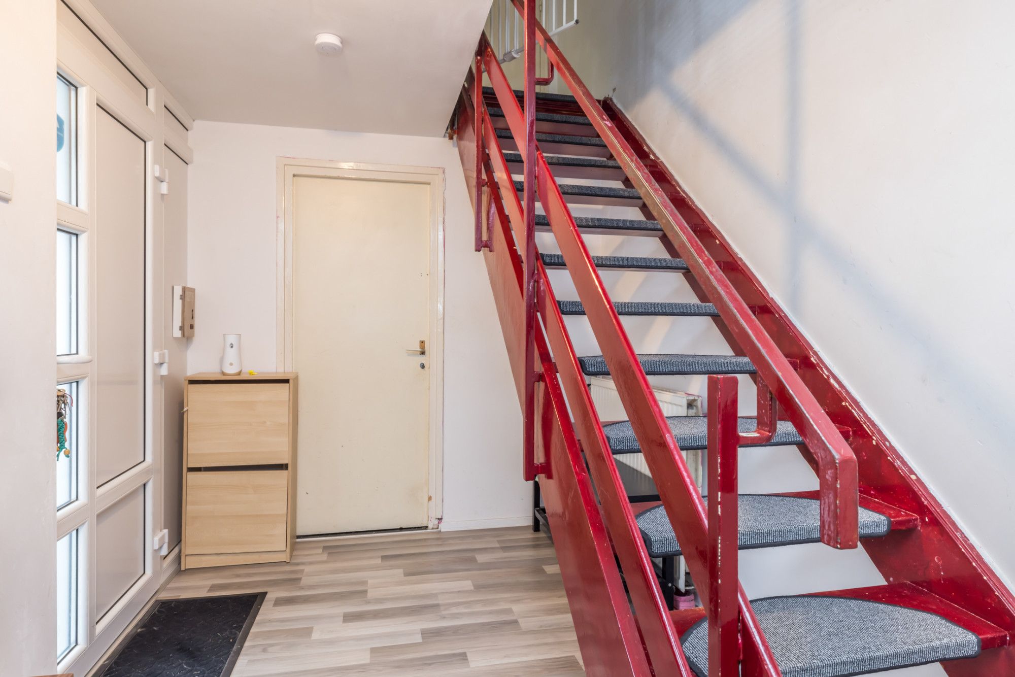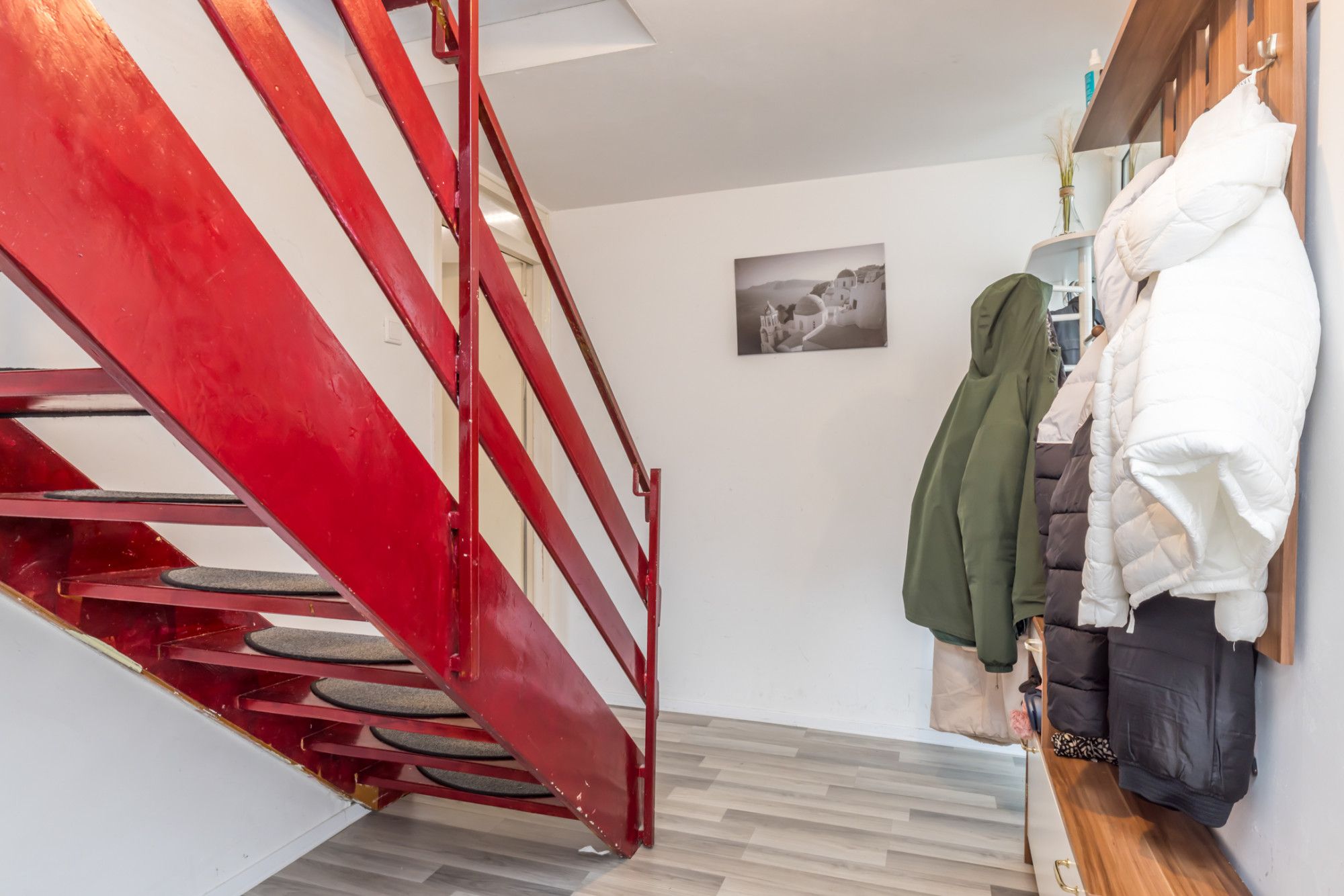 Hal/Entree, garderobe en trappenhuis naar de verdieping. Ruime slaapkamer aan de achterzijde.