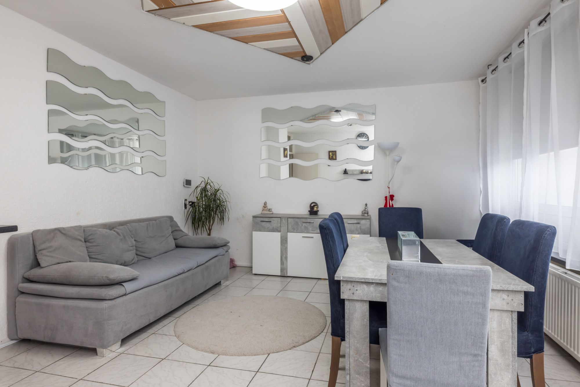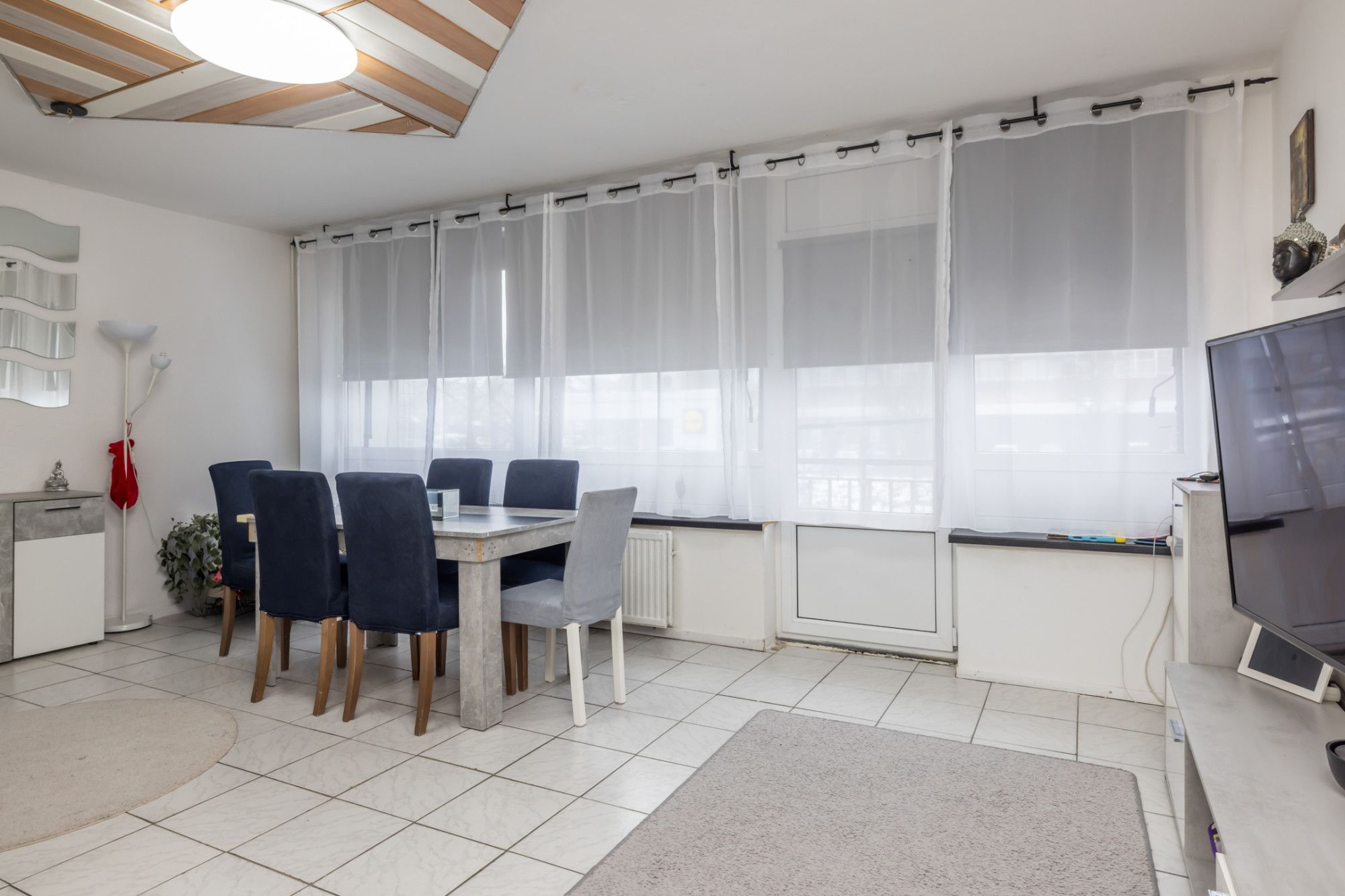 Ruime woonkamer aan de achterzijde met veel lichtinval via de grote raampartij, waar gesitueerde living/lounge met zithoek en toegang tot het balkon voorzien van een zonnescherm.