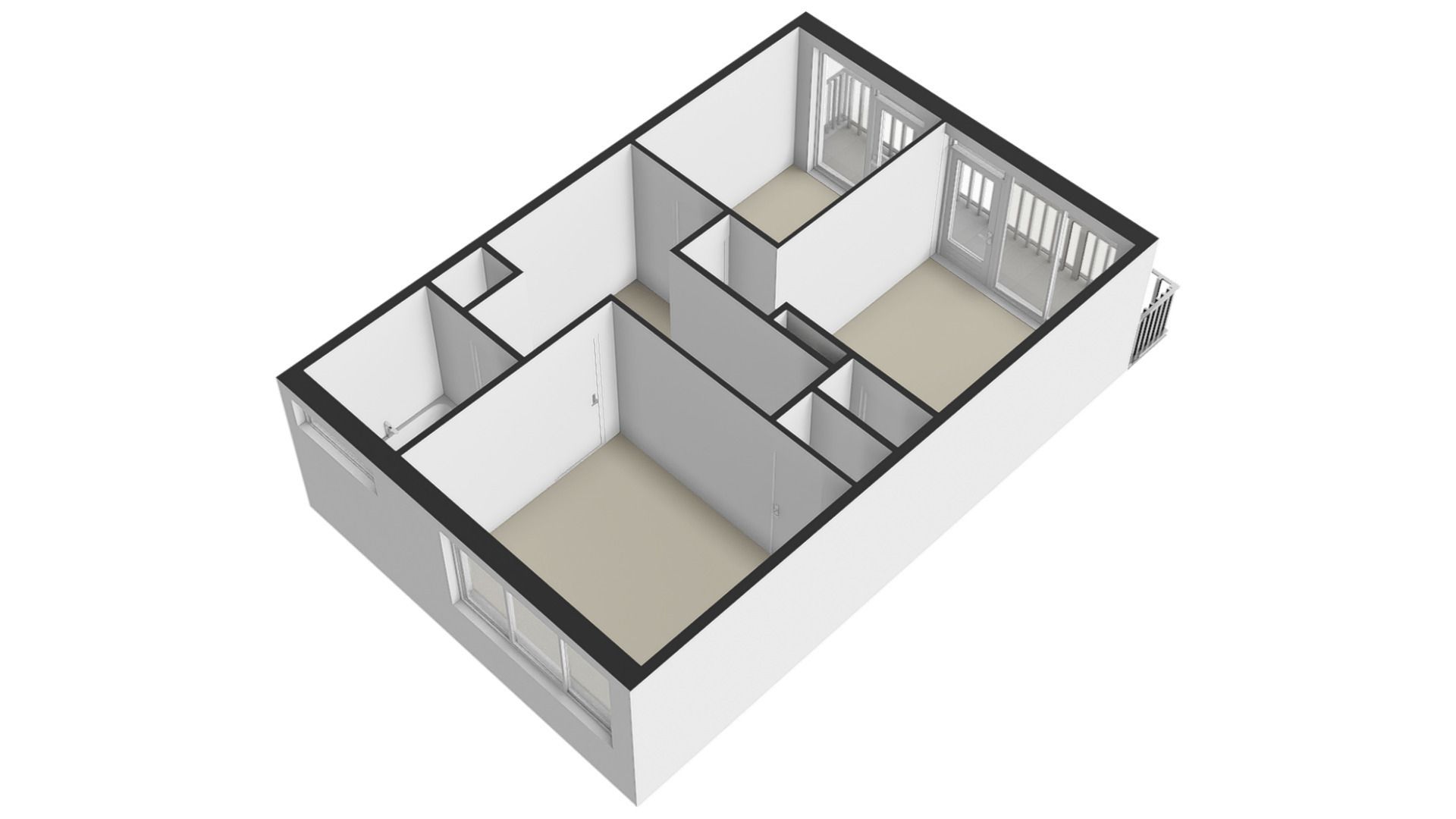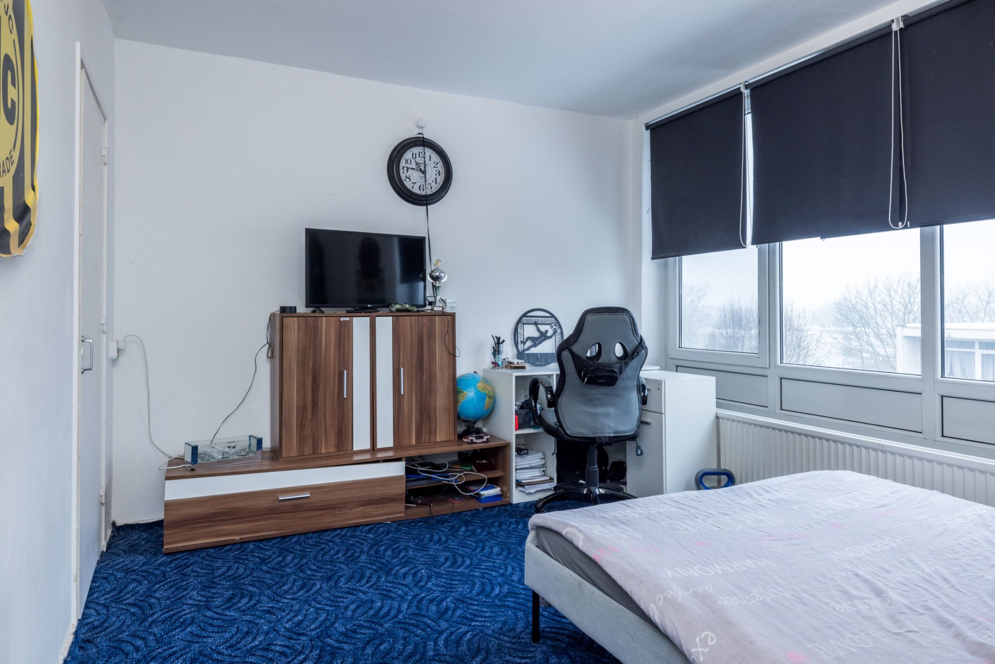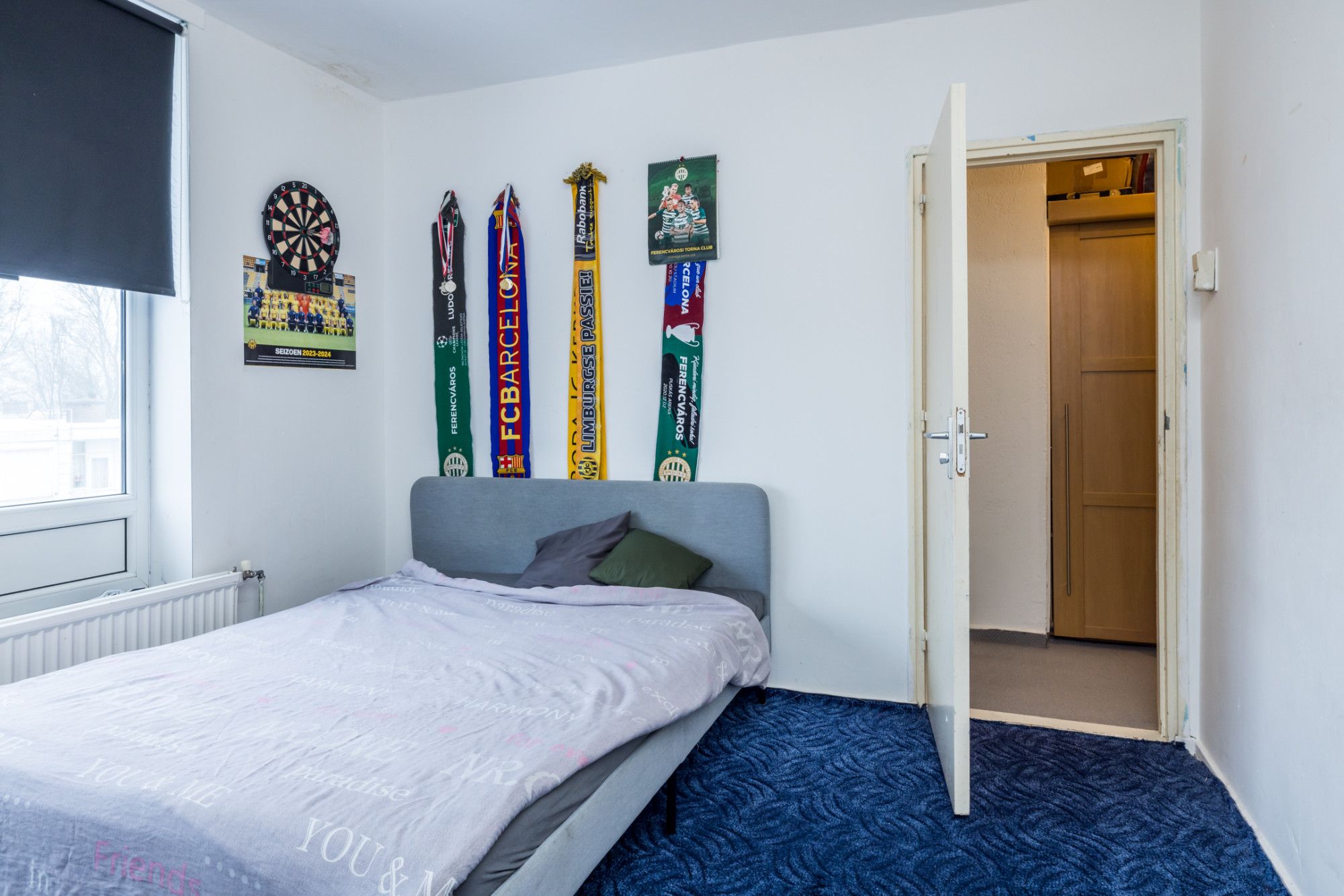 De hoofdslaapkamer bevindt zich rechtsvoor en heeft een muurkast.