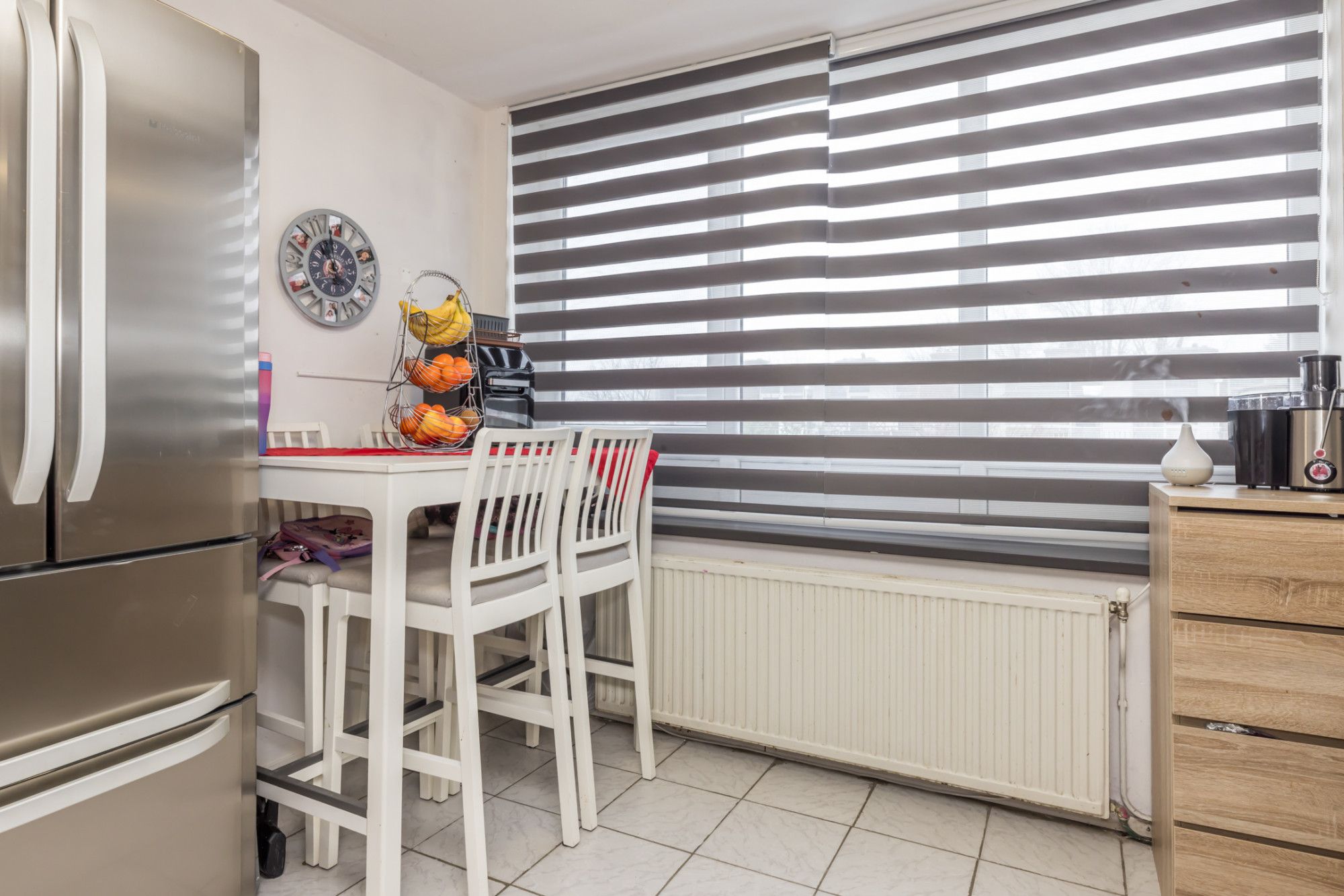 Centraal geplaatste eetkamer in de doorgang naar de keuken