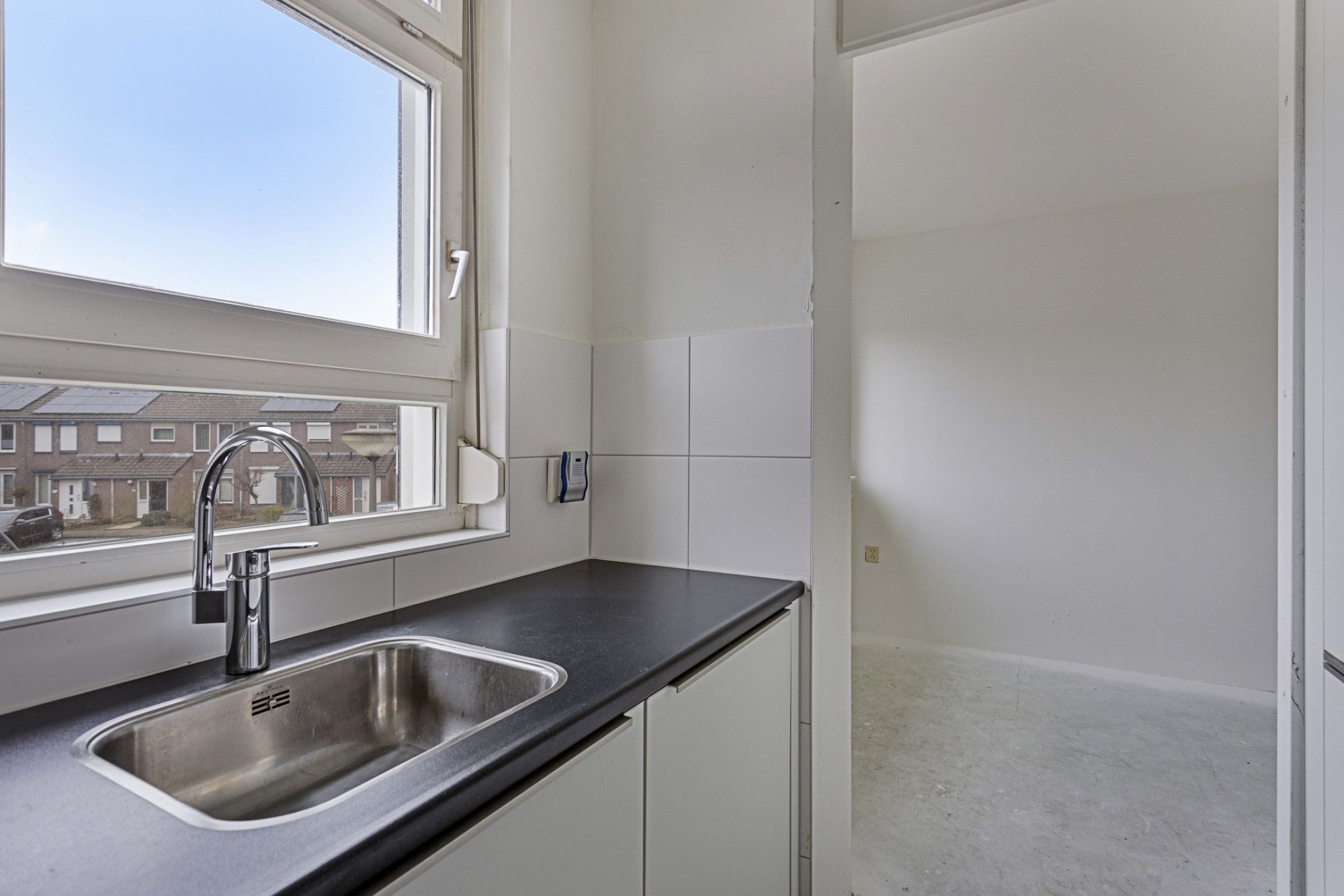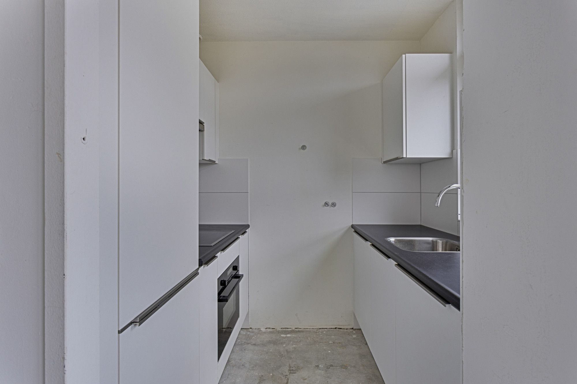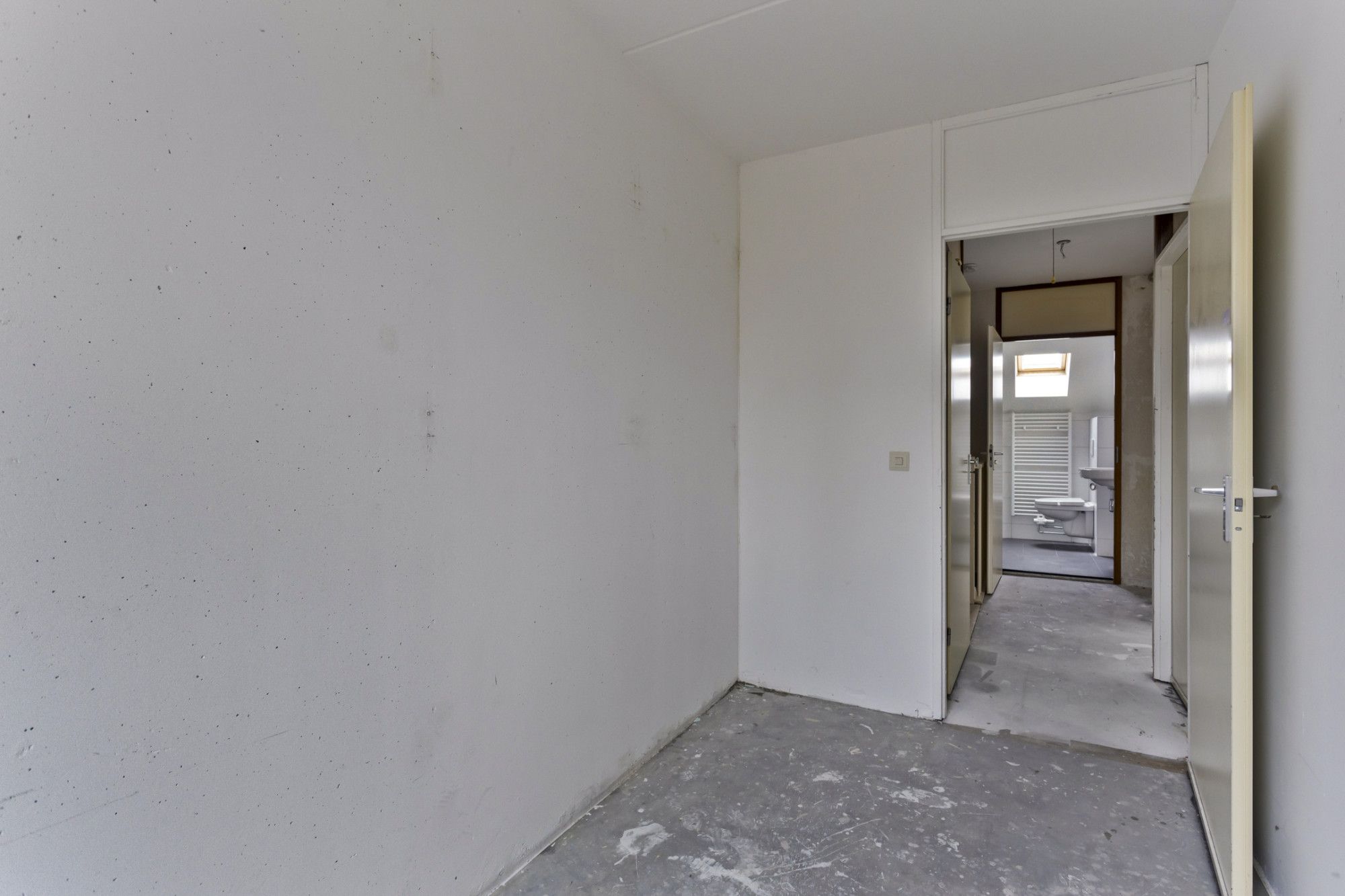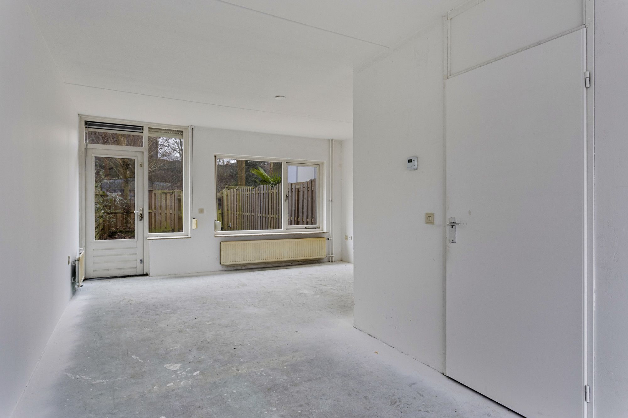 Overloop met toegang moderne toiletruimte. Woonkamer met toegang naar de achtertuin, die op het zuiden is gelegen. Aan de voorzijde bevindt zich de moderne keukeninstallatie.