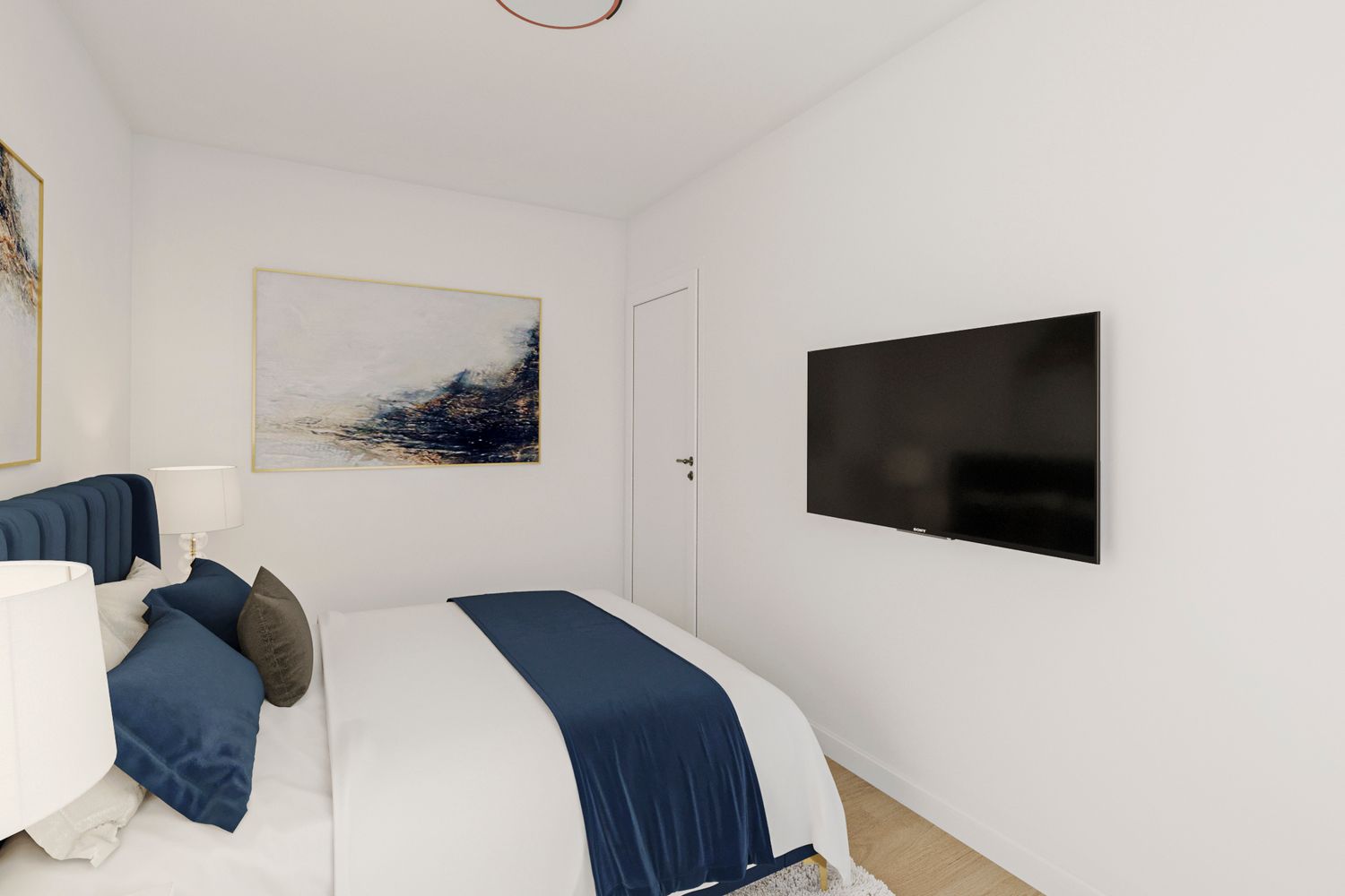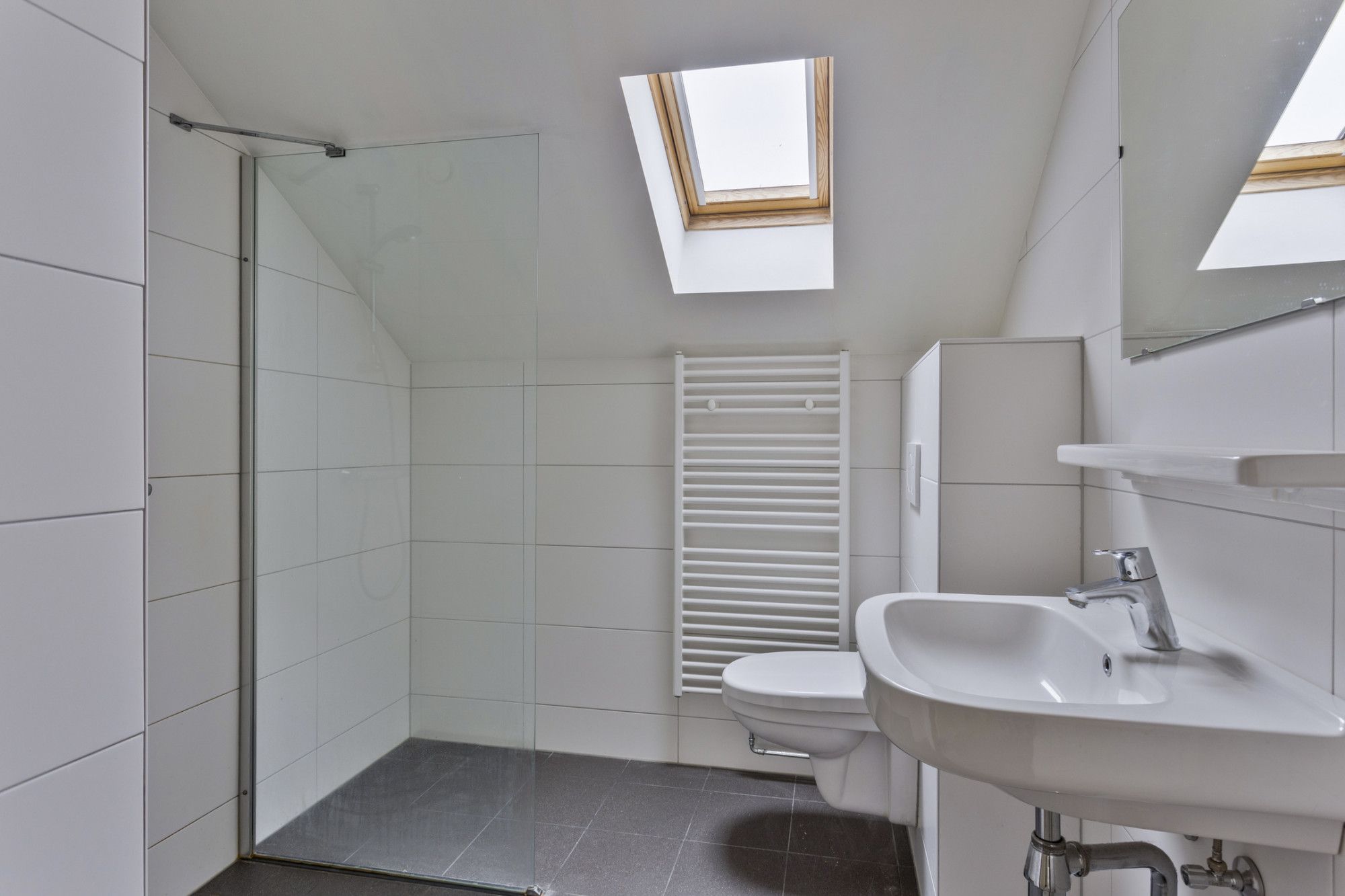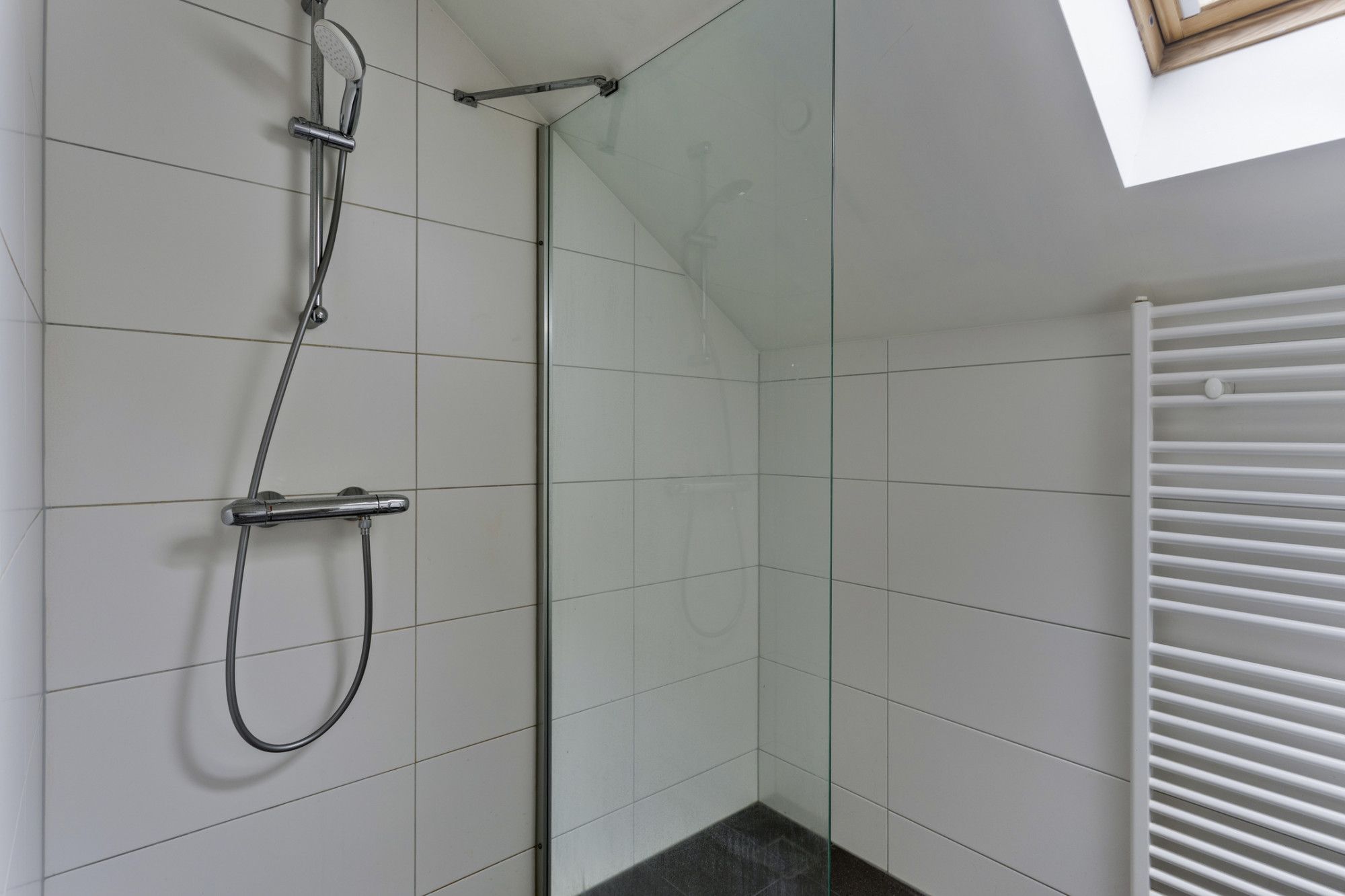 Overloop met toegang naar 3 slaapkamers. Moderne badkamer met inloopdouche, wastafel en 2e zwevend toilet.