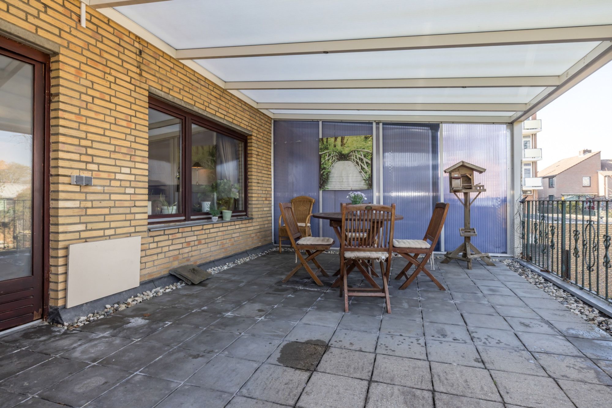 - Ruime achtertuin met achterom ingang, balkon en een garage.