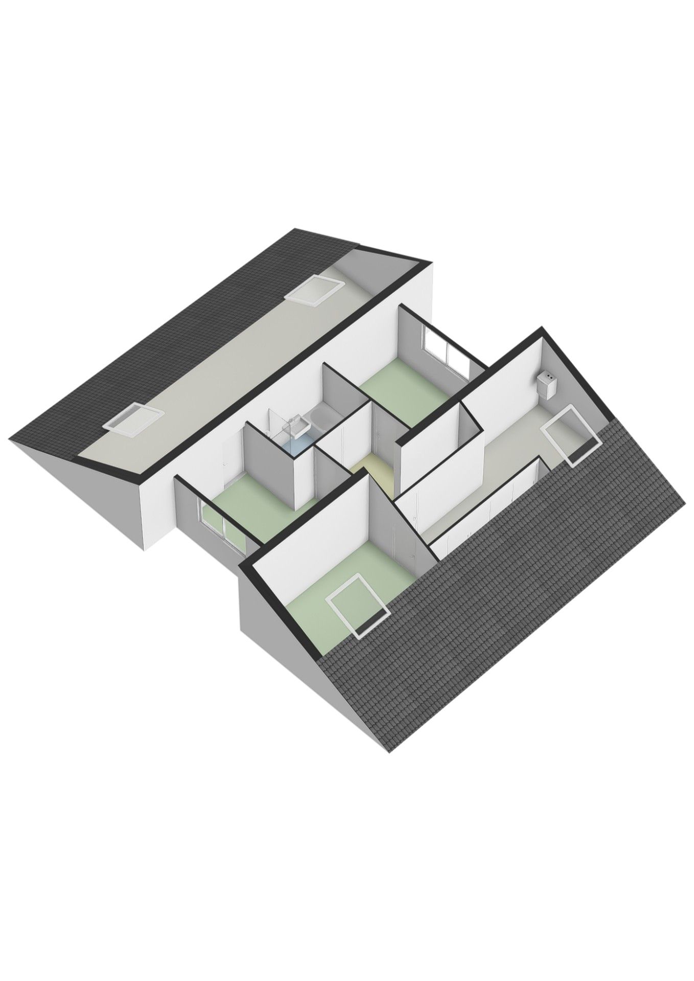 Slaapkamer III (3,47 m x 3,99 m) biedt toegang tot de ruime zolderruimte (11,40 m x 4,26 m) met opbergmogelijkheden onder de schuintes van het dak. Slaapkamer IV (3,09 m x 3,99 m). Slaapkamer V (4,60 m x 4,27 m) met toegang tot 2 ruime zolderruimte. In deze zolderruimte (7,14 m x 3,39 m) bevindt zich de c.v. installatie. De 2e betegelde badkamer (3,02m x 1,94m) is voorzien van douche, wastafel, ligbad en toilet.