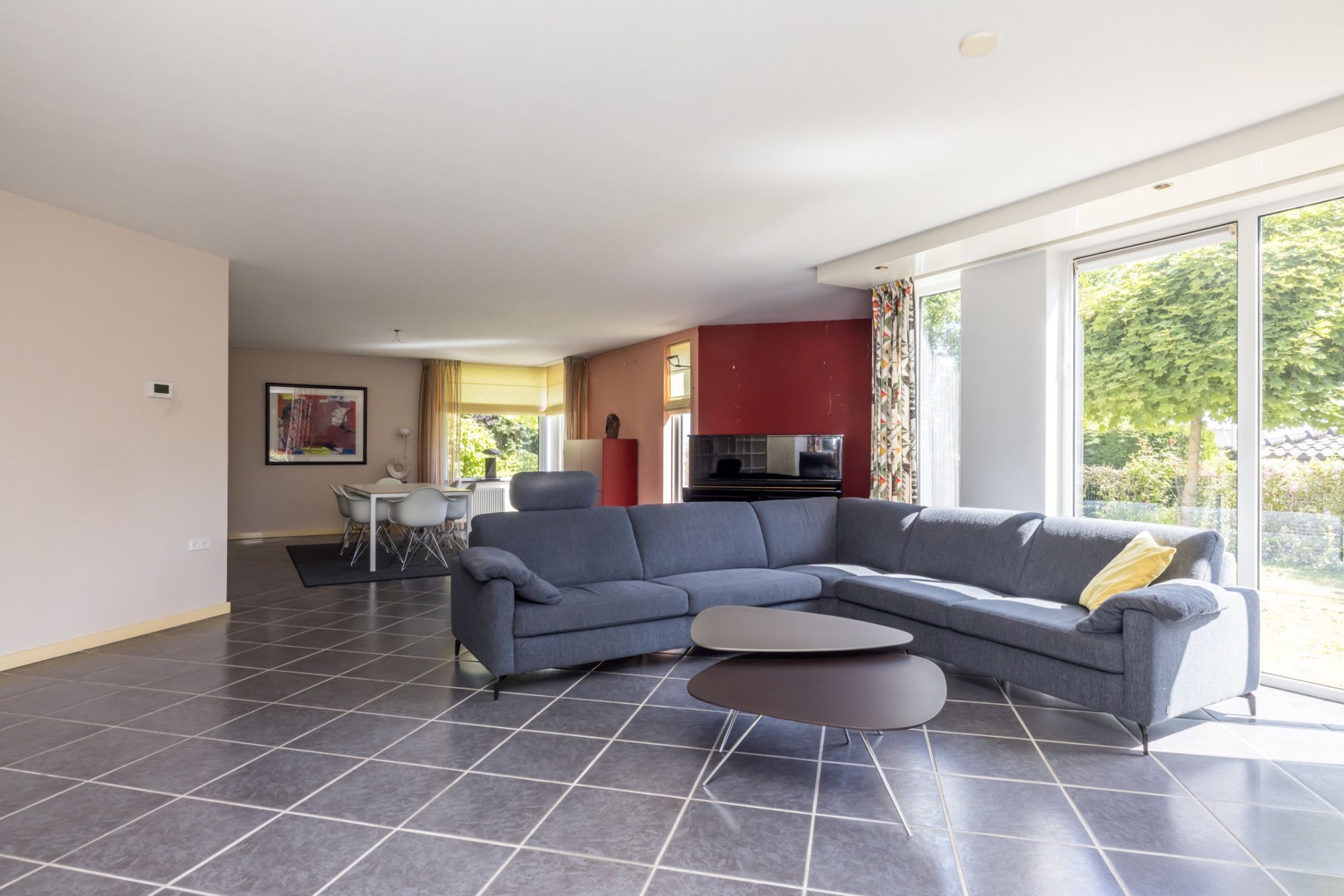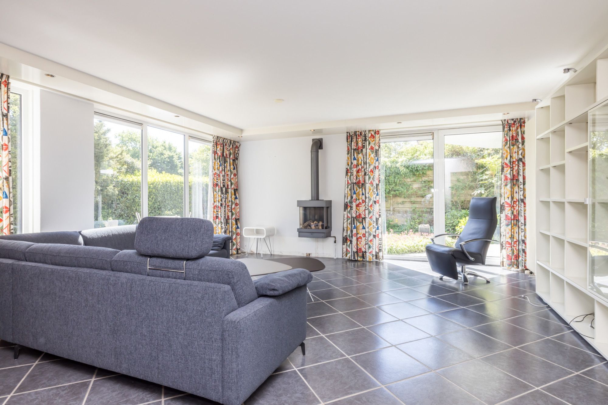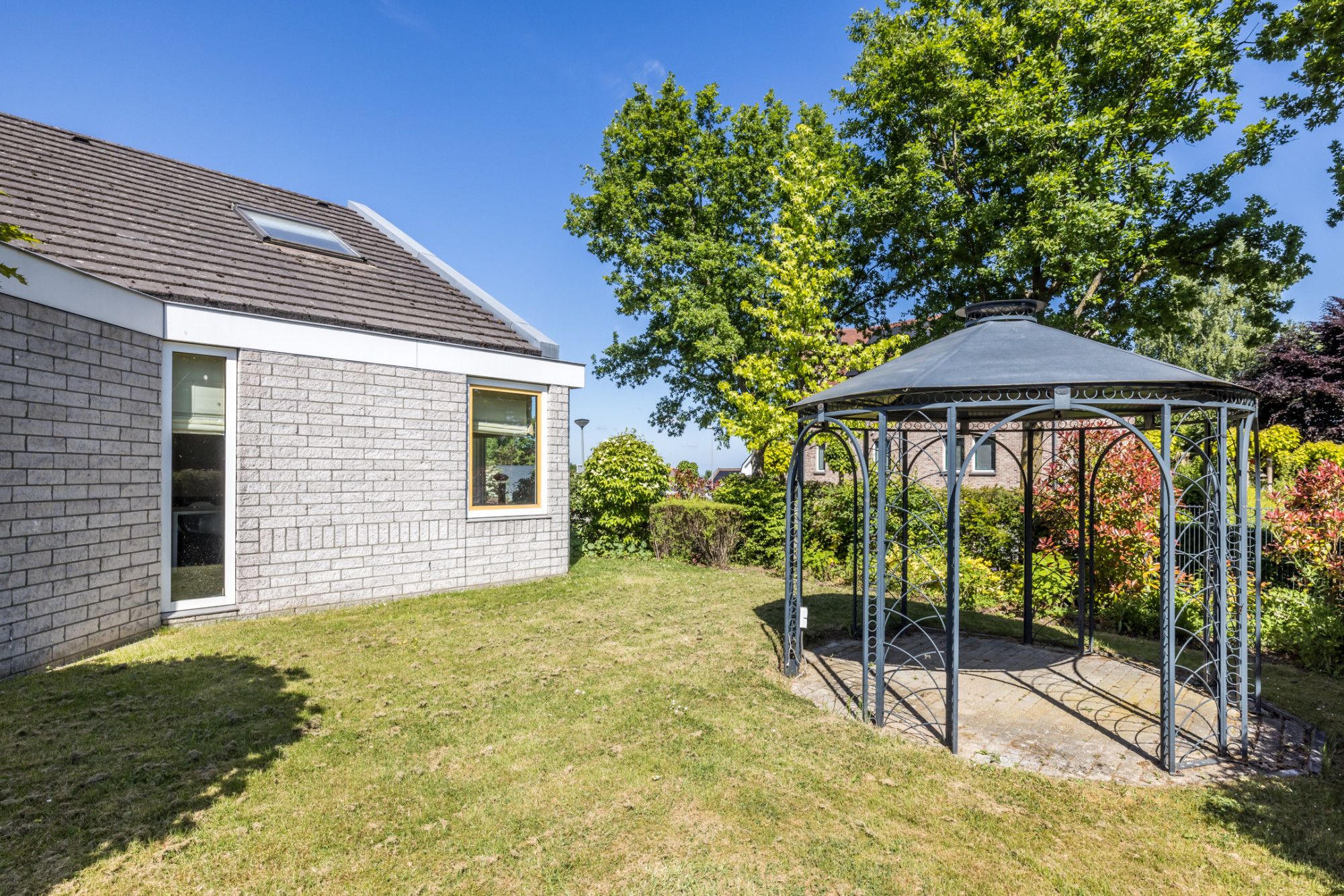 Voortuin met toegang tot entree. De ruimte entree/hal is v.v. betegelde toiletruimte v.v. zwevend closet en fonteintje. Vanuit de gang gaat men links naar het woongedeelte en rechts naar het slaapgedeelte. De woon-/eetkamer (11,38m x 5,39m) is v.v. een gaskachel, schuifpui naar overdekt terras en tuin en kenmerkt zich door de vele raampartijen en lichtinval. De separate keuken (3,99m x 3,99m) v.v. installatie en apparatuur: kookplaat, afzuigkap, koelkast, vaatwasser en oven. Vanuit de keuken heeft men ook toegang tot de tuin en toegang tot het slaapgedeelte.
