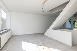 Voorgelegen halfopen keukenruimte waar eenvoudig een eigentijdse inbouwkeuken geplaatst kan worden.