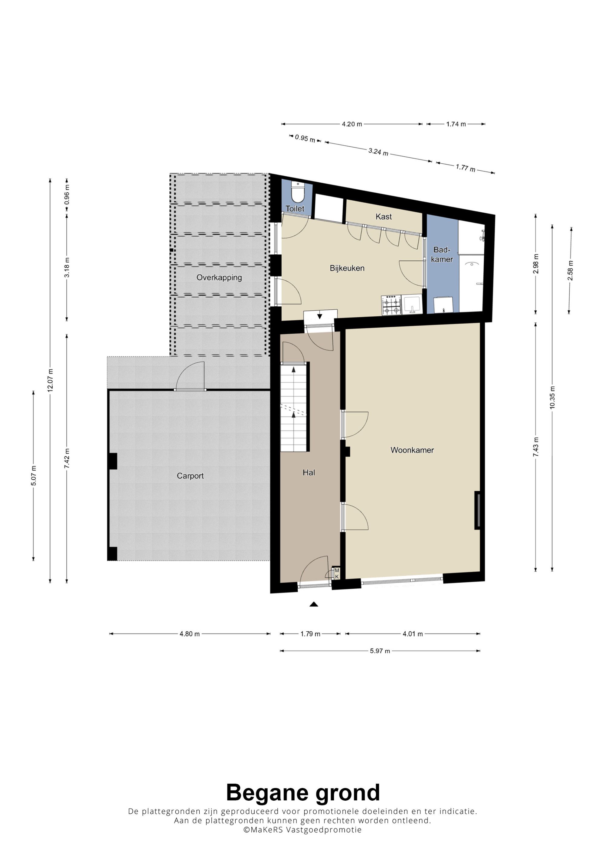 Alle door ons kantoor verstrekte informatie omtrent onroerende zaken, moet beschouwd worden als een uitnodiging om in onderhandeling te treden en is geheel vrijblijvend! Alle vermelde maten en afmetingen zijn slechts bij benadering. Een (eventueel) bijgevoegde plattegrond dient uitsluitend als globale indicatie/visualisatie. Aan deze beperkte informatie