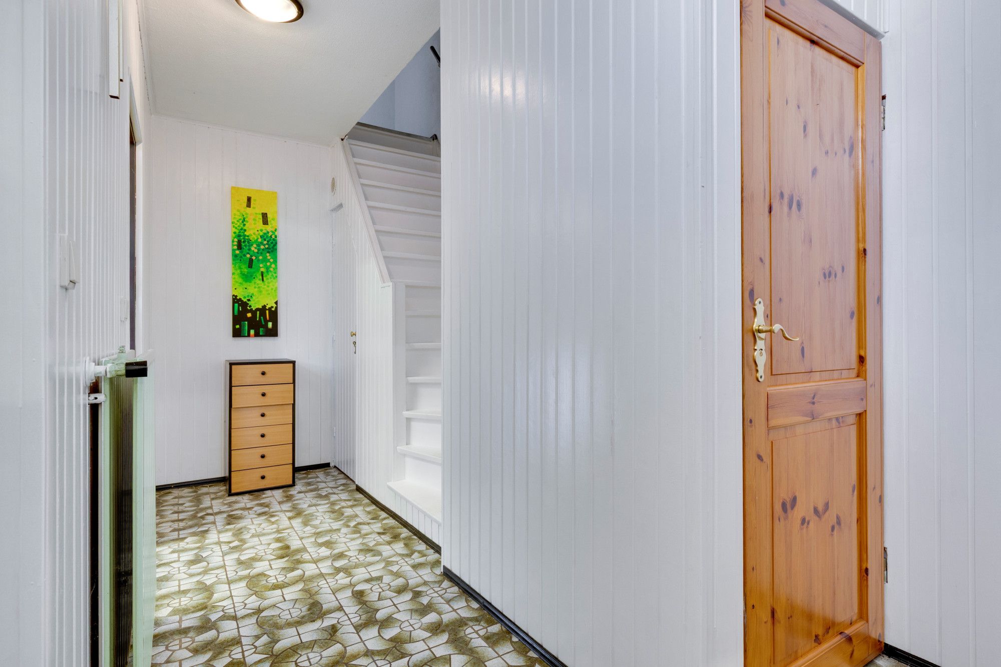 Hal/entree met plavuizenvloer, meterkast. en betegelde toiletruimte met fonteintje. Inpandig bereikbare ruime berging met aansluitpunten voor wasmachine en droger en beschikt over een eigen toegangsdeur aan de voorzijde van de woning.
