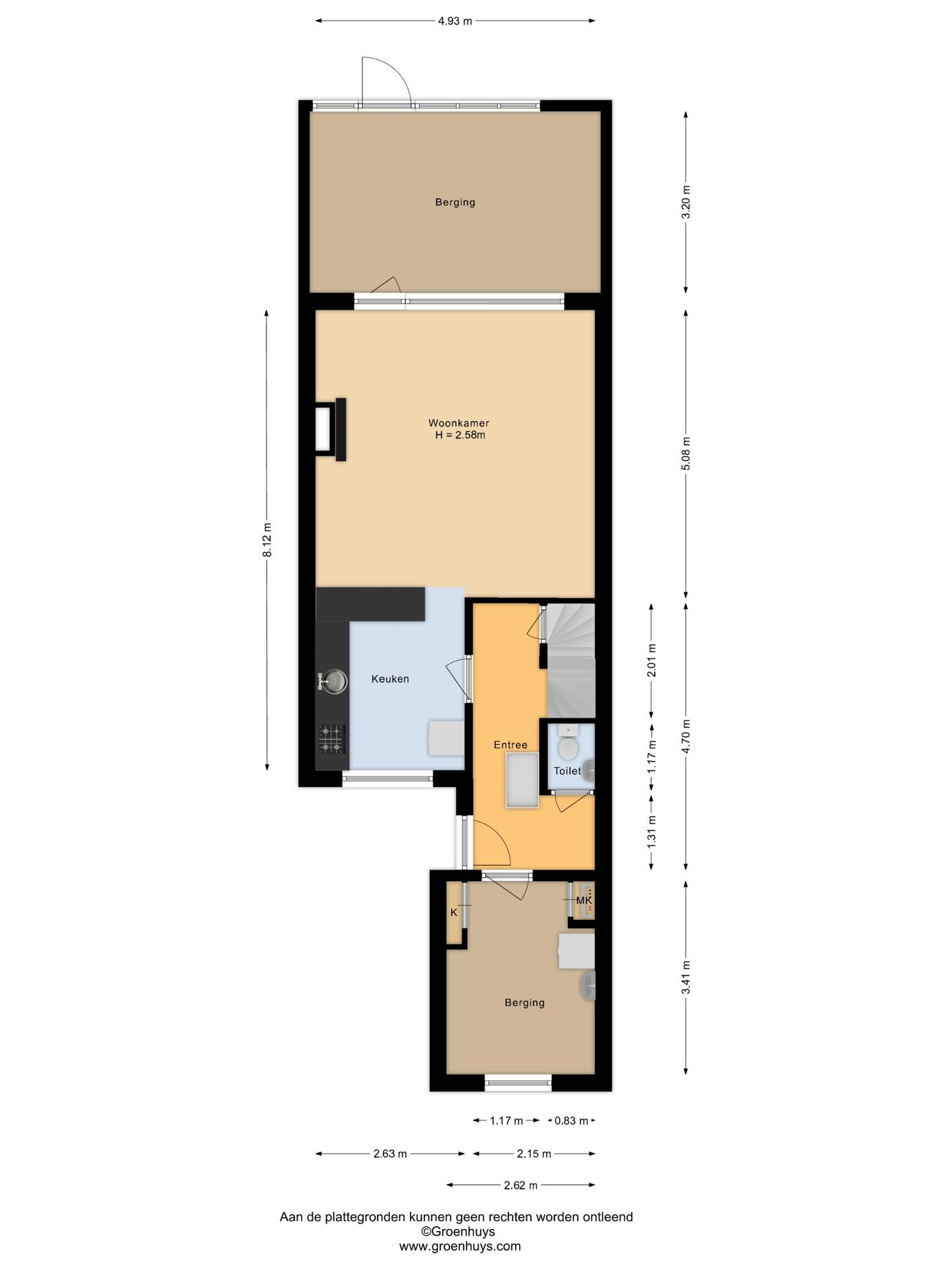 Alle door ons kantoor verstrekte informatie omtrent onroerende zaken, moet beschouwd worden als een uitnodiging om in onderhandeling te treden, en is geheel vrijblijvend! Alle vermelde maten en afmetingen zijn slechts bij benadering. Aan deze beperkte info kunnen geen rechten worden ontleend. Indien in enige documentatie of op enige website informatie staat die niet overeen komt met de werkelijkheid, dan geldt de feitelijke situatie waarin de woning zich bevindt, zoals koper deze tijdens de bezichtiging heeft kunnen waarnemen, en wordt de woning in deze feitelijke situatie/staat verkocht. Een (eventueel) bijgevoegde plattegrond dient uitsluitend als globale indicatie/visualisatie. Hieraan kunnen uitdrukkelijk geen rechten worden ontleend.