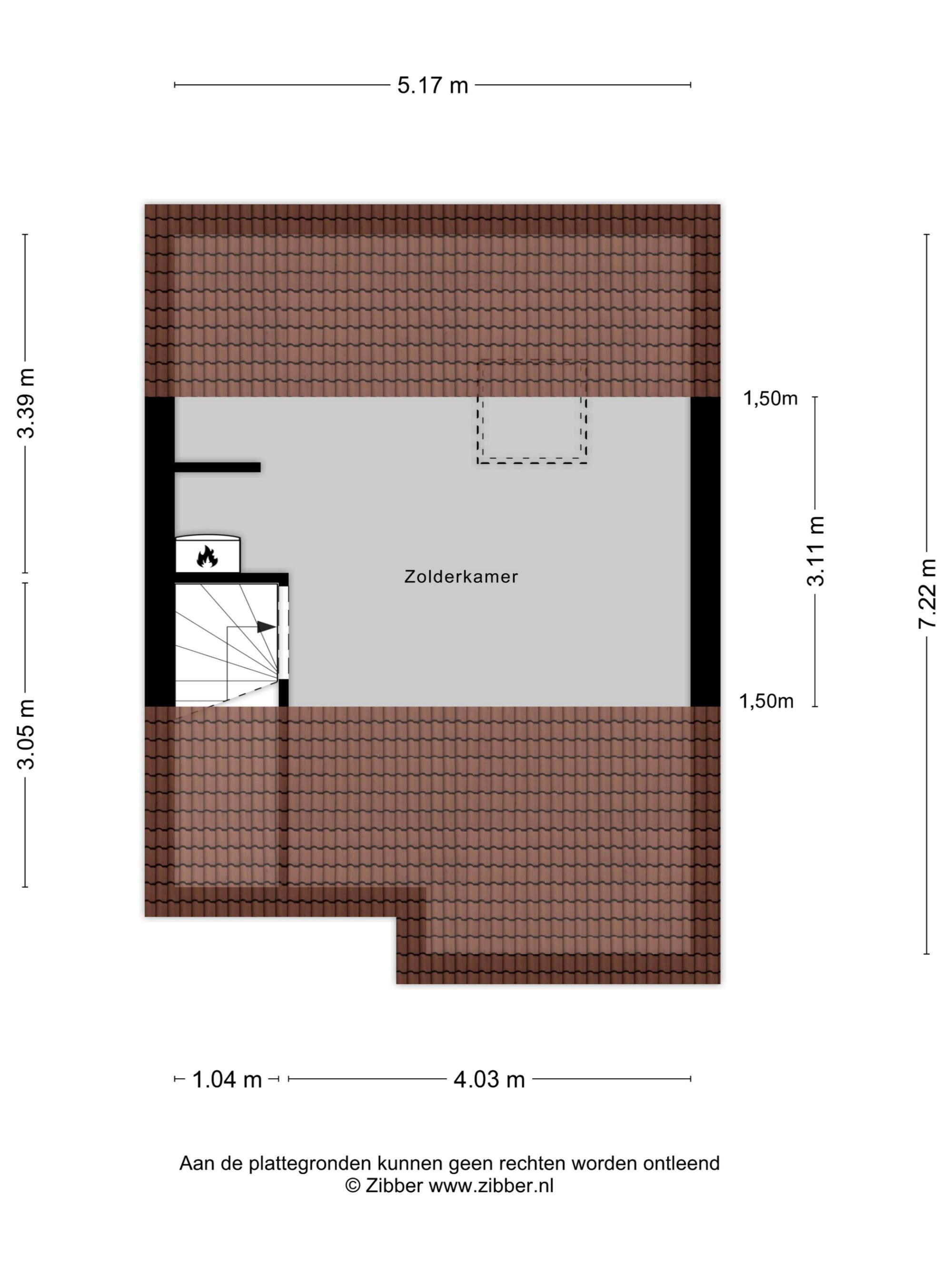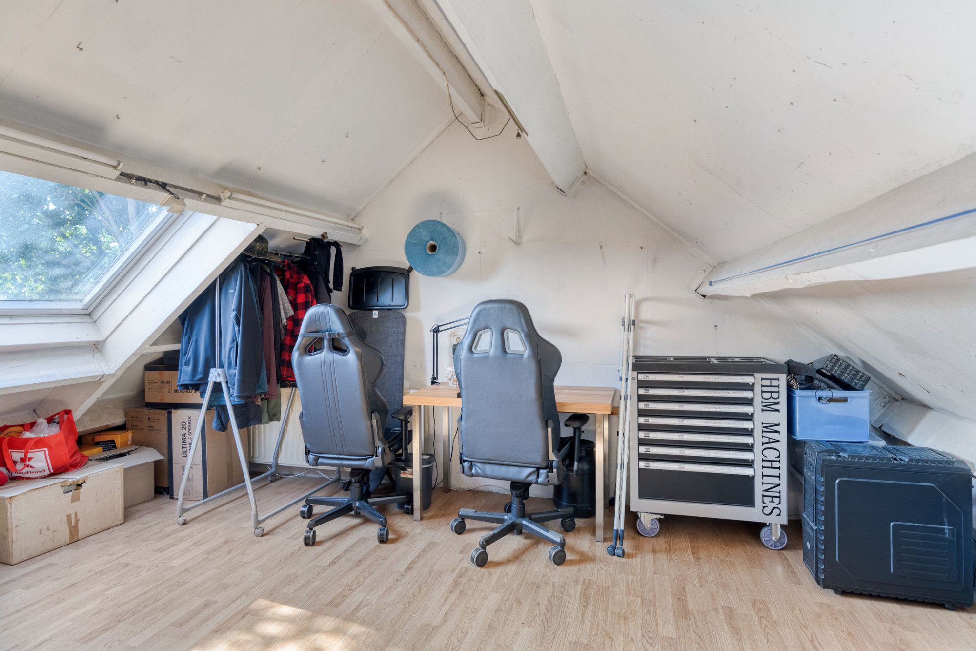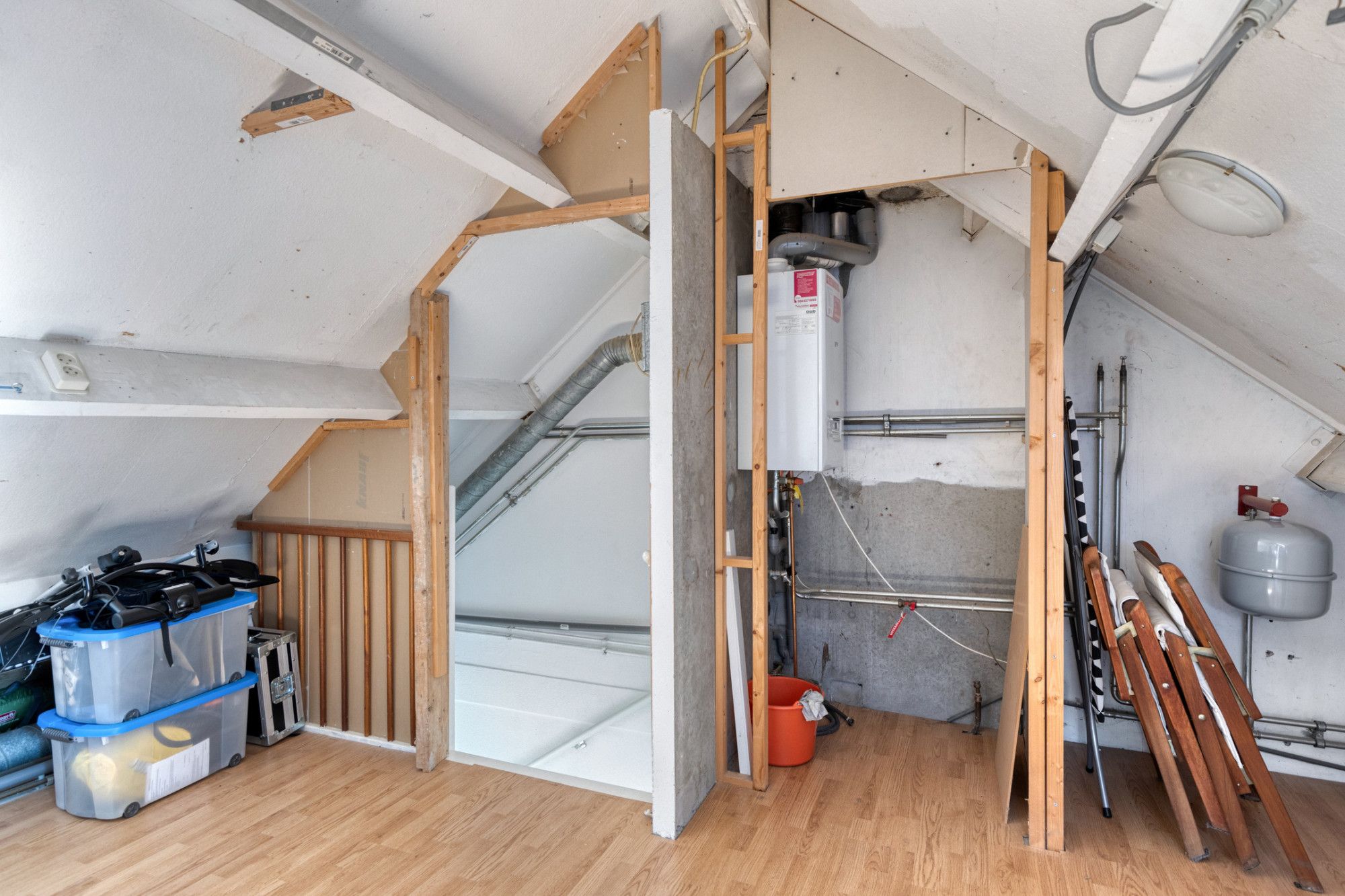 Vaste trap naar ruime zolder(slaap)kamer met dakraam. Opstelplaats cv ketel (AWB, eigendom)