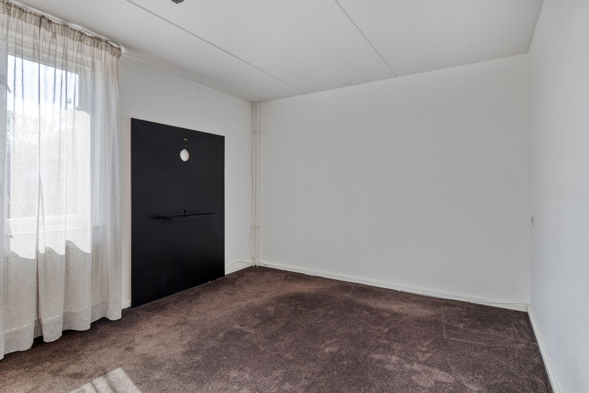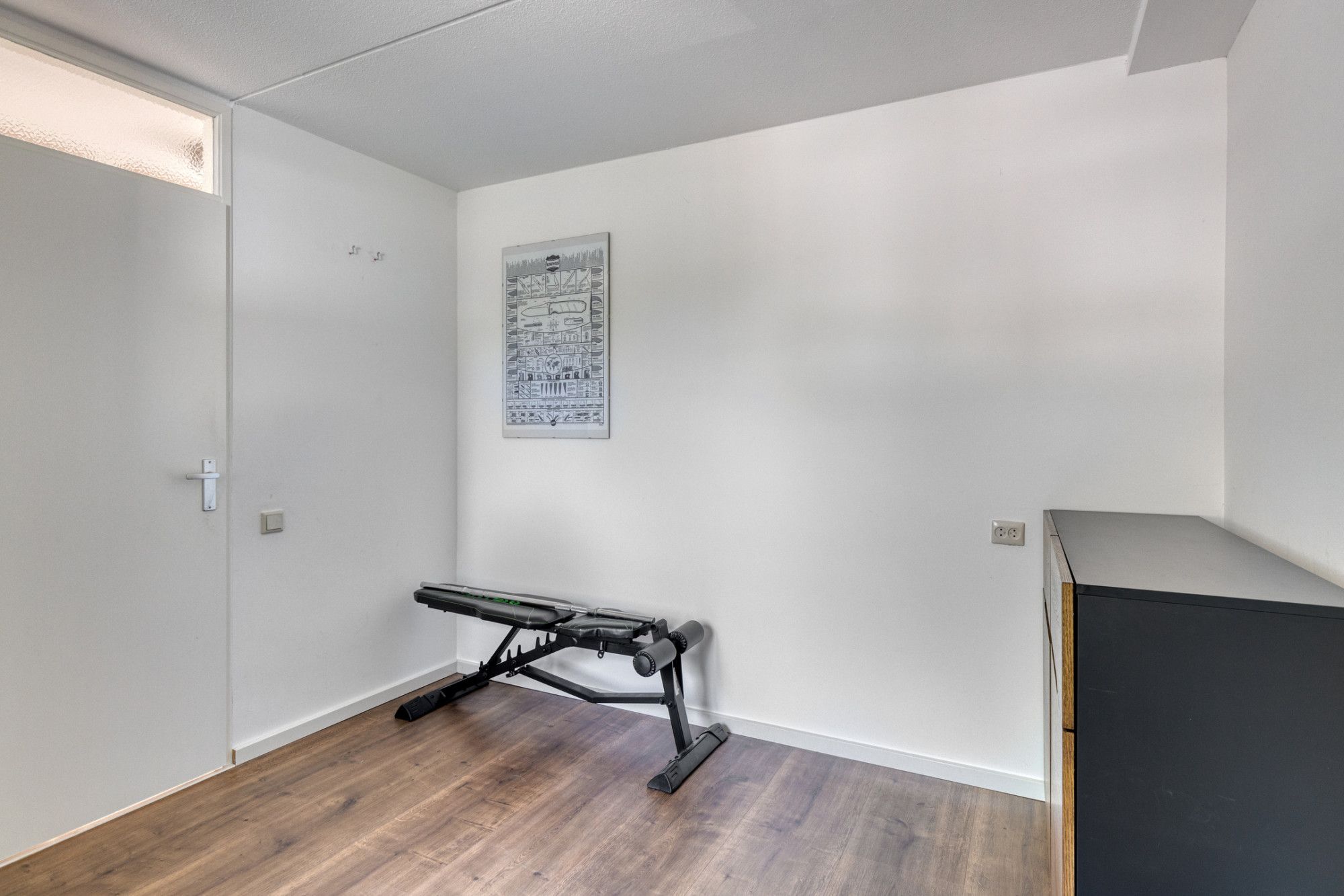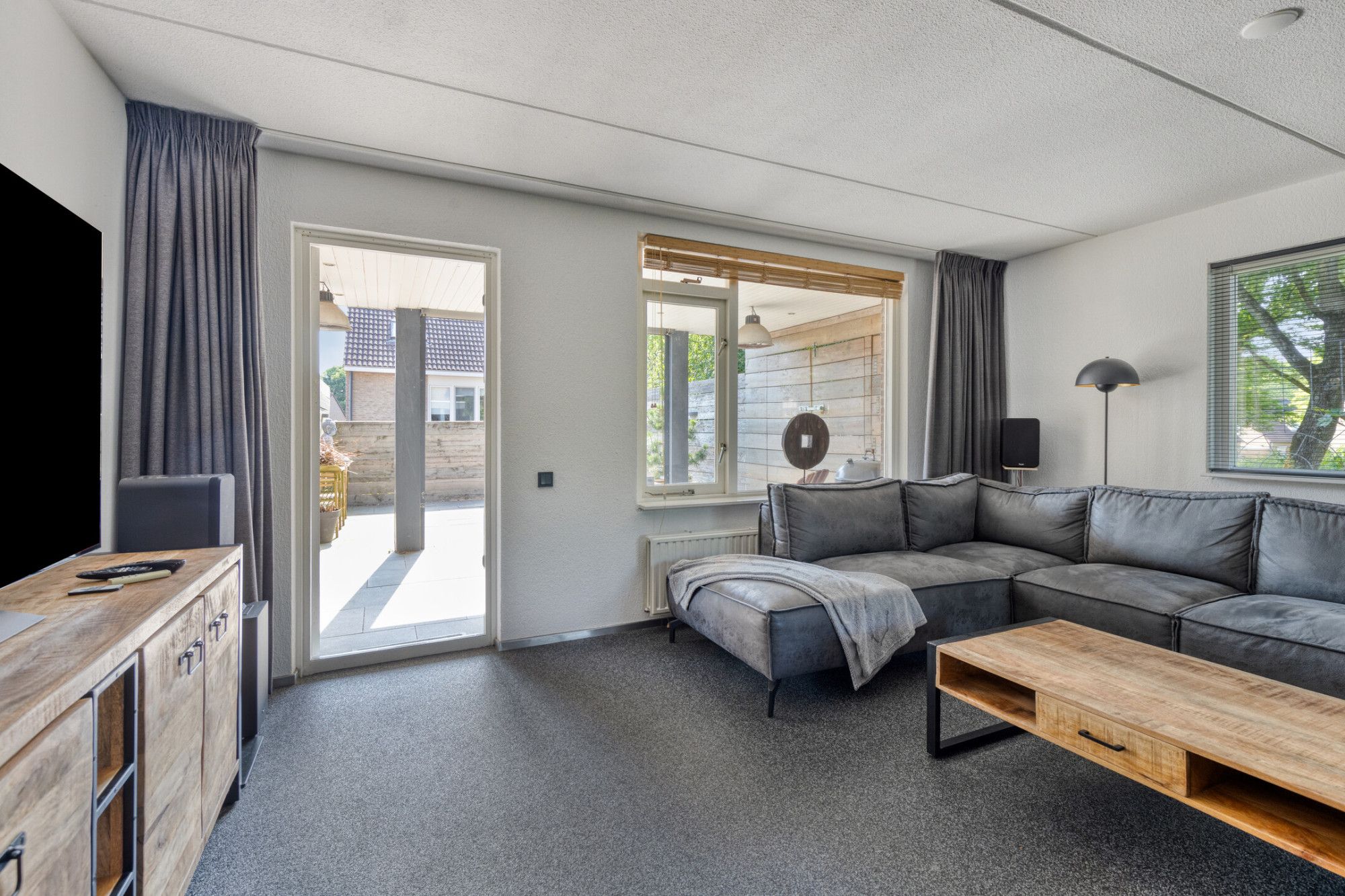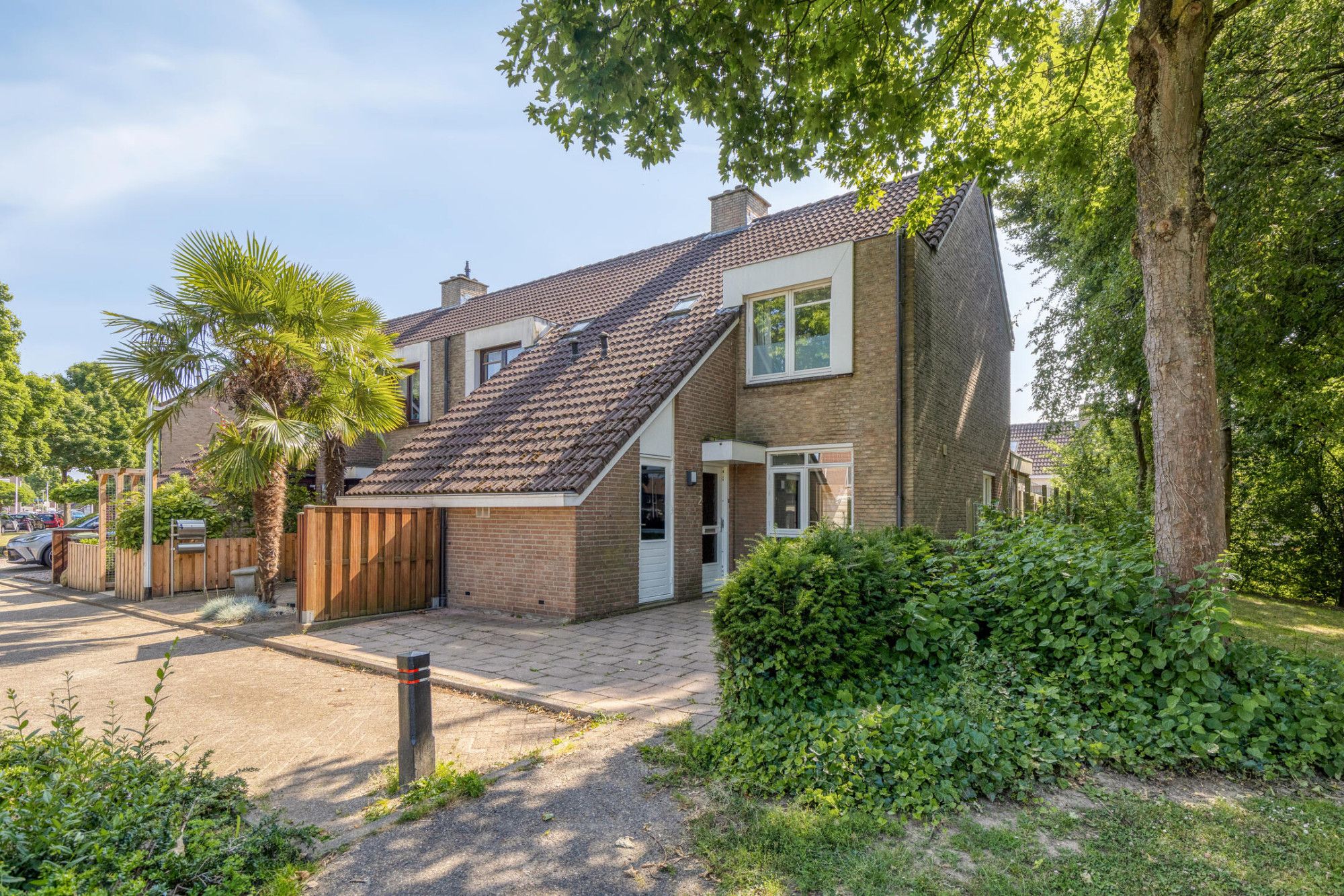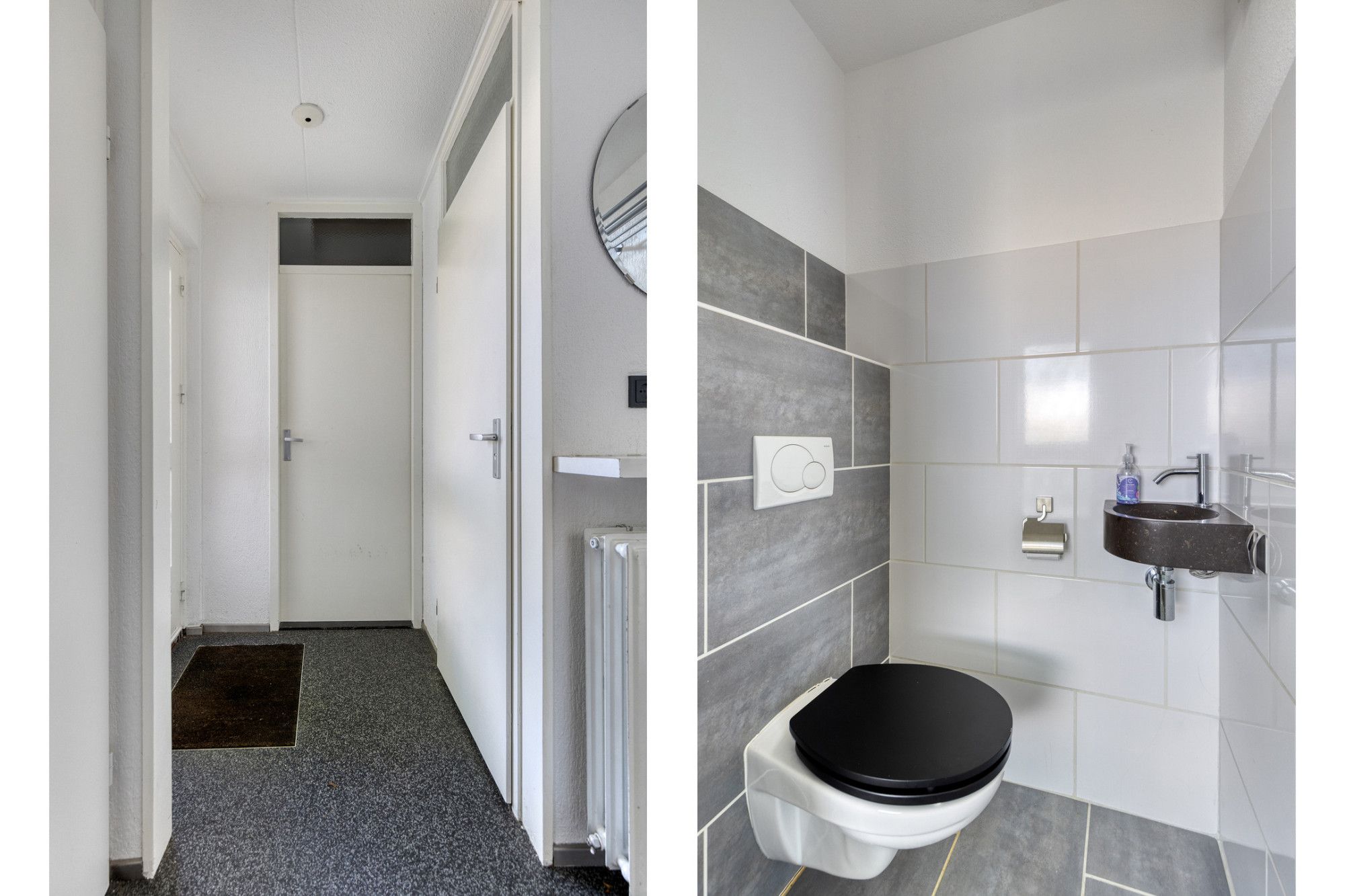 Voortuin. Aan de straatzijde zijn er parkeermogelijkheden. Hal met meterkast en toiletruimte voorzien van hangend toilet en fonteintje. Woonkamer voorzien van siergrindvloer en toegang naar overkapt terras en achtertuin. Aan de voorzijde van de woning is de keuken gesitueerd. De keuken is in hoekopstelling en beschikt over diverse inbouwapparatuur.