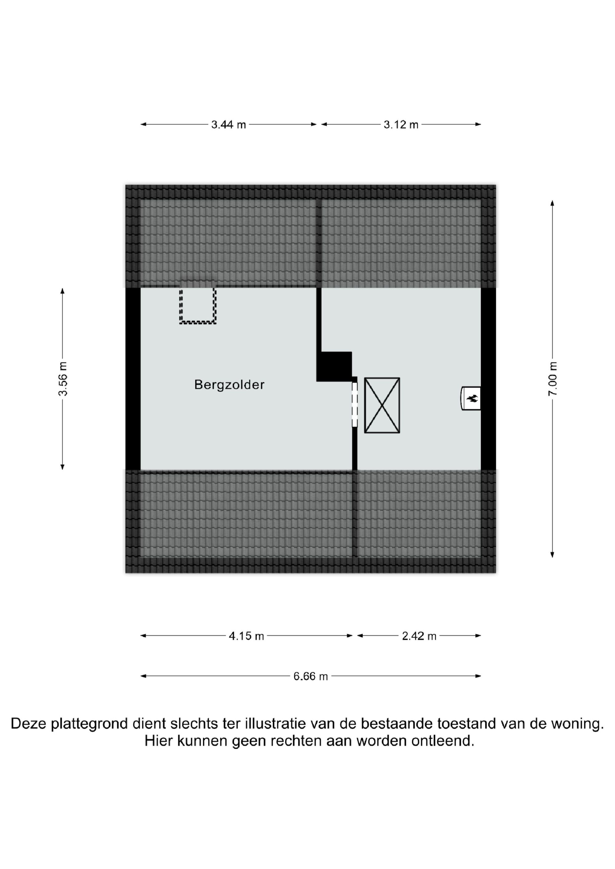 Middels een vlizotrap te bereiken zolderruimte. Momenteel wordt de zolder als bergruimte gebruikt. Echter kan de zolder ook goed worden benut als woonruimte door het plaatsen van een vaste trap. Op zolder staat de cv-combiketel opgesteld.