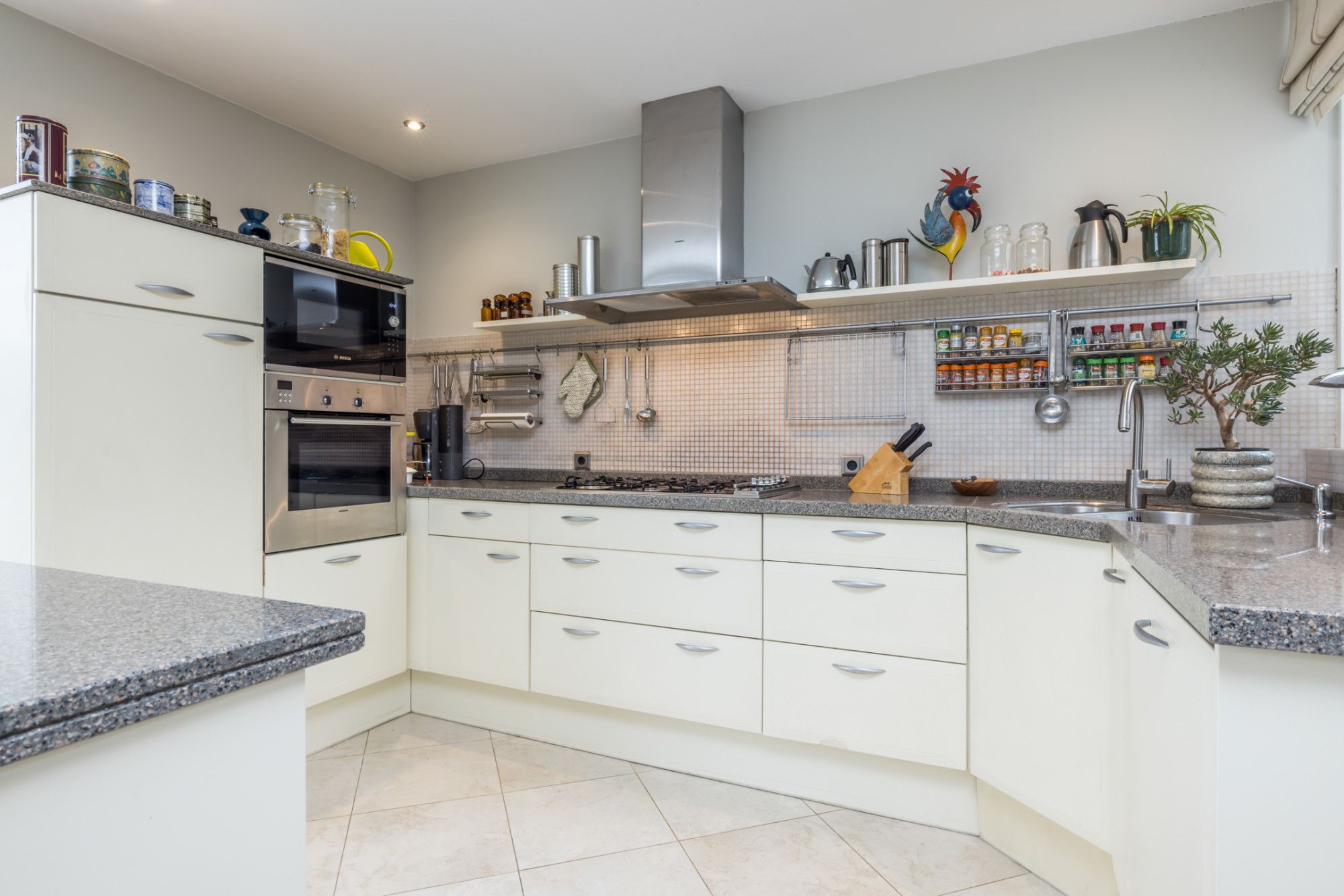 Warm water voorziening: via de cv-ketel, elektrische boiler (keuken)