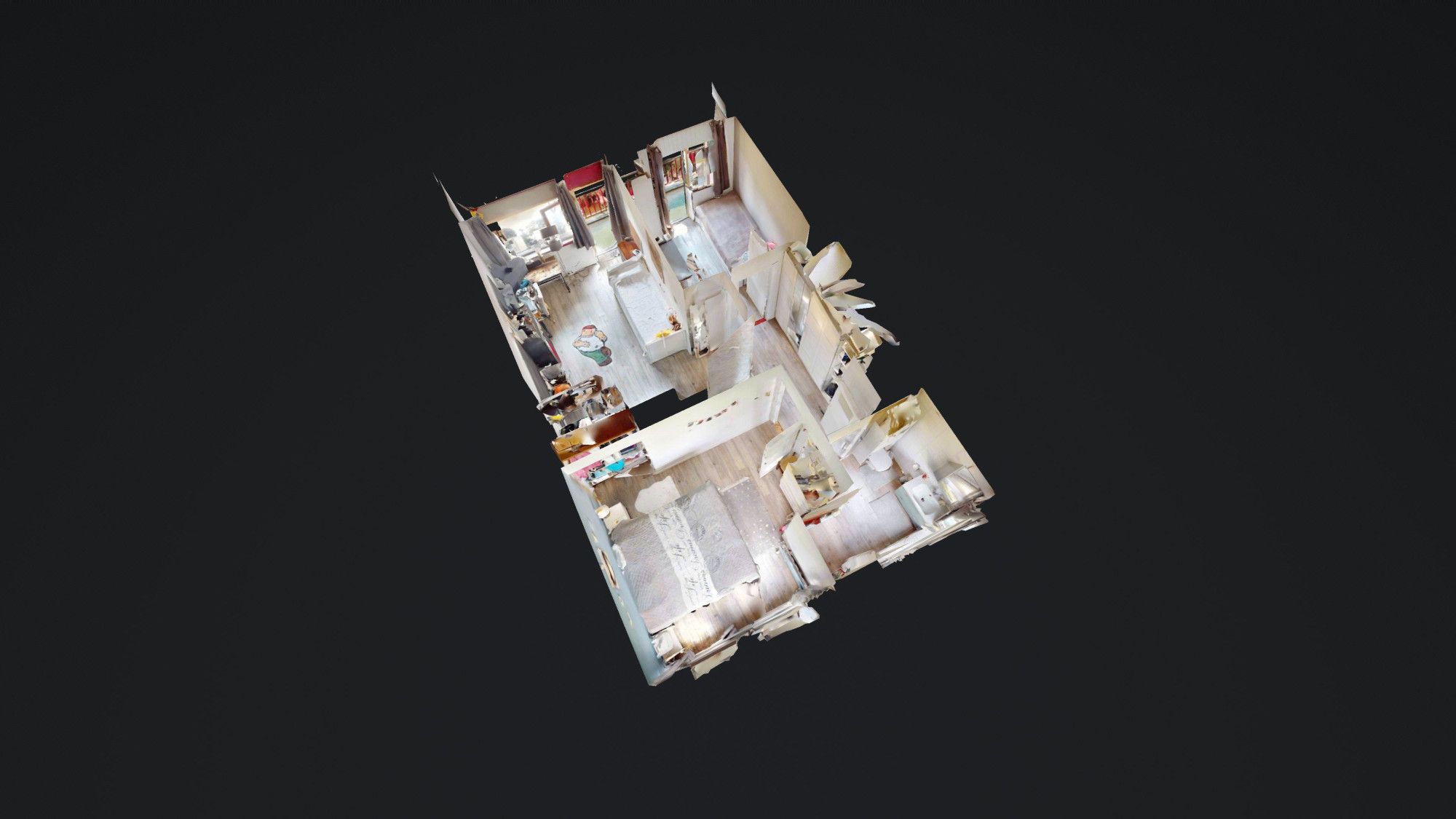 Semi-tiled toilet (1.45 x 0.9 m) equipped with a toilet and sink.