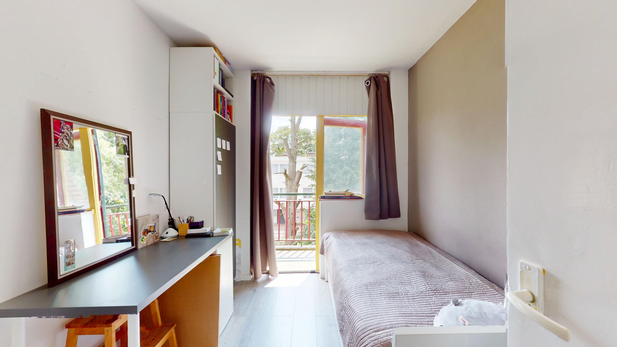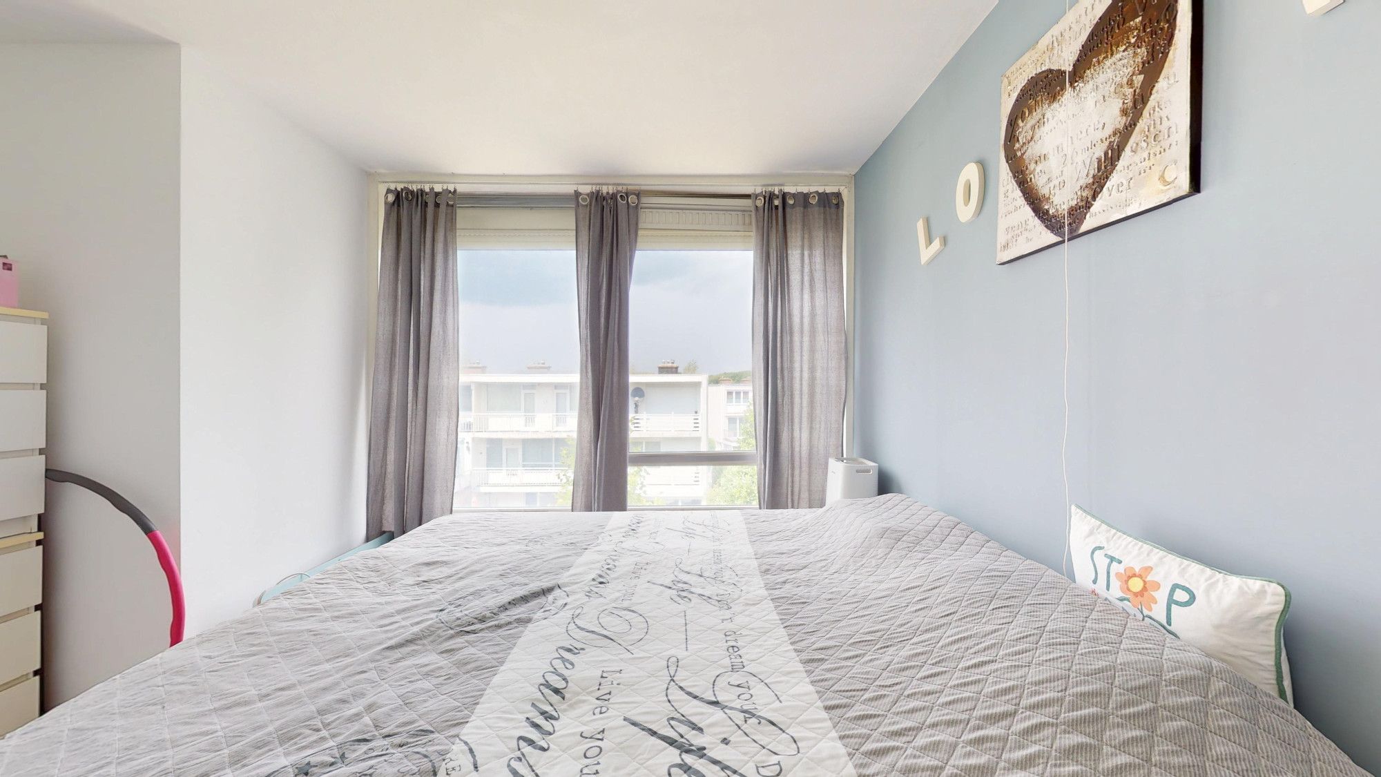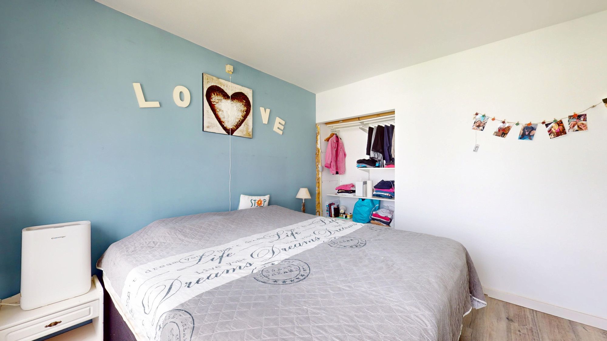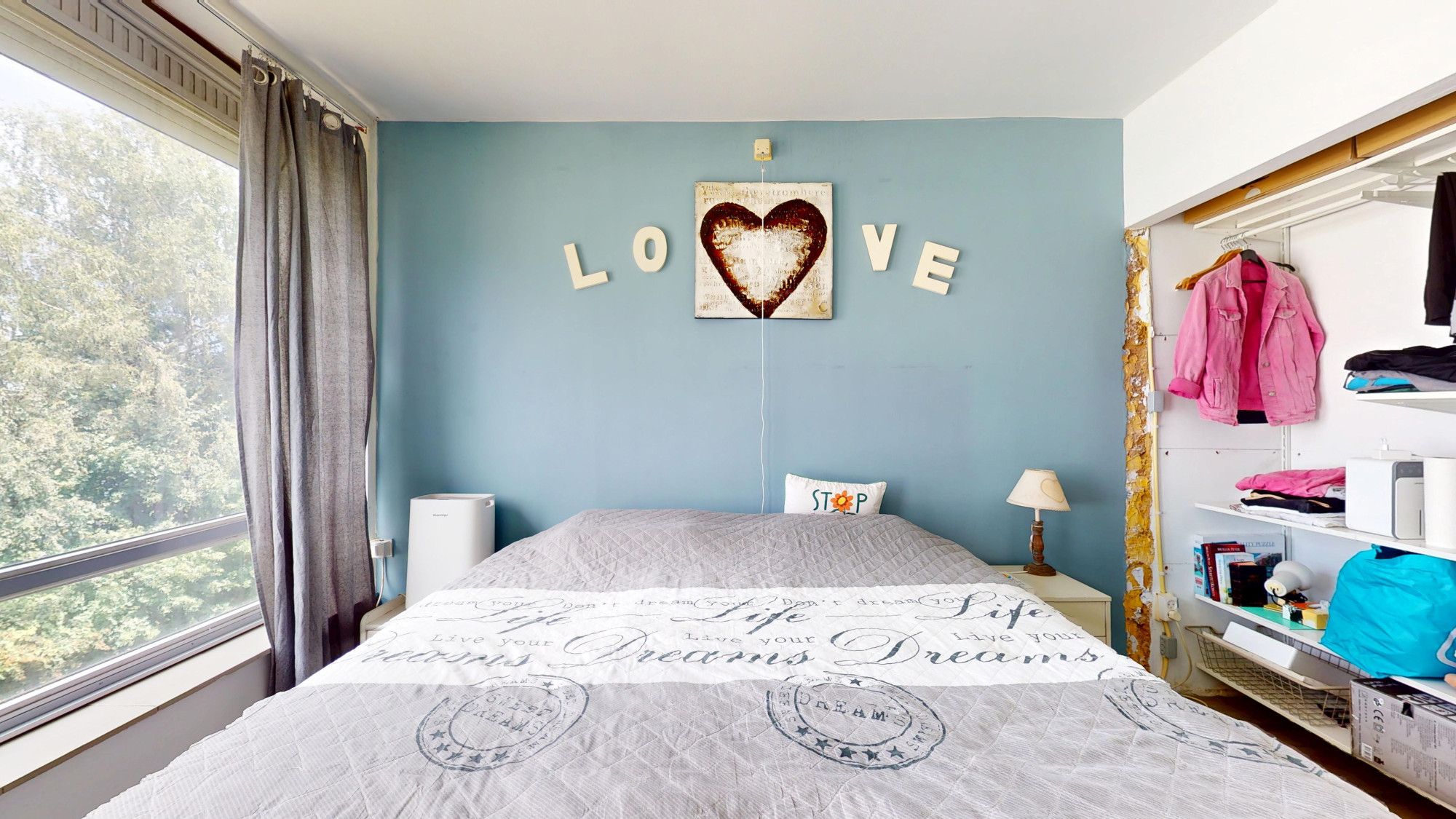 Bedroom 2 (4.1 x 3.05 m) with laminate flooring and a wall cupboard, with access to the balcony.