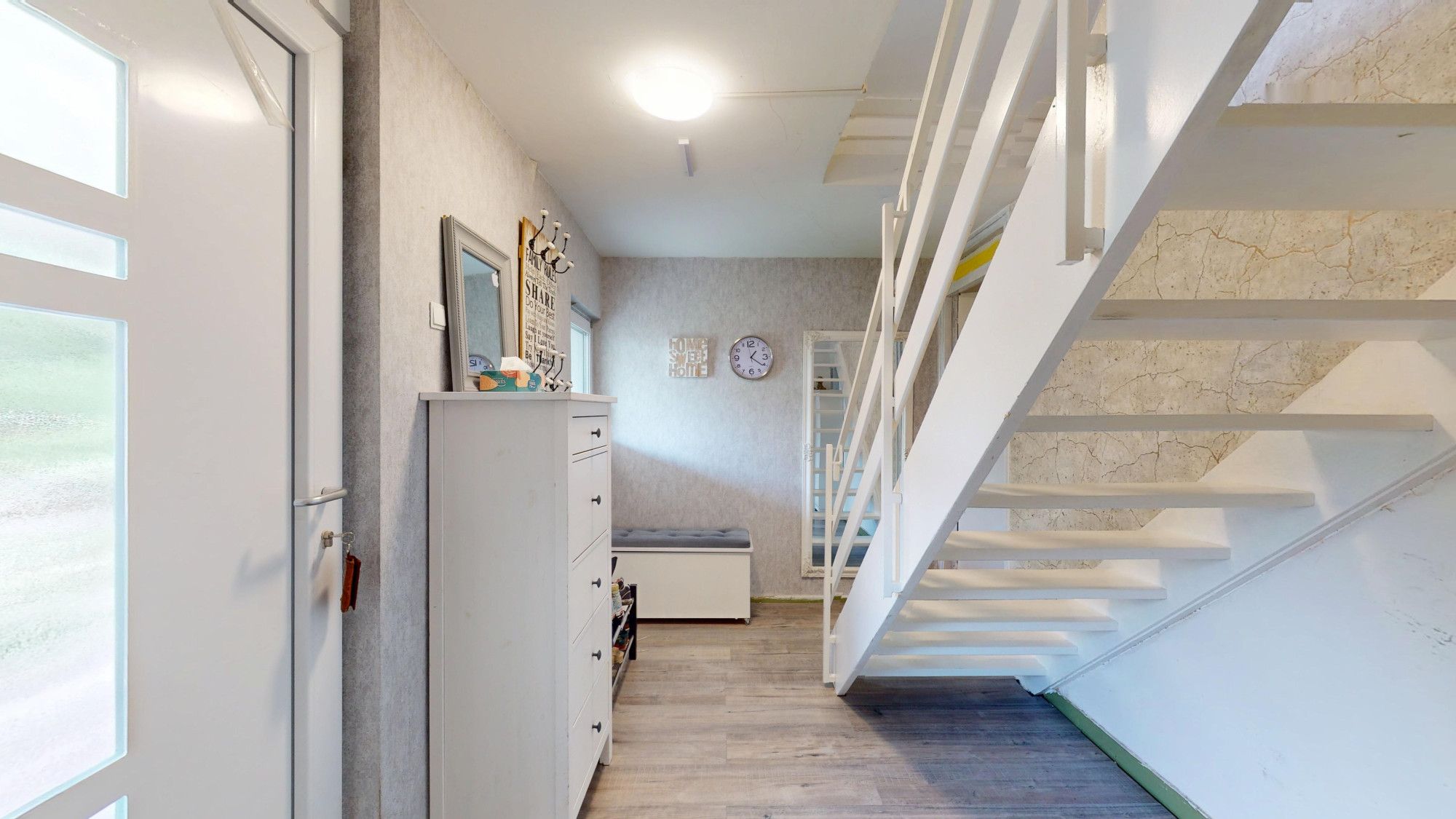 Entrance/hall (3.8 x 2.2 m) with laminate flooring and stairs to the first floor.