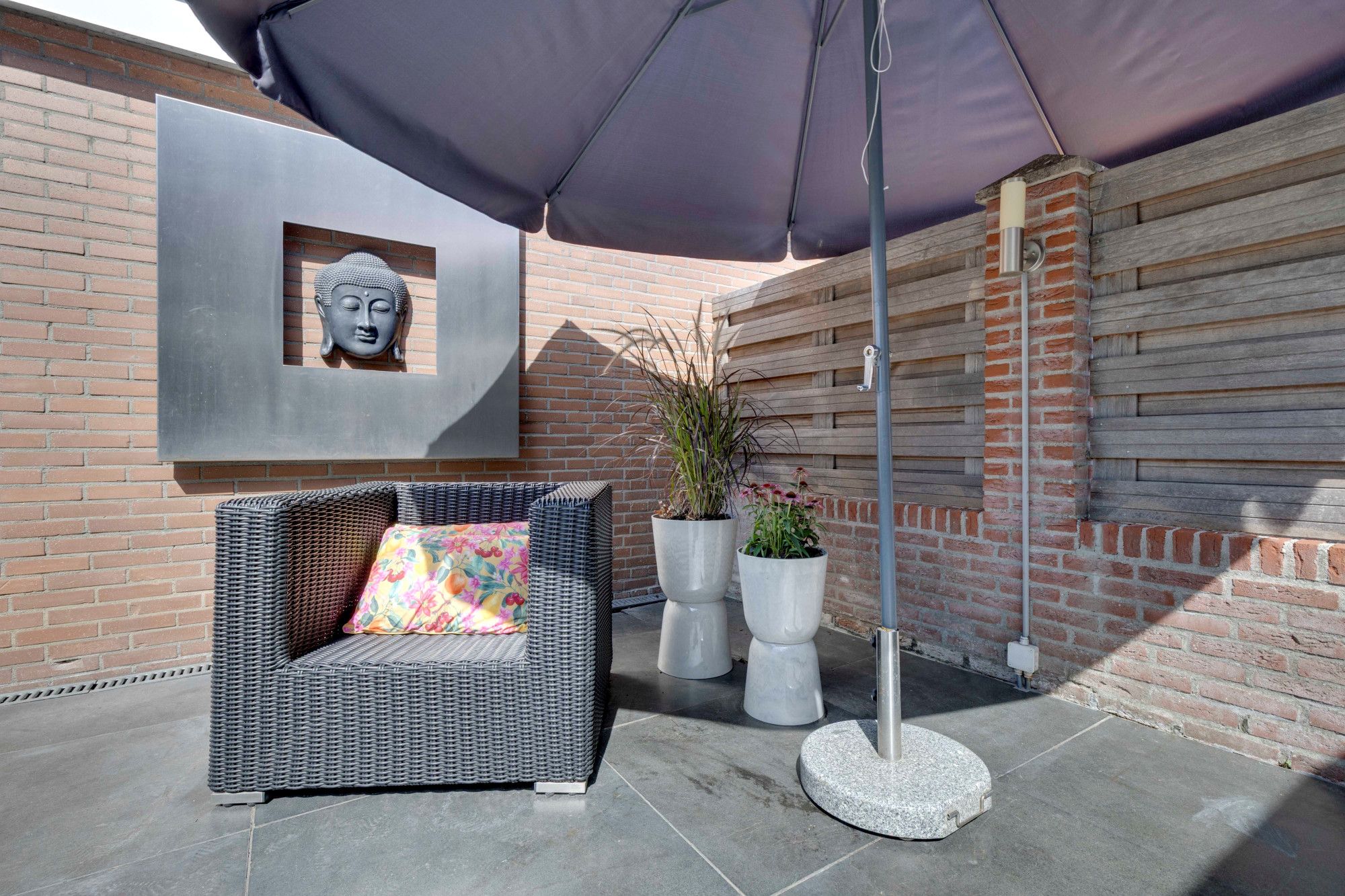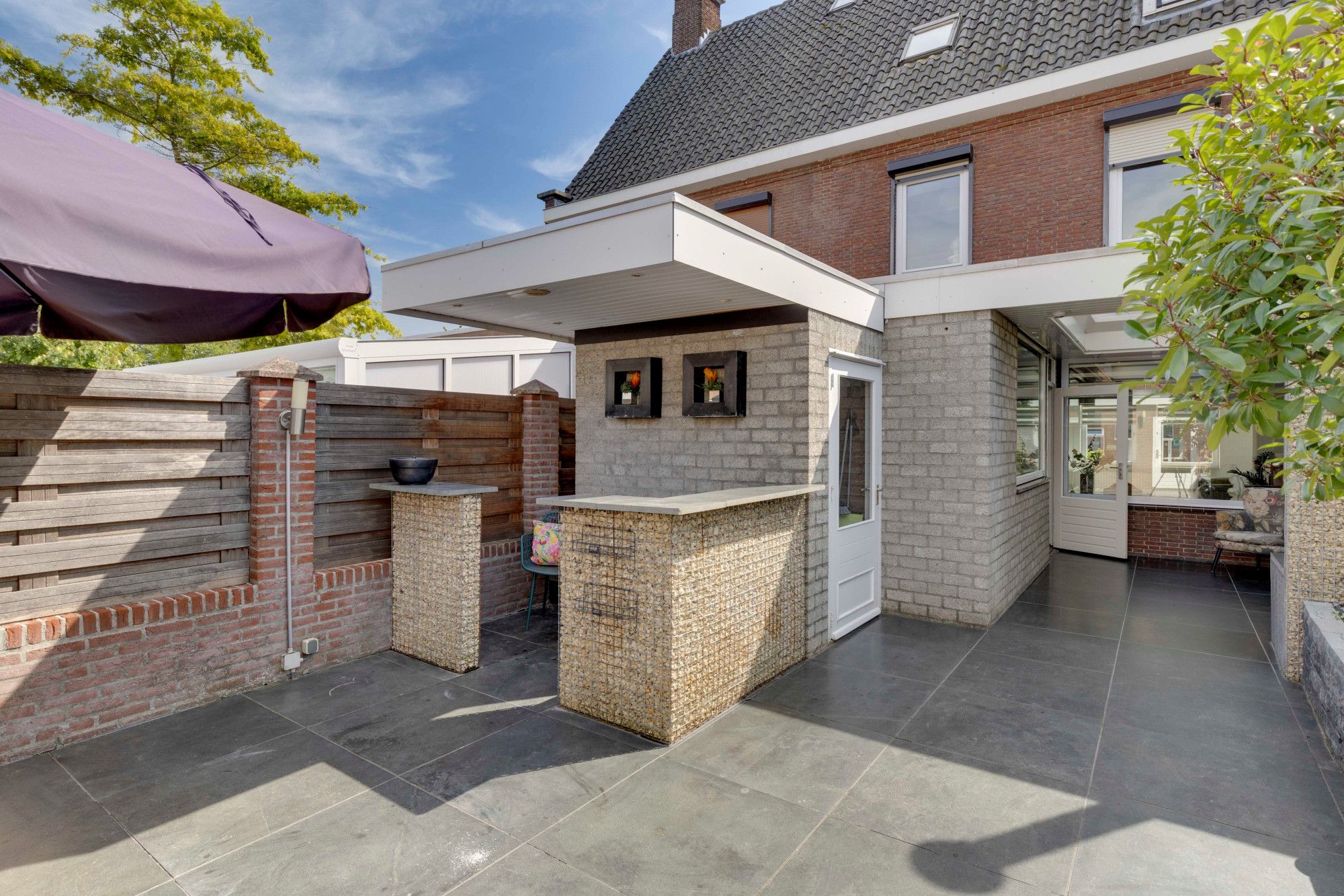 De achtertuin biedt volledige privacy en is ontworpen voor maximaal genot en minimaal onderhoud. Met grote natuurstenen tegels, sfeervolle tuinverlichting, een gemetselde berging, een gezellige overdekte tuinbar en natuurlijk het grote overdekte terras bij de keuken.