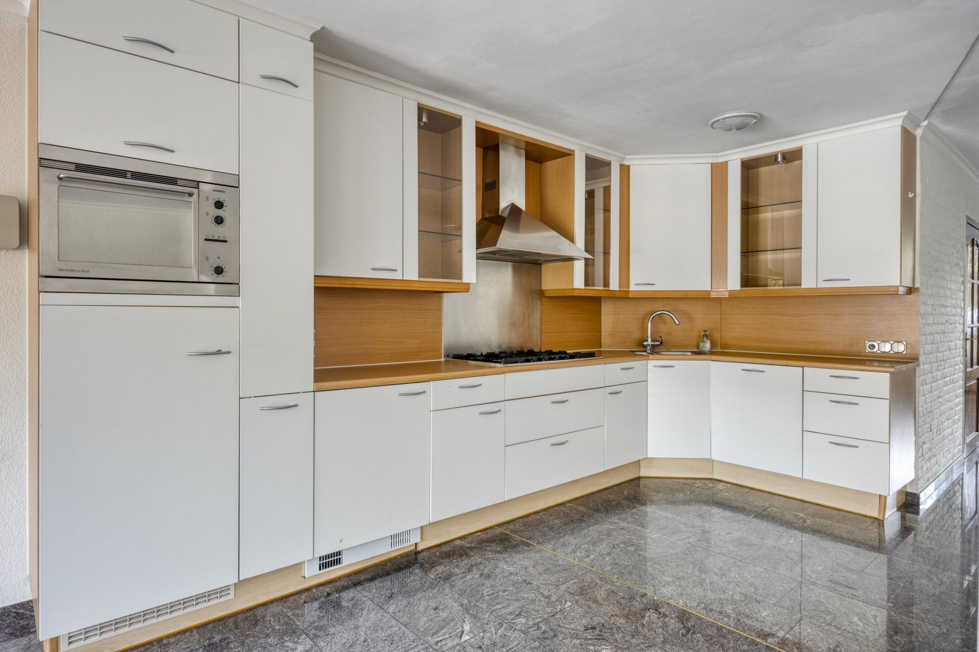 Hal met meterkast, verdiepingstrap en toiletruimte. Ruime woonkamer met uitbouw en open keuken gedeelte voorzien van een keuken in hoekopstelling met diverse apparatuur. De woonkamer, keuken en uitbouw is voorzien van een graniet tegelvloer en vloerverwarming. Middels schuifpui toegang naar achtertuin. Bijkeuken en doorloop naar inpandig bereikbare garage met ruime uitgebouwde zolderverdieping.