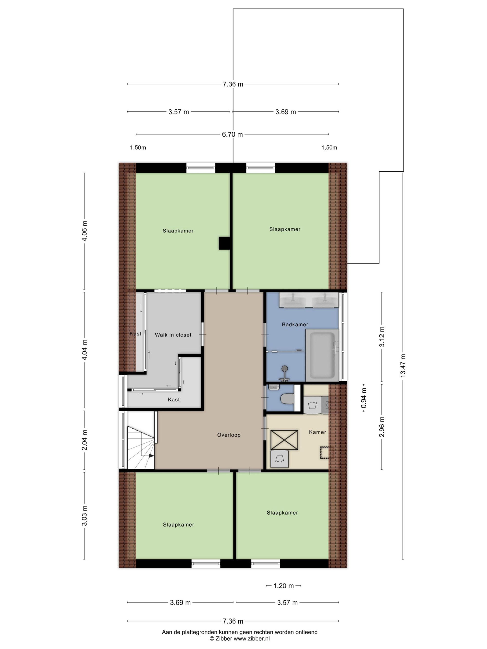 Slaapkamer 1 (4.06 x 3.57 m) met walk in closet (4.04 x 2.60 m).
