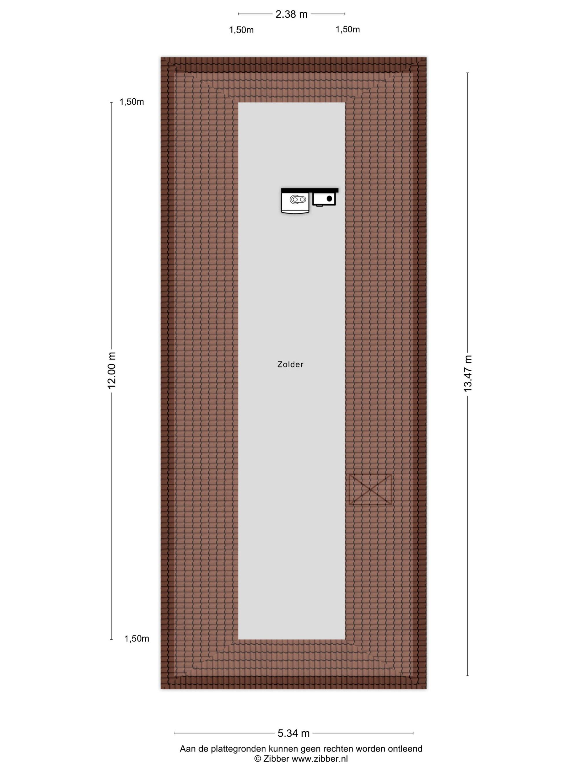 Middels vlizotrap te bereiken zolder (12.00 x 2.38 m) alwaar CV installatie en warmwater boiler (Nefit - eigendom).