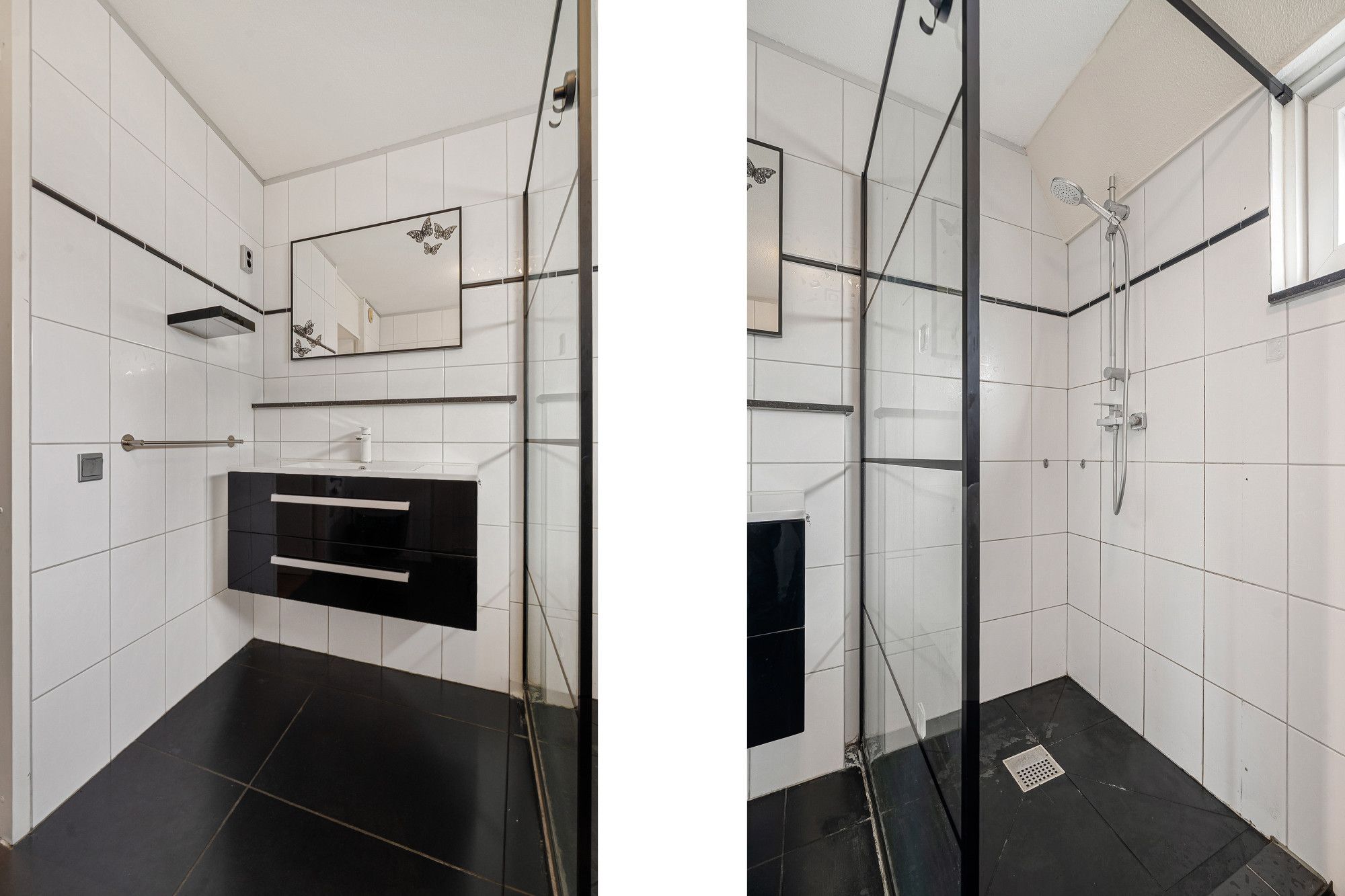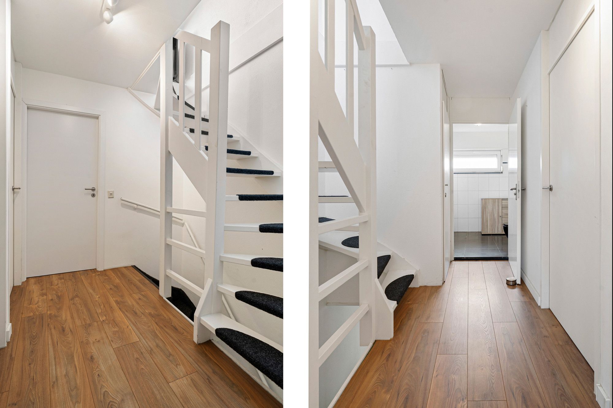 Op de eerste verdieping bevinden zich drie slaapkamers met laminaatvloer, een ruime overloop en de badkamer. De badkamer is modern afgewerkt en voorzien van een tweede toilet, inloopdouche en wastafelmeubel. Vanaf de overloop is de trap naar de tweede verdieping bereikbaar.