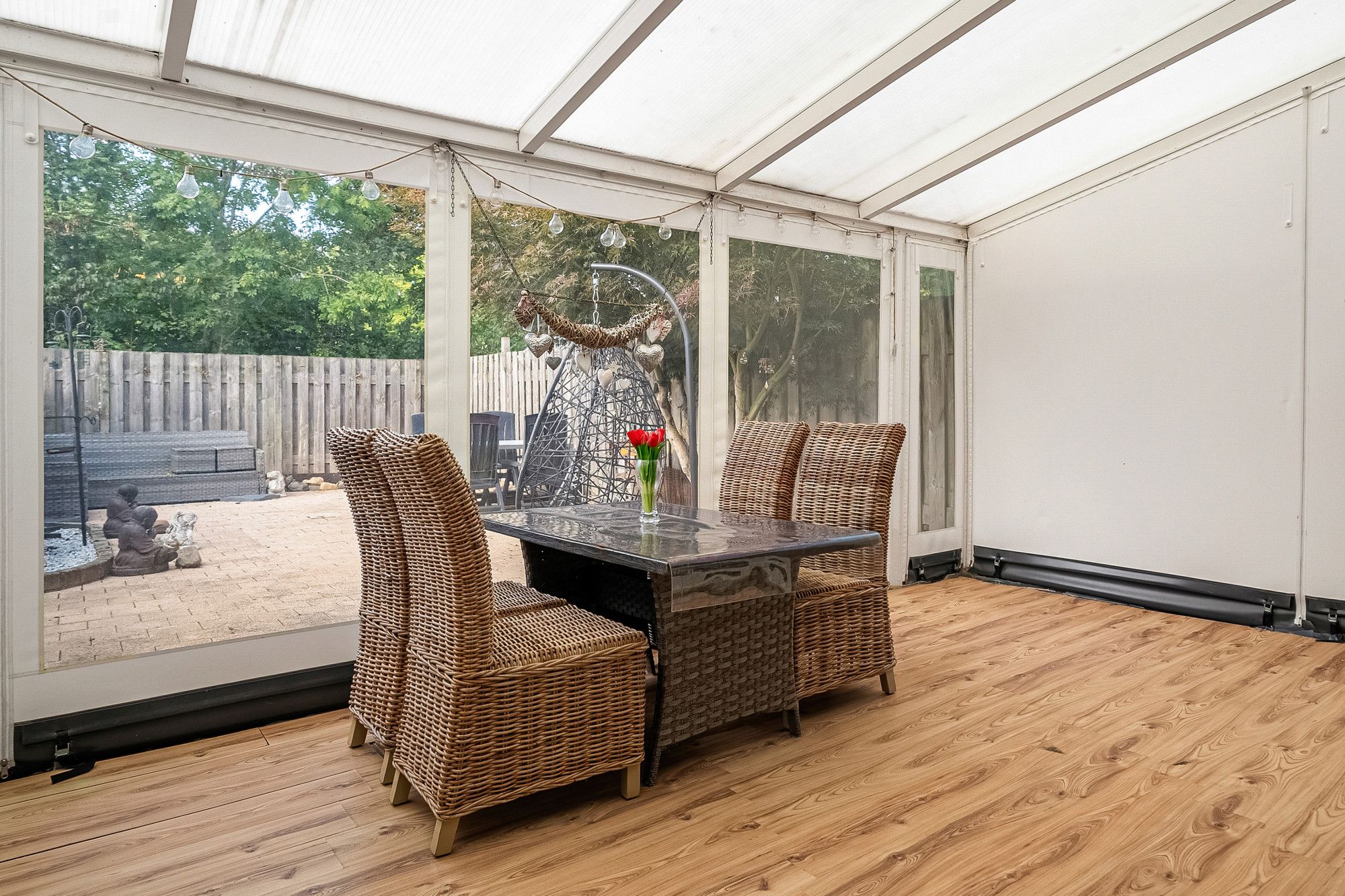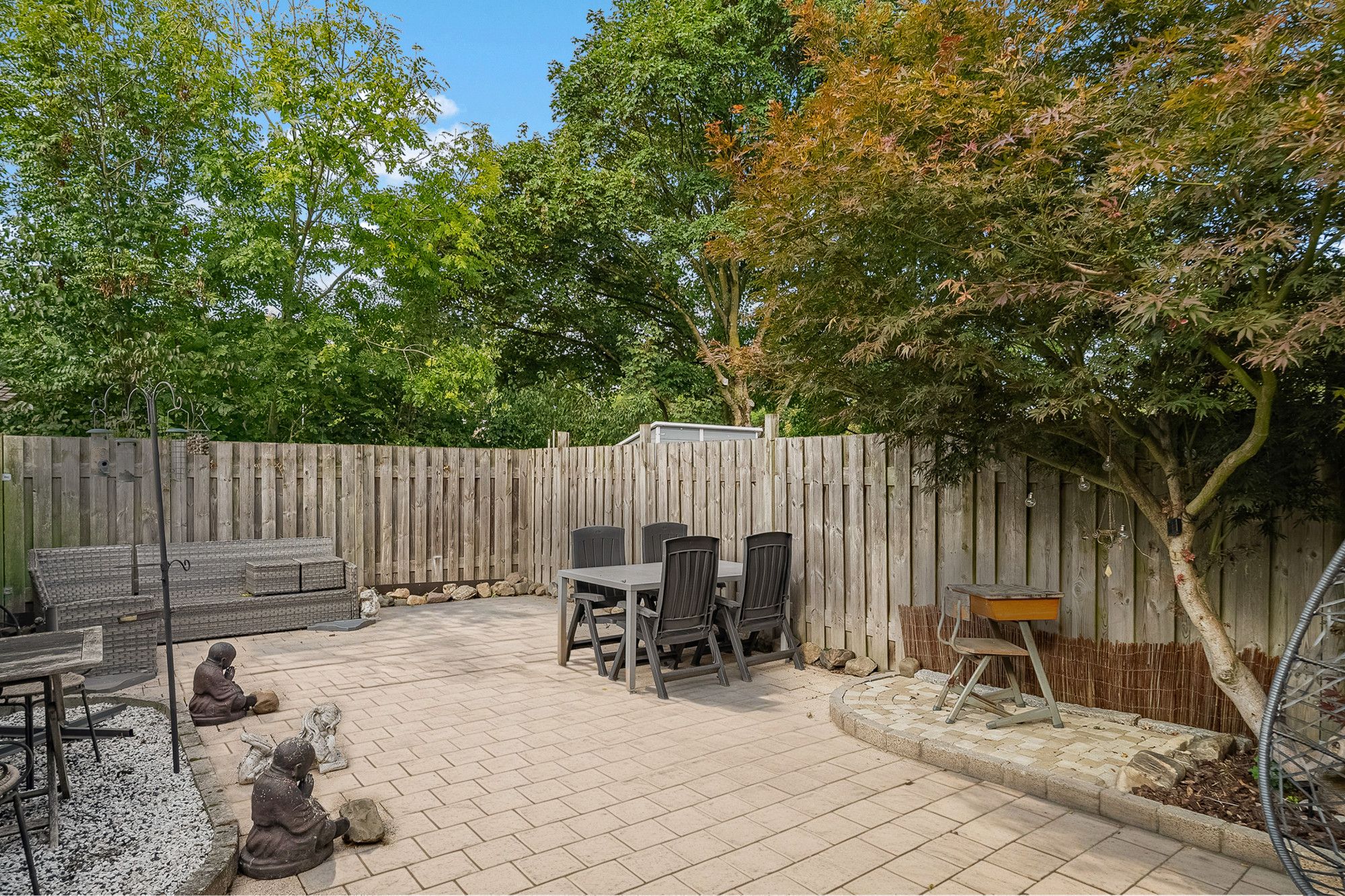 De onderhoudsvriendelijke tuin is gelegen op het zuidwesten en biedt veel privacy. Dankzij de vaste overkapping is het een ideale plek om te ontspannen of gezellig buiten te eten, ongeacht het weer.