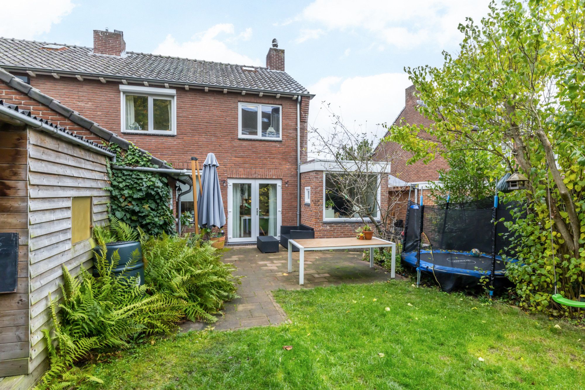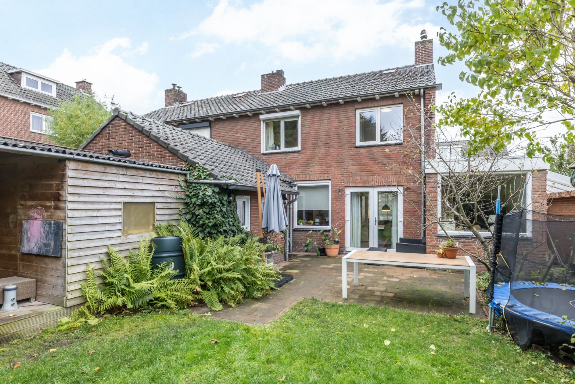 De geheel omsloten en sfeervol ingedeelde tuin is v.v. een terras en overdekt terras met toegang tot separate berging (2,35 m x 2,04 m). Middels een overdekt pad aan de zijkant heeft men toegang tot de berging (3,32 m x 1,90 m) aan de voorzijde gelegen, vanuit deze berging heeft men middels een dubbele poort toegang tot de oprit.