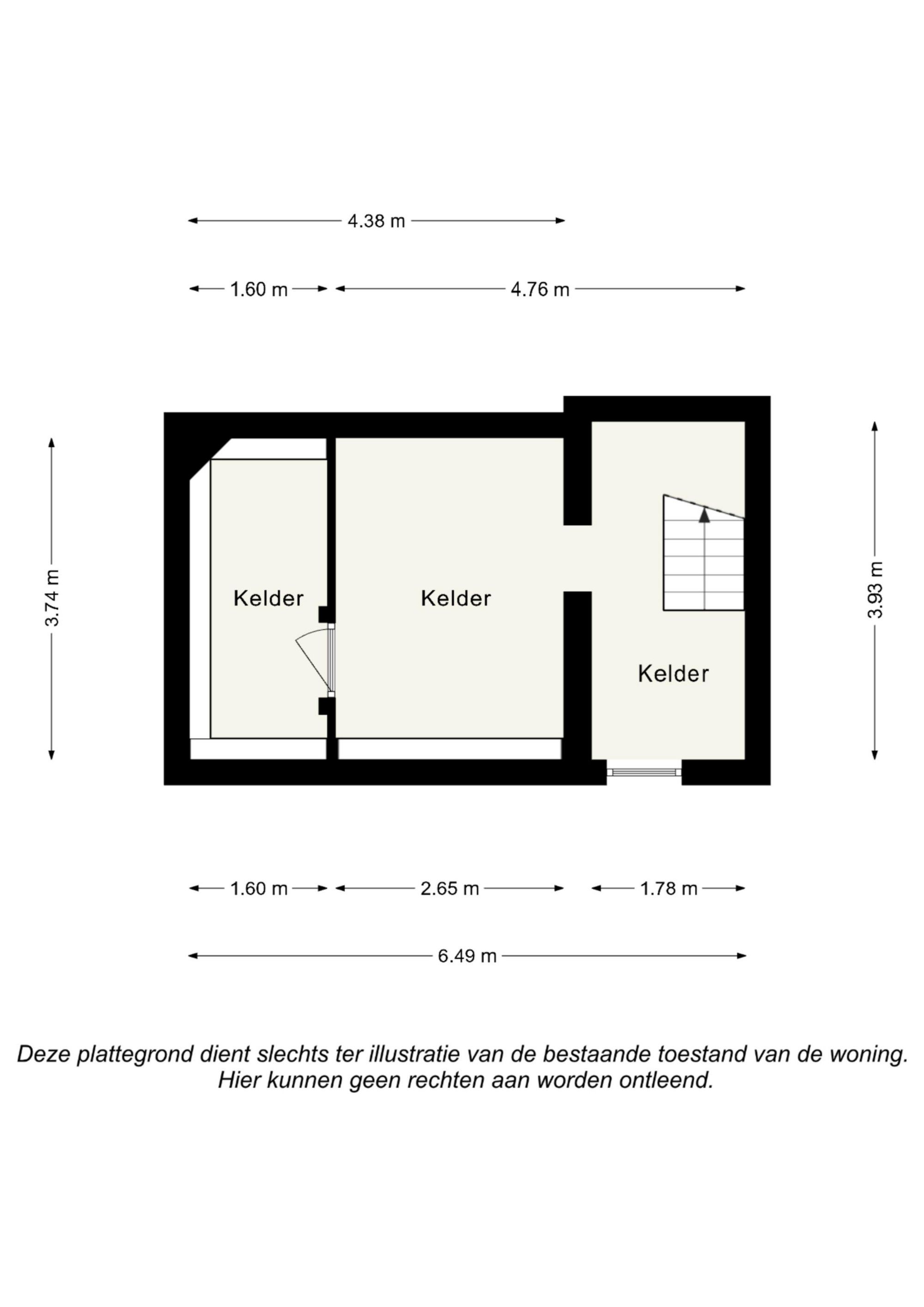 Vanuit de hal te bereiken kelder, de kelder is verdeeld is drie ruimtes en is ca. 25 m2 groot.