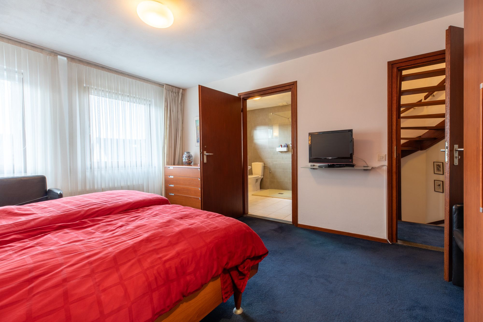 Middels hardhouten trap (Merbau) toegang tot de overloop.