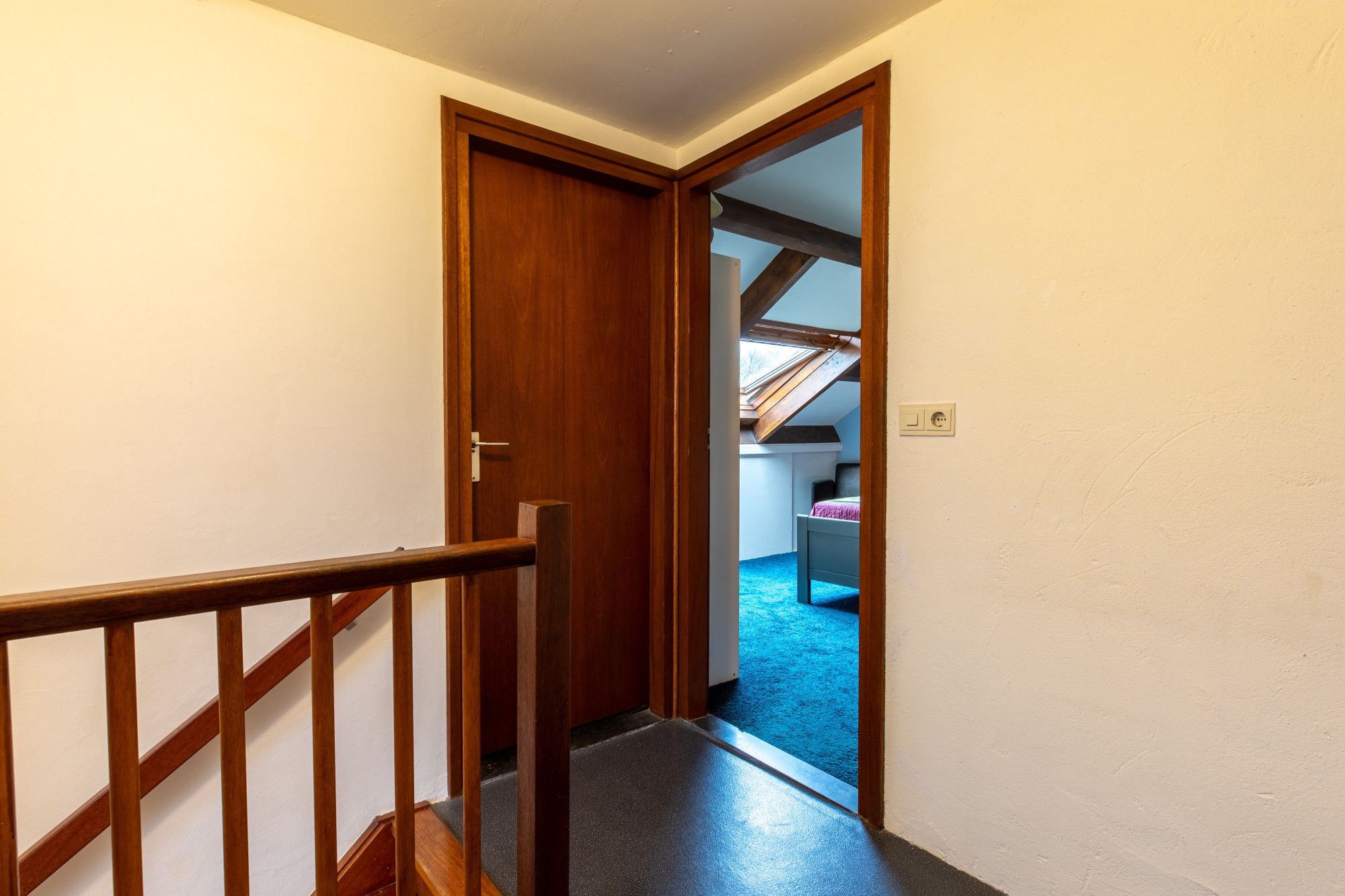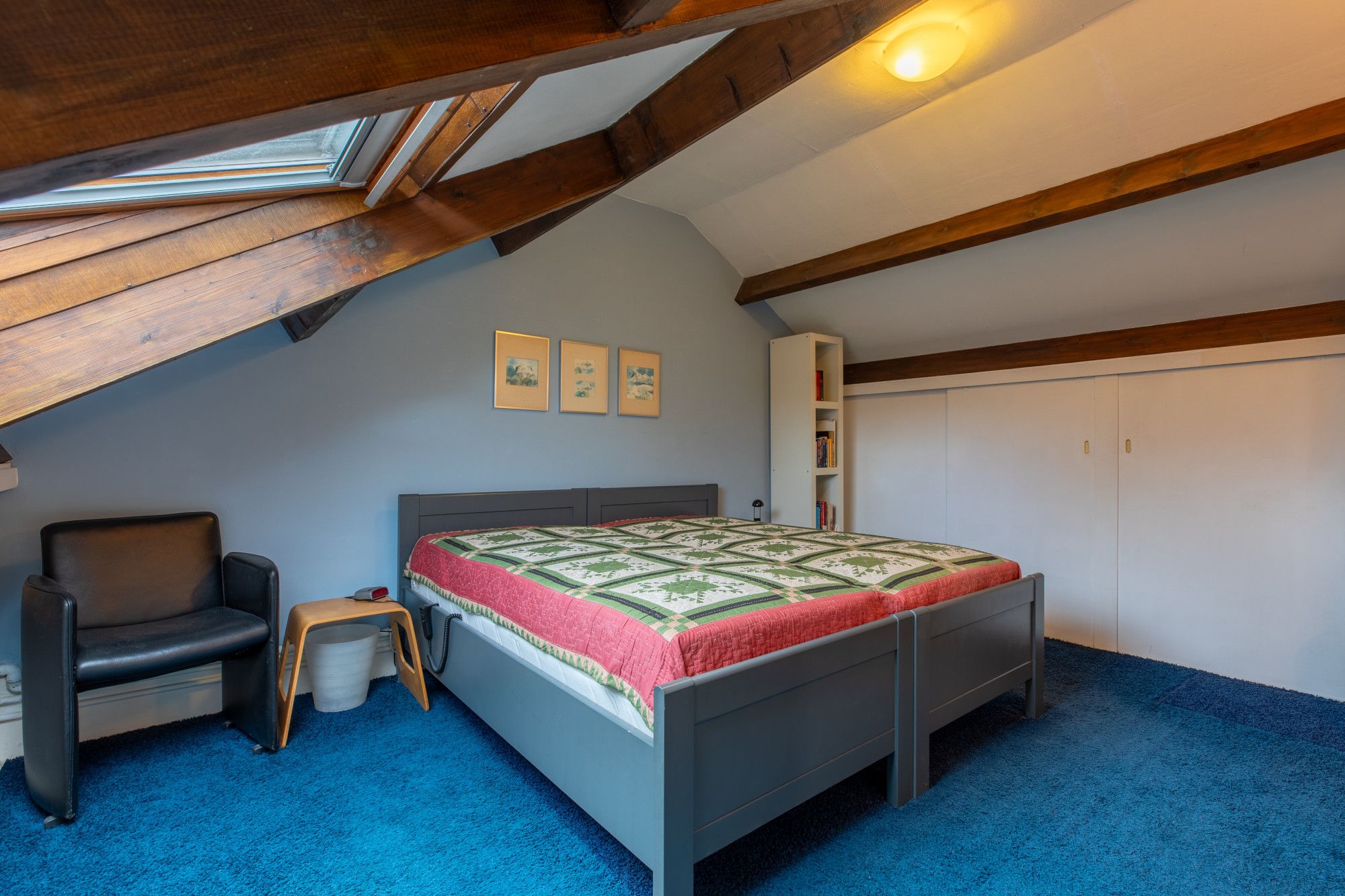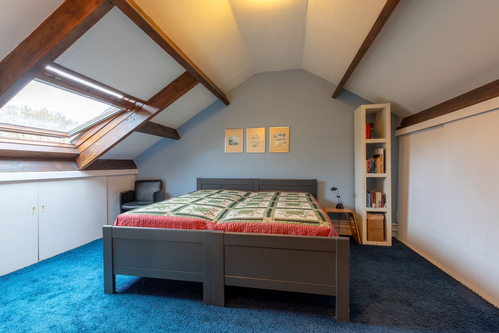 Slaapkamer 4 (3.67 x 3.61 m) met Velux dakraam en bergruimte in de dakschuinte.