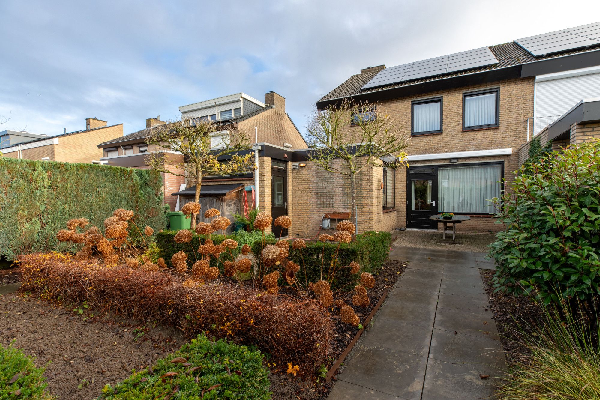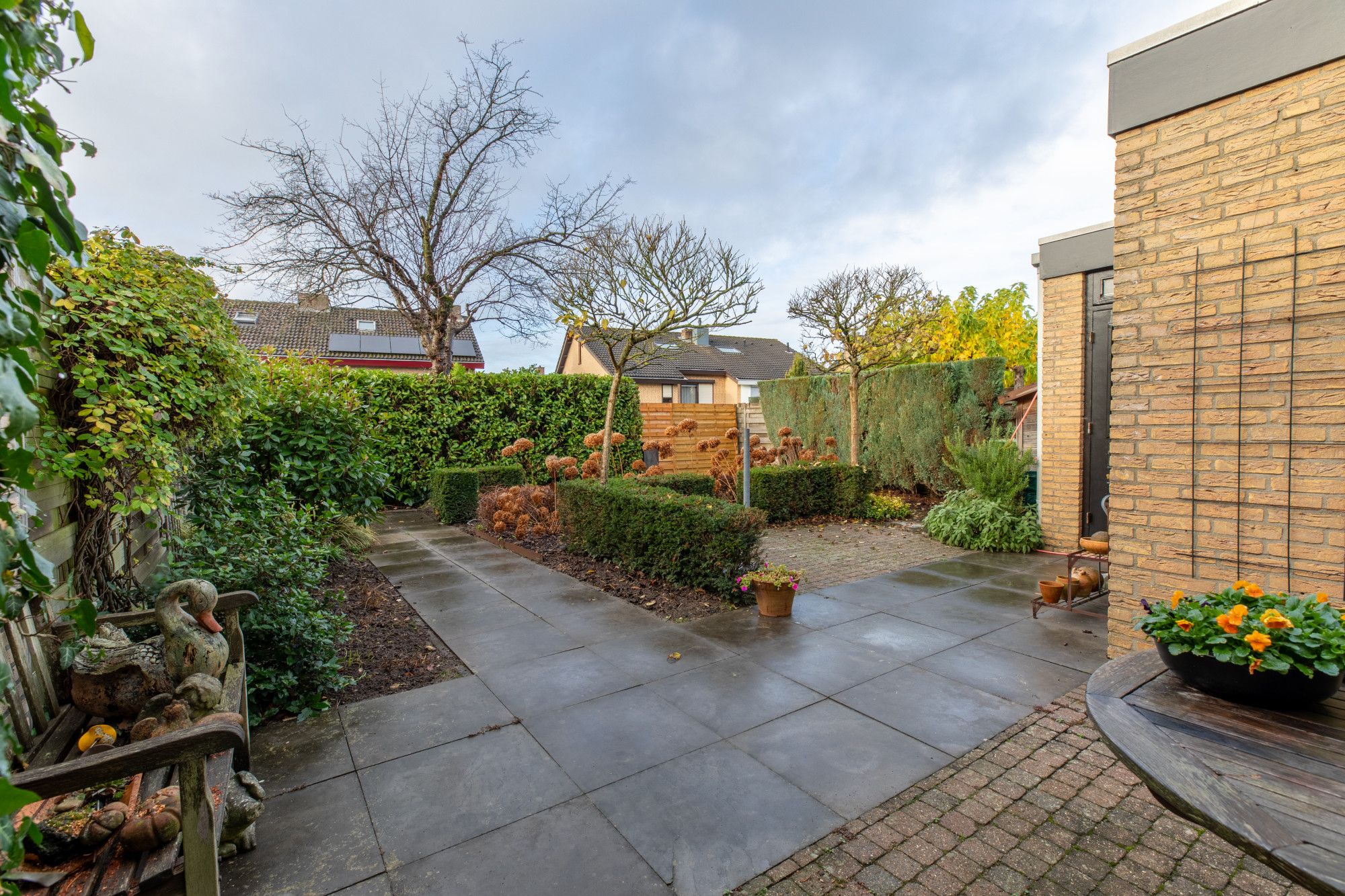 Zonnig gelegen fraai aangelegde achtertuin.