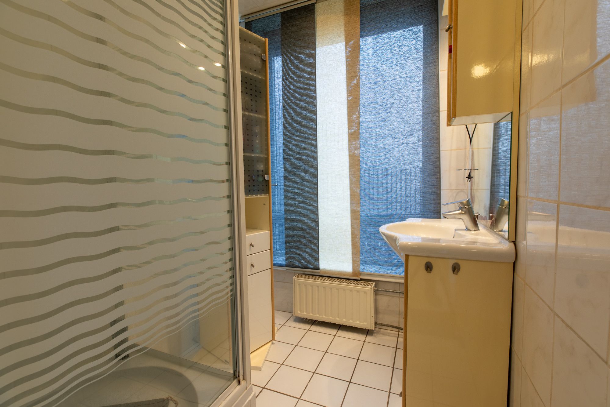 Badkamer (1.87 x 1.71 m) voorzien van douchecabine en een vaste wastafel.
