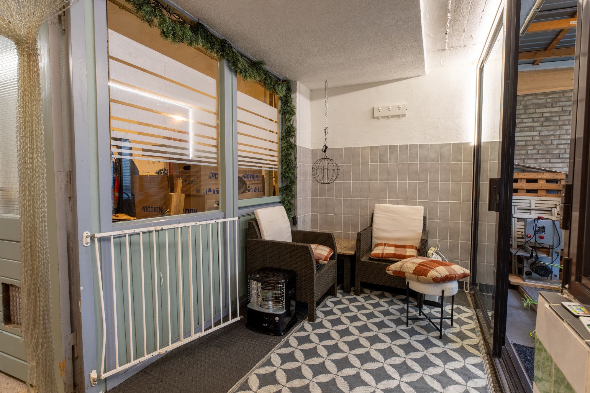 Bergruimte (5.38 x 1.77 m) met opstelplaats cv combi installatie (Remeha HR, huur, bouwjaar circa 2014), vernieuwde meterkast en de aansluiting voor witgoed.